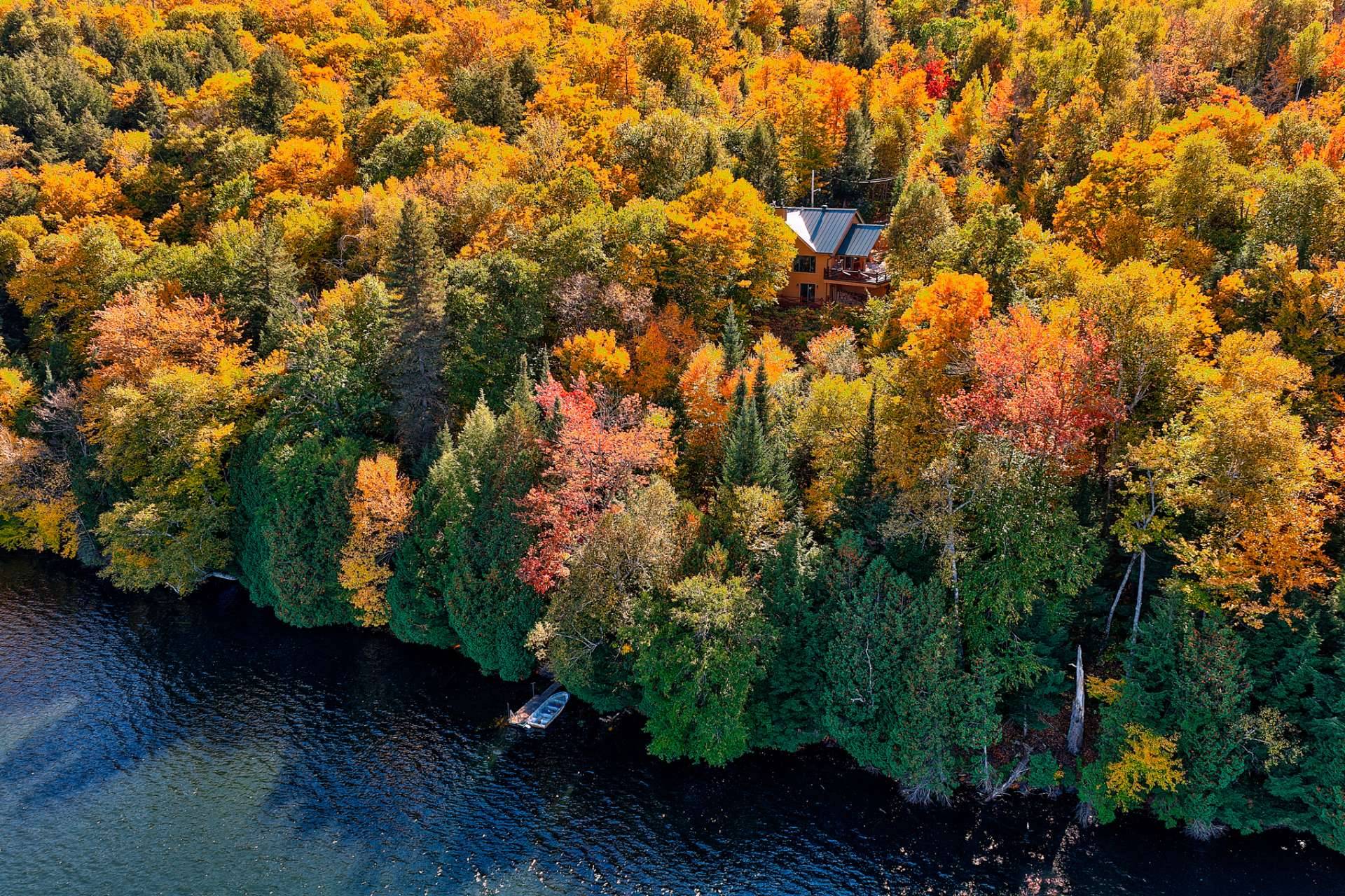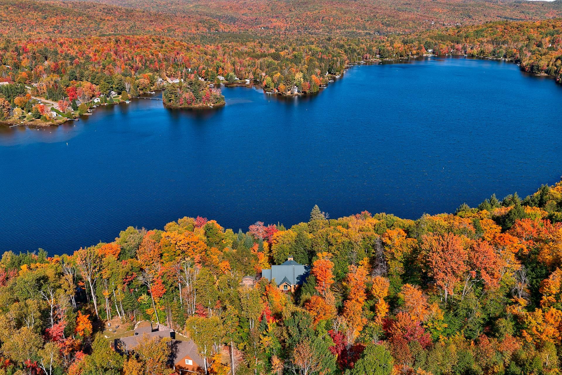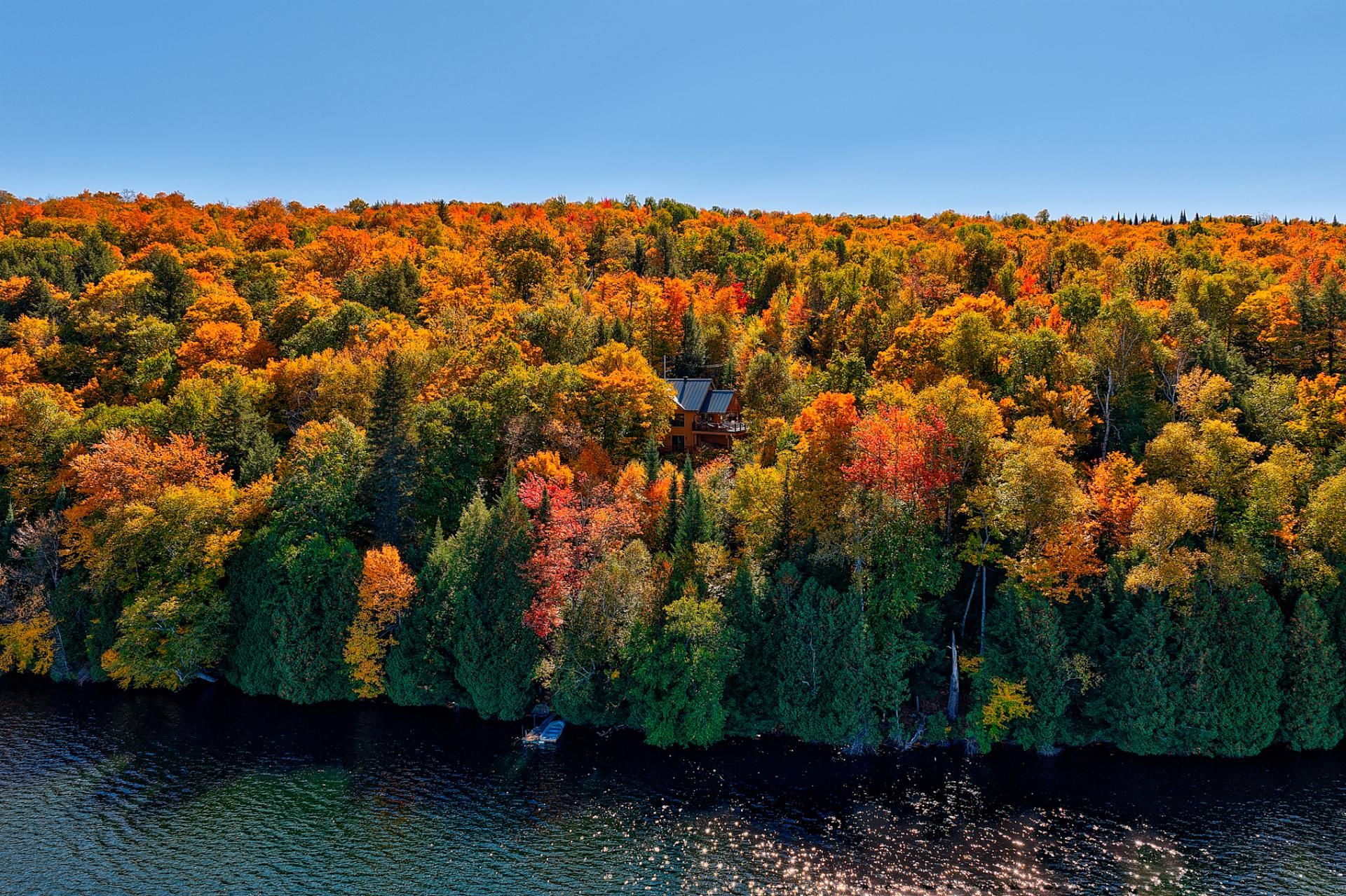 Érigée sur un vaste domaine boisé de plus de 228 000 pi², cette résidence de style scandinave en bois noble offre une vue spectaculaire sur le lac Corbeau, lac de tête navigable et ensemencé. Avec plus de 545 pieds de façade sur l'eau, elle figure parmi les plus imposantes propriétés du lac, une opportunité d'une rareté exceptionnelle. L'harmonie entre la nature et l'architecture y est totale : sentiers privés, érables à sucre, quai intime et vaste terrasse invitent à la contemplation. Vendue meublée et soigneusement équipée (génératrice intégrée), elle propose trois chambres et un bureau, une atmosphère à la fois raffinée et apaisante.
