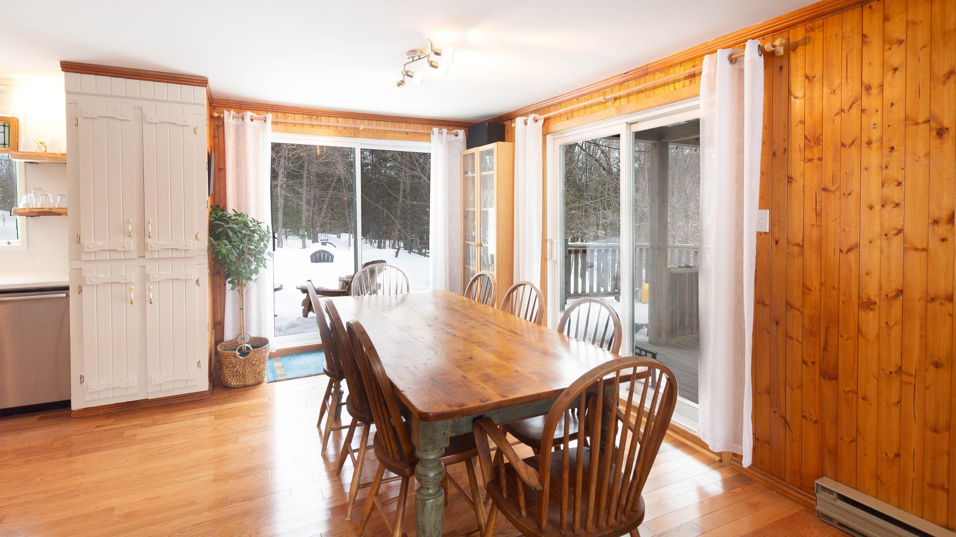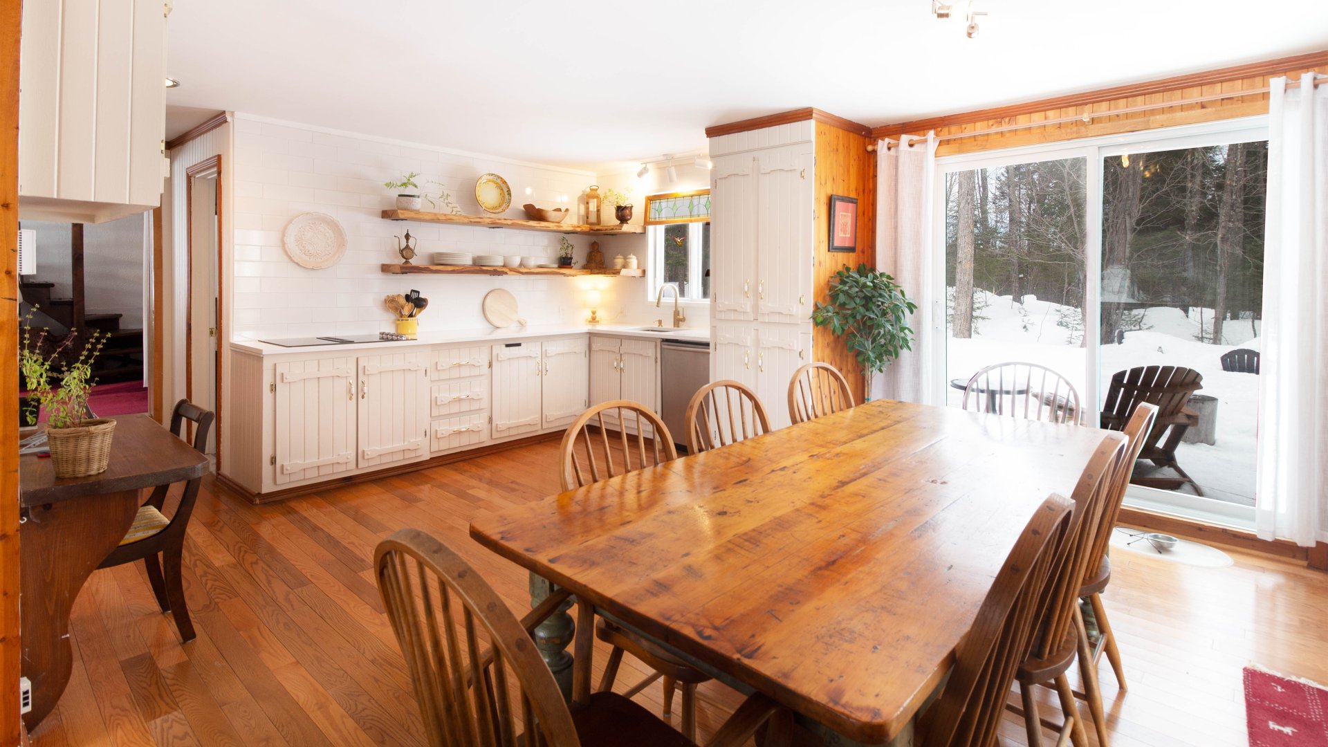 Amoureux de la nature et amateurs de plein air... Chalet chaleureux et accueillant de style champêtre situé sur un grand terrain, à quelques minutes seulement des pistes de ski et du corridor aérobique. d'un rez-de-chaussée ouvert avec parquets, d'une cheminée à bois, d'une cuisine rénovée de style fermier avec de nouveaux plans de travail en quartz, d'une crédence et d'une nouvelle cuisinière. La salle à manger dispose de deux portes-fenêtres coulissantes qui laissent entrer beaucoup de lumière, offrent une vue apaisante sur la forêt et donnent accès à une grande terrasse panoramique.La salle familiale comprend une grande mezzanine.
