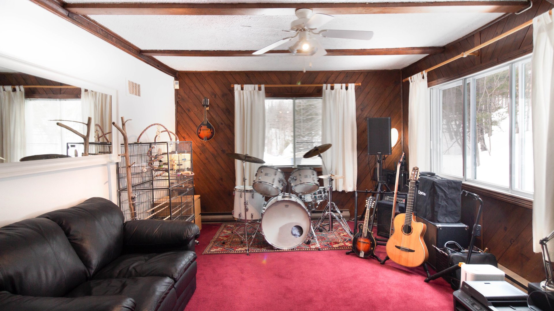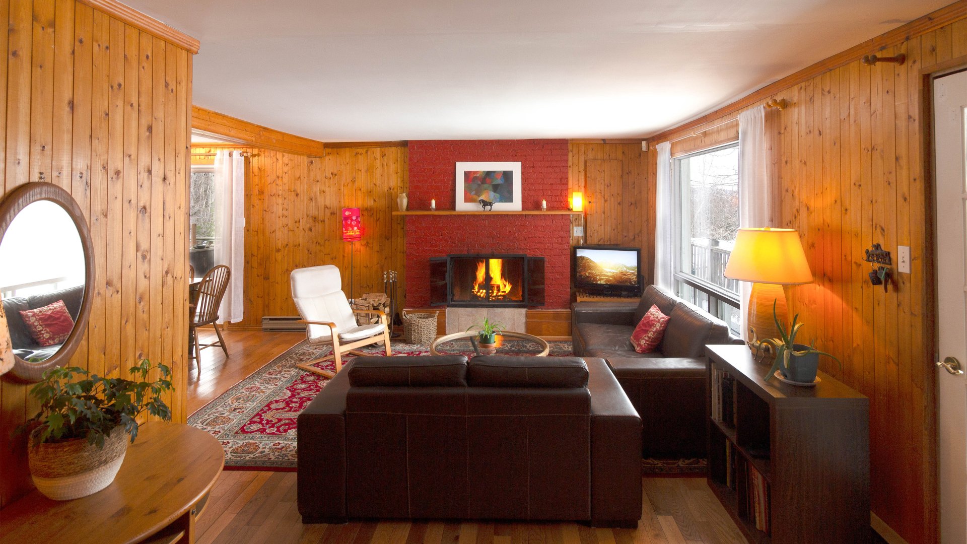- Appareils électroménagers, rideaux, étagères Ikea, lit queen size dans la chambre principale. Lit simple dans la mezzanine, meuble TV et équipement multimédia. Foyer extérieur, accessoires de cheminée. Climatiseur portable. Canapés dans le salon. Bureau et chaise de cuisine. Maisonnette.
