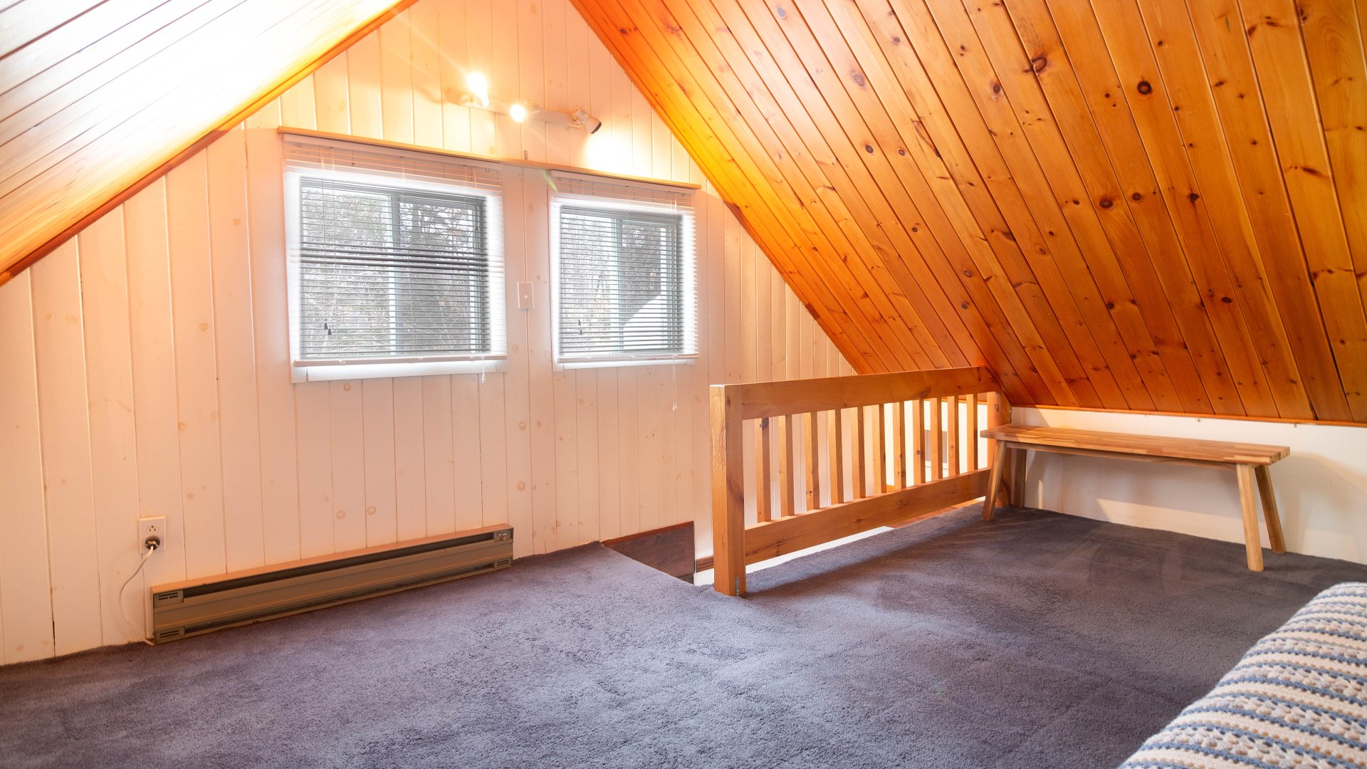 La salle familiale avec mezzanine dispose d'une porte intérieure qui la sépare du reste de la maison. Idéale pour accueillir des invités, servir de bureau, d'atelier, de chambre pour un enfant plus âgé ou éventuellement être louée à long terme.