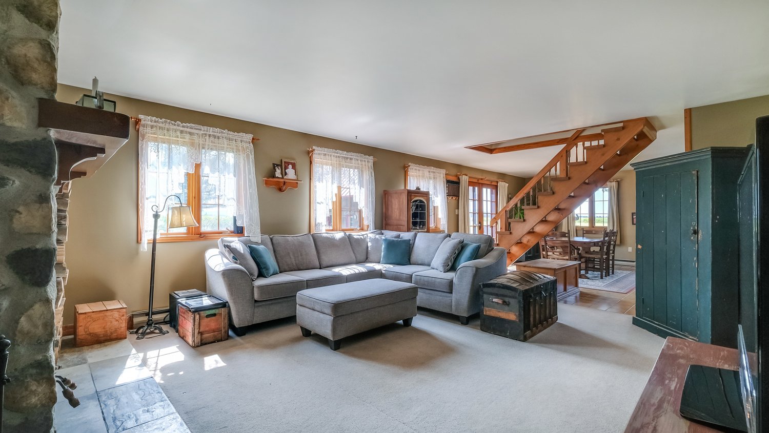 - Luminaires, poles, rideaux, poêle à bois, aspirateur central et accessoires, air climatisé, ouvre porte électrique et 2 manettes, chauffe eau.