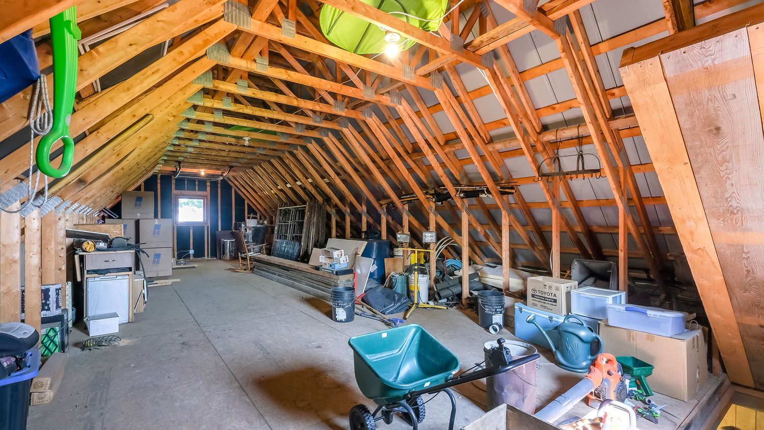 De plus, le garage dispose d'un deuxième étage pleine hauteur, offrant un vaste espace supplémentaire pouvant servir de rangement, d'atelier, de bureau ou être aménagé selon vos besoins.