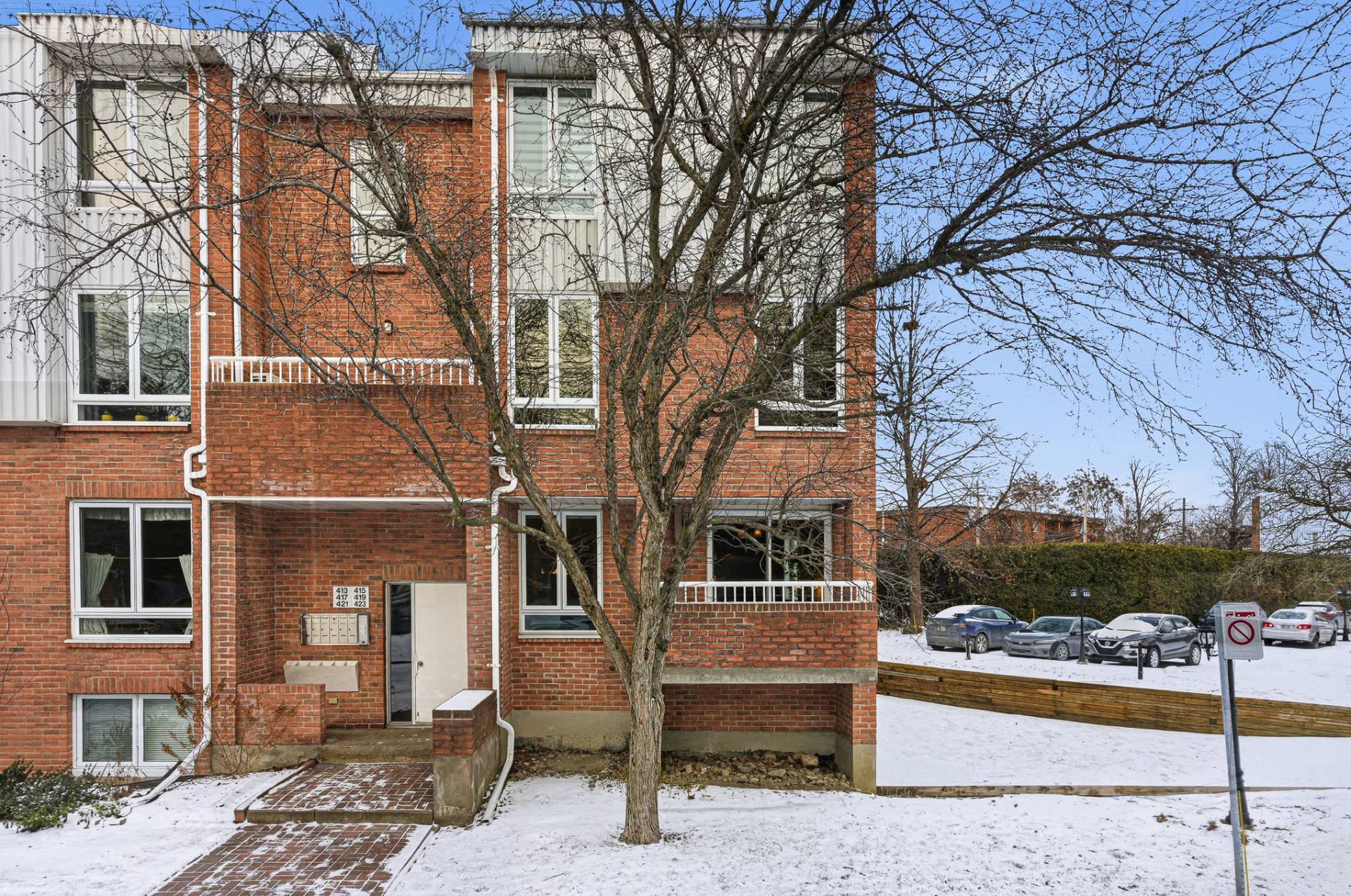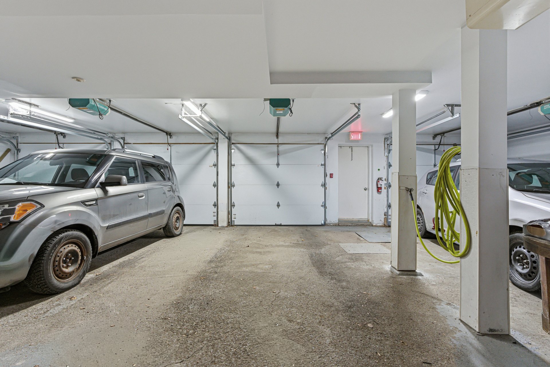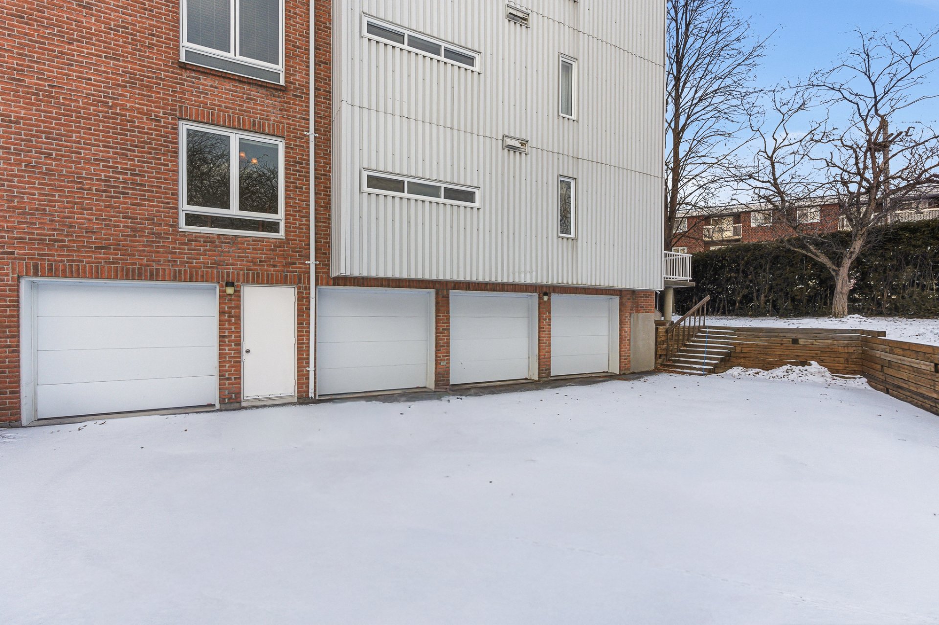 À l'extérieur, plusieurs places de stationnement pour visiteurs sont disponibles pour les occupants du bâtiment. Autour de la piscine creusée, des tables à pique-nique et des chaises longues sont installées durant l'été, offrant un bel espace pour profiter des journées ensoleillées.