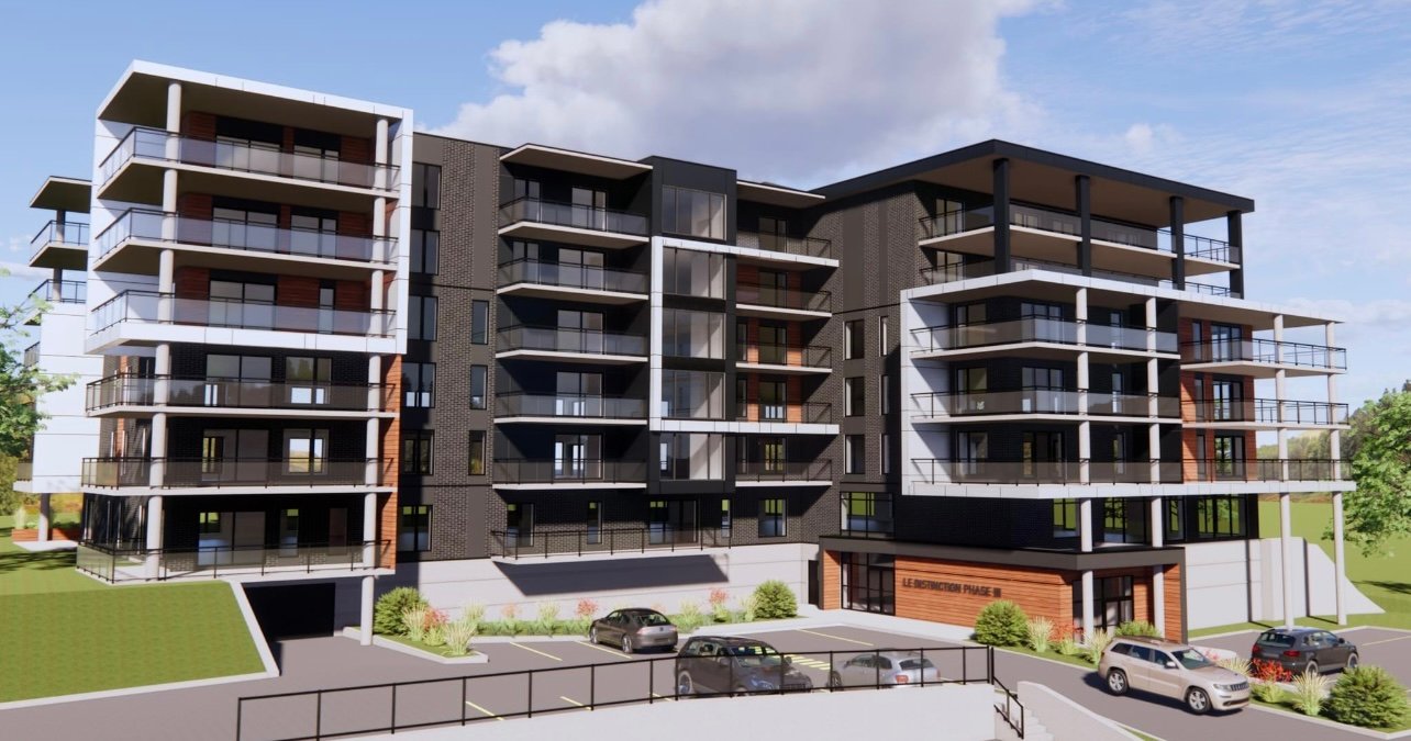 -Immeuble de 6 étages, de style contemporain comprenant 55 condominiums résidentiels.