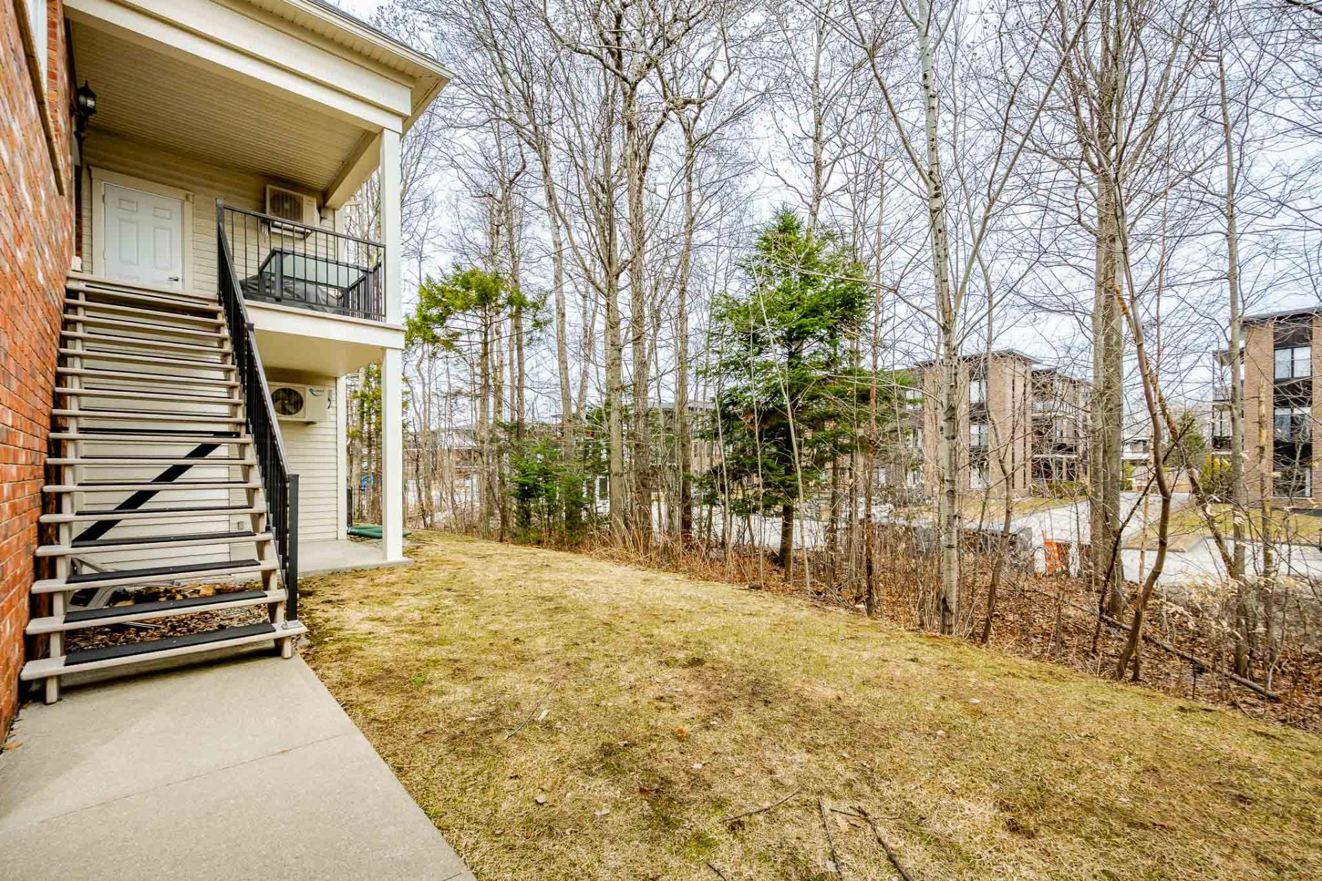 À l'extérieur, un patio arrière privé permet de profiter pleinement des beaux jours dans un environnement calme et intime. Une remise adjacente offre un espace de rangement supplémentaire, toujours pratique pour les équipements saisonniers ou les articles du quotidien. L'unité comprend également deux espaces de stationnement, un avantage appréciable qui simplifie la vie de tous les jours.