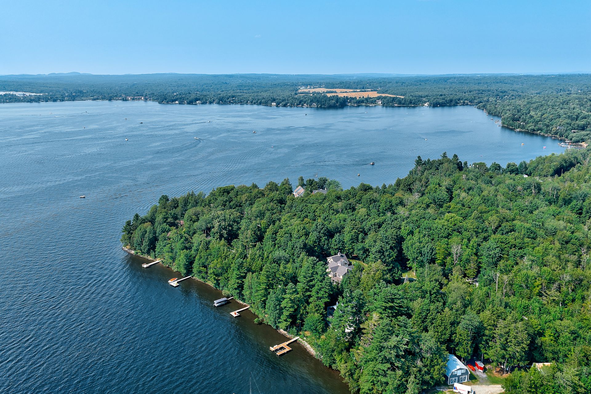 Adresse d'exception sur les rives du Lac Magog, au coeur du secteur privé et recherché de la Pointe-Gervais. Cette résidence de style Hampton, construite en 2005, s'impose sur un terrain de 116 458 pi² (2,67 acres) avec services d'aqueduc et d'égout, offrant 181 pieds de façade plein coucher de soleil et une vue saisissante sur le lac et le Mont Orford. Véritable art de vivre au bord de l'eau, elle séduit par ses quais privés, sa vaste terrasse, sa véranda trois saisons et son garage double avec possibilité de loft. Une propriété rare où élégance et "Lake Life" se rencontrent.