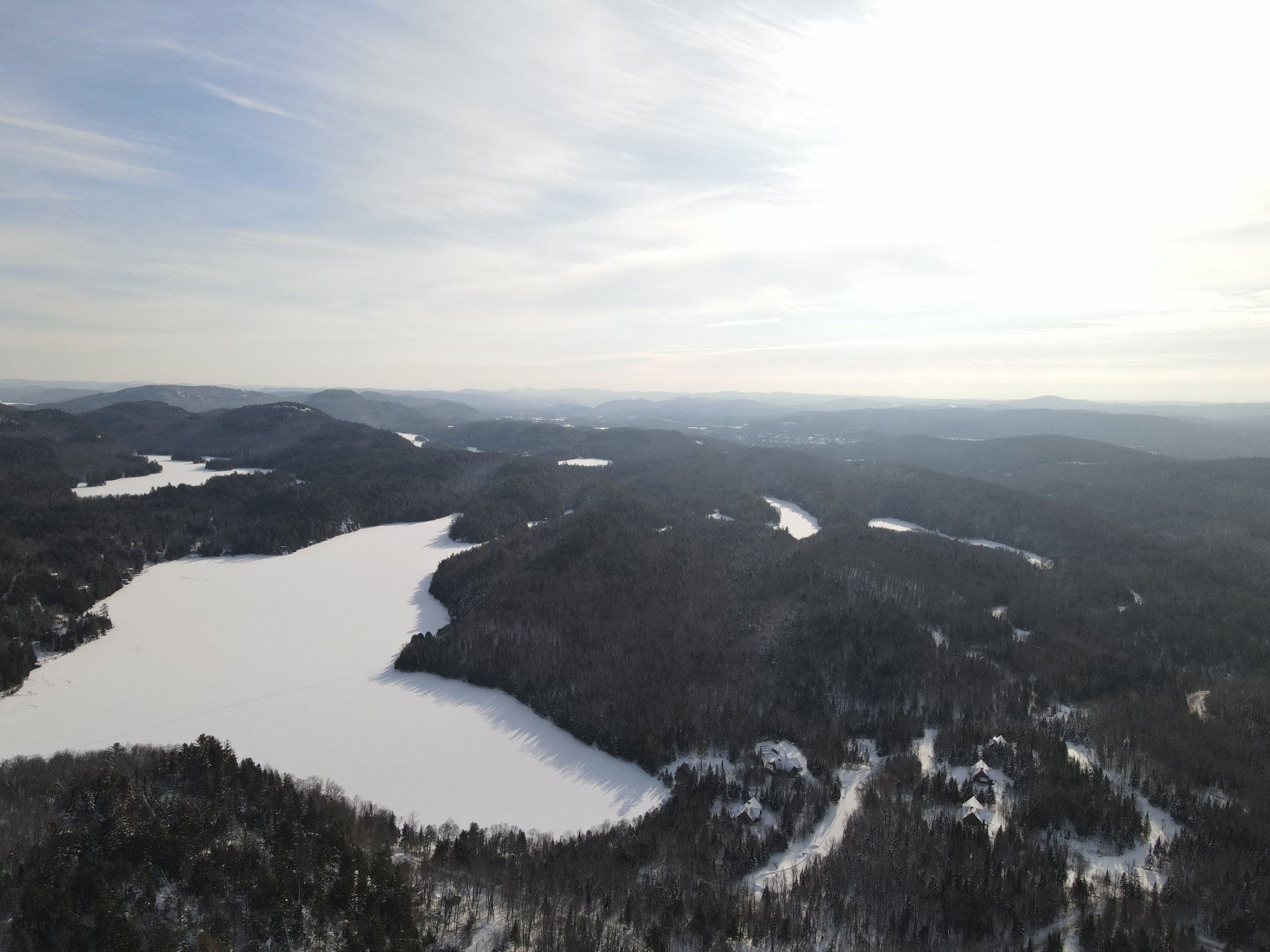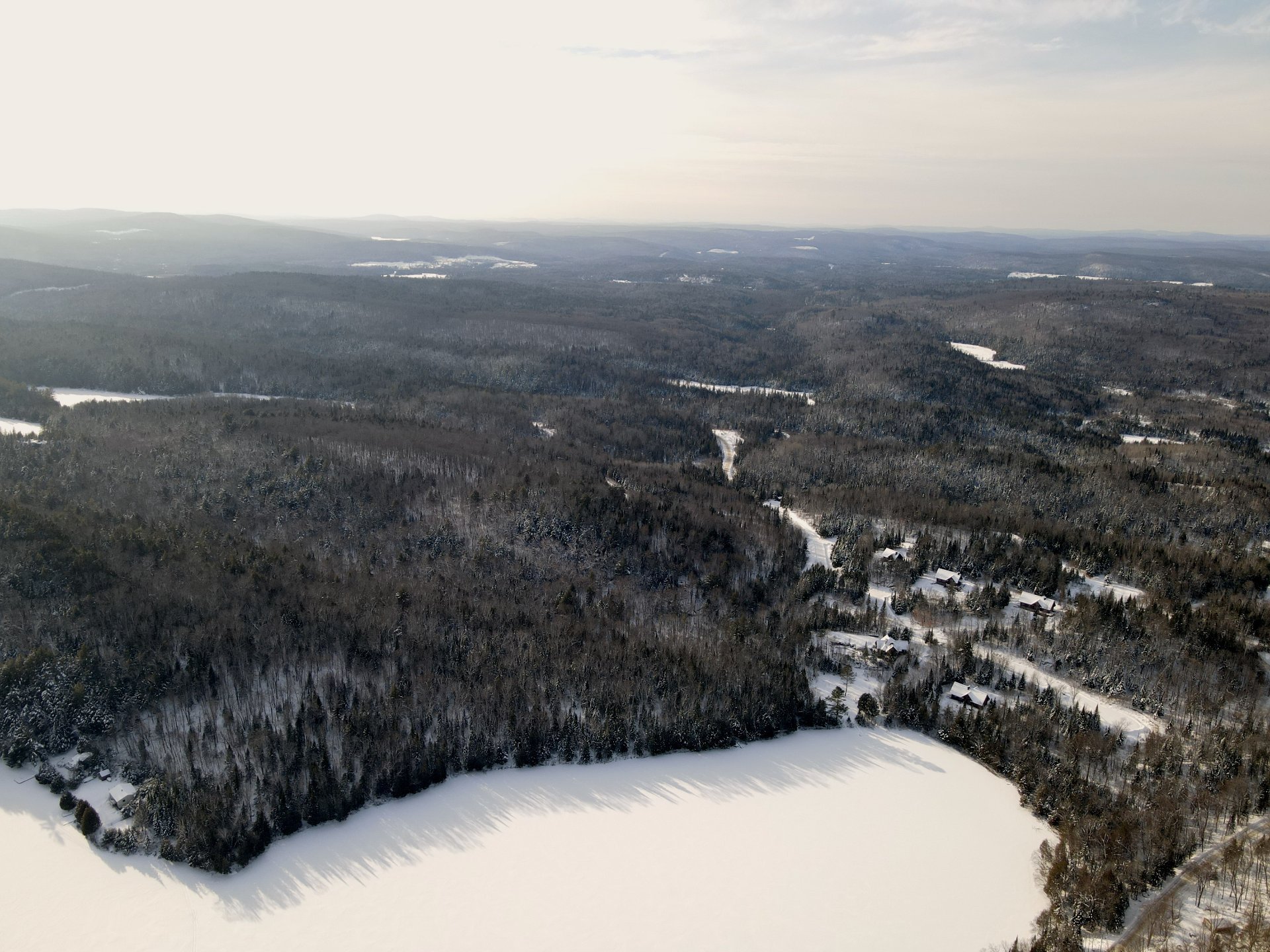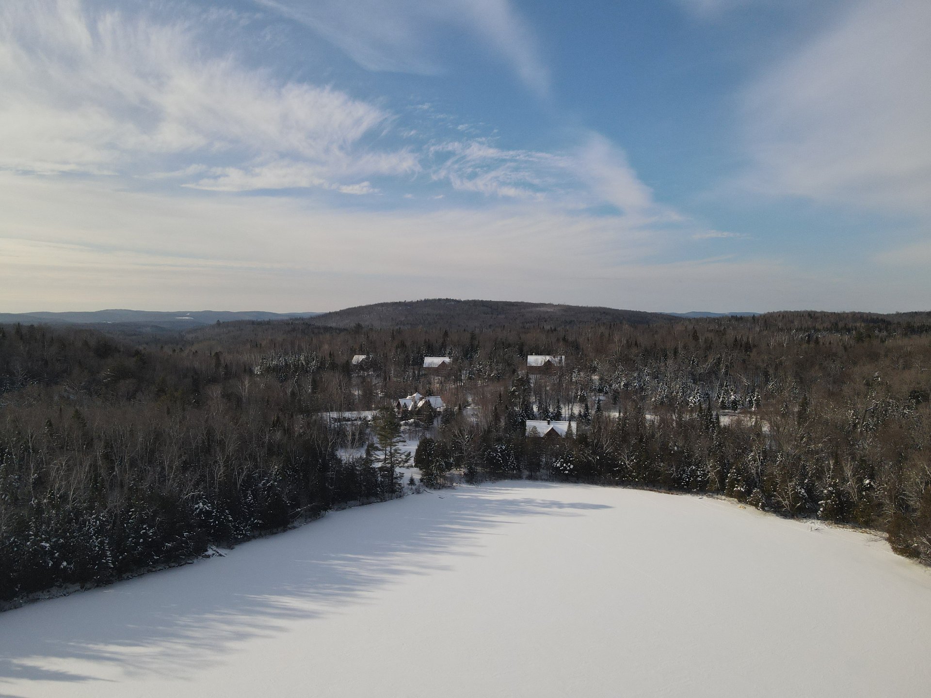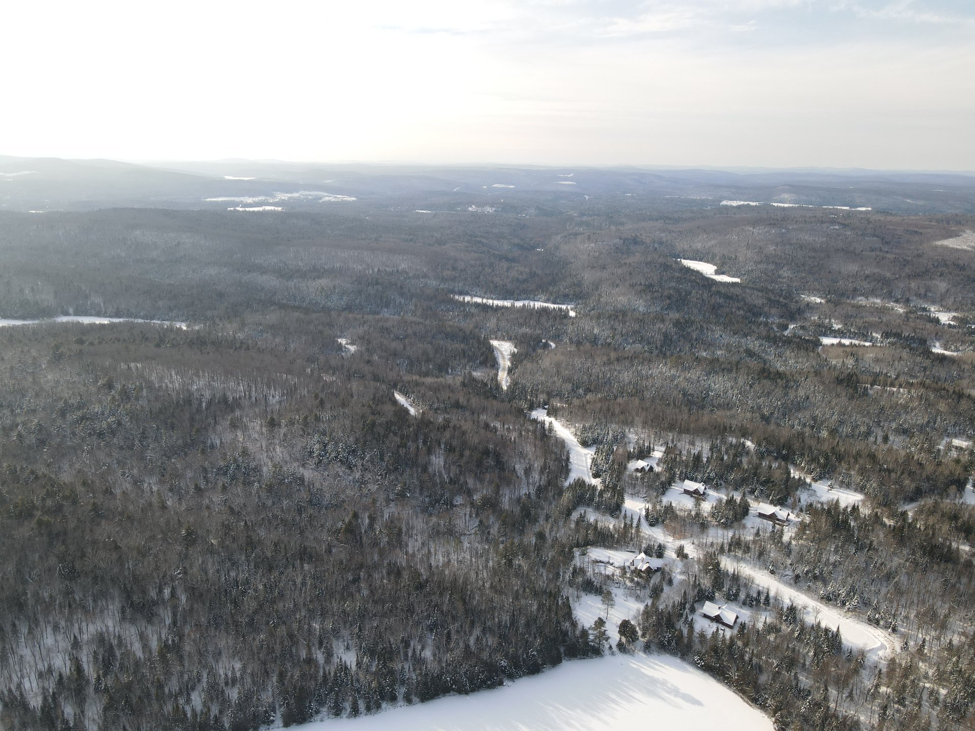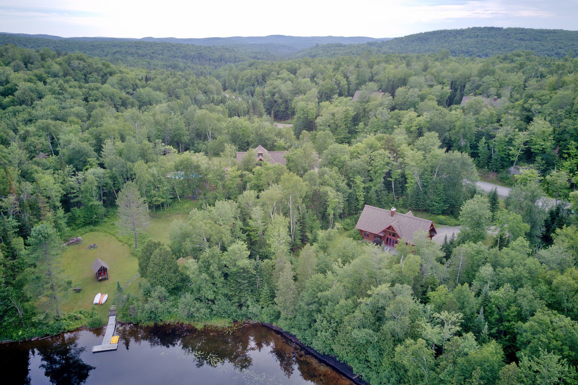 La propriété a 700m de chemins de gravier pleinement aménagés avec installations électriques sous-terraines. En plus des 4 chalets, 10 terrains sont pleinement cadastrés et prêts à être construits.