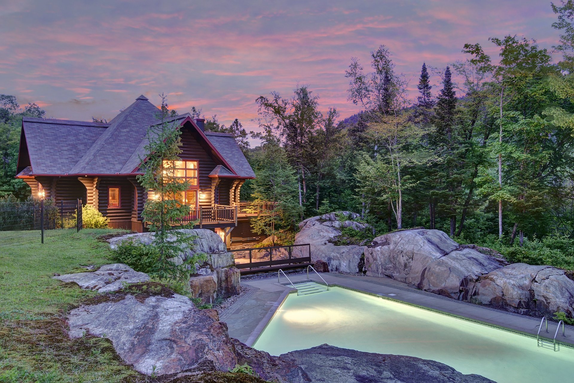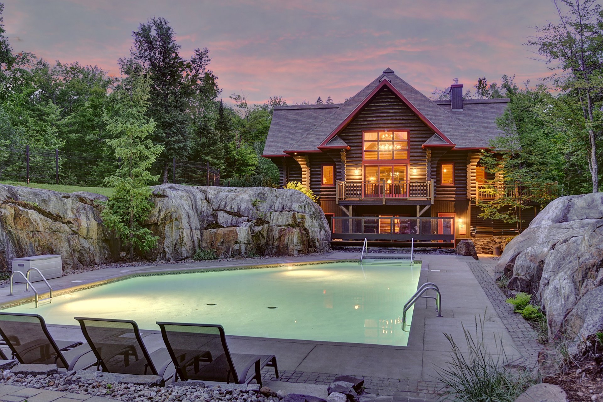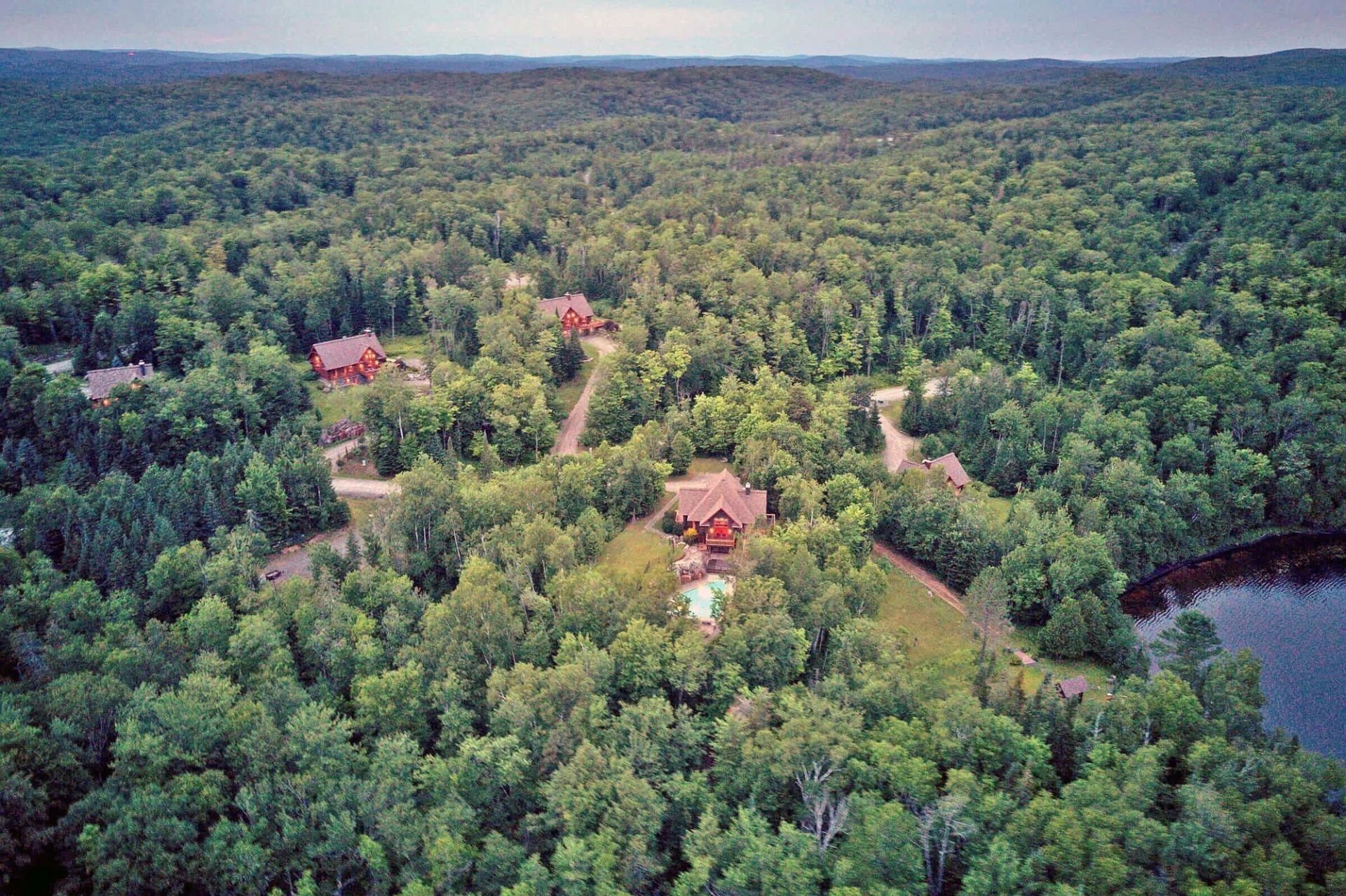 Au coeur des Laurentides, près du parc national du Mont-Tremblant, ce domaine unique s'étend sur 488 acres adossé aux terres de la couronne. Il comprend quatre chalets en bois rond de 3 à 5 chambres, méticuleusement aménagés et entretenus, mettant en valeur une qualité de construction exceptionnelle. Le Clubhouse, élégamment aménagé sur deux étages, propose une salle de réception, une salle de jeux, une piscine creusée, bain tourbillon, et des espaces de détente. La propriété bénéficie de plus de 3000 pieds linéaires sur le lac Mitchell et se trouve à seulement 25 minutes de Mont-Tremblant.
