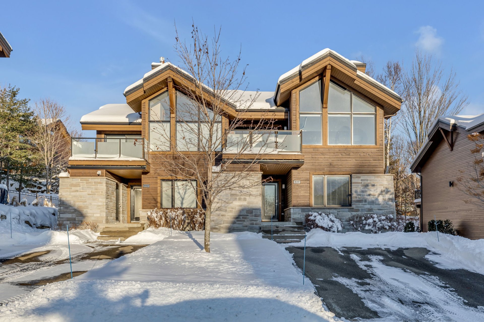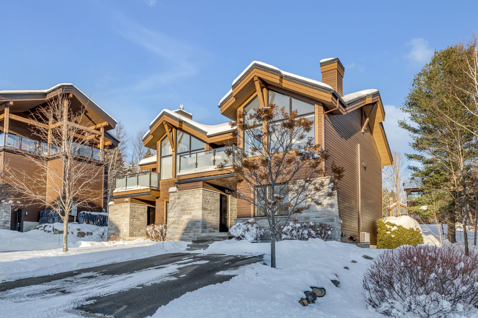 Extérieur -- Un rangement extérieur sécurisé pour skis et vélos, combiné à un accès incomparable aux sentiers de vélo, randonnée et ski, complète ce mode de vie actif et haut de gamme.