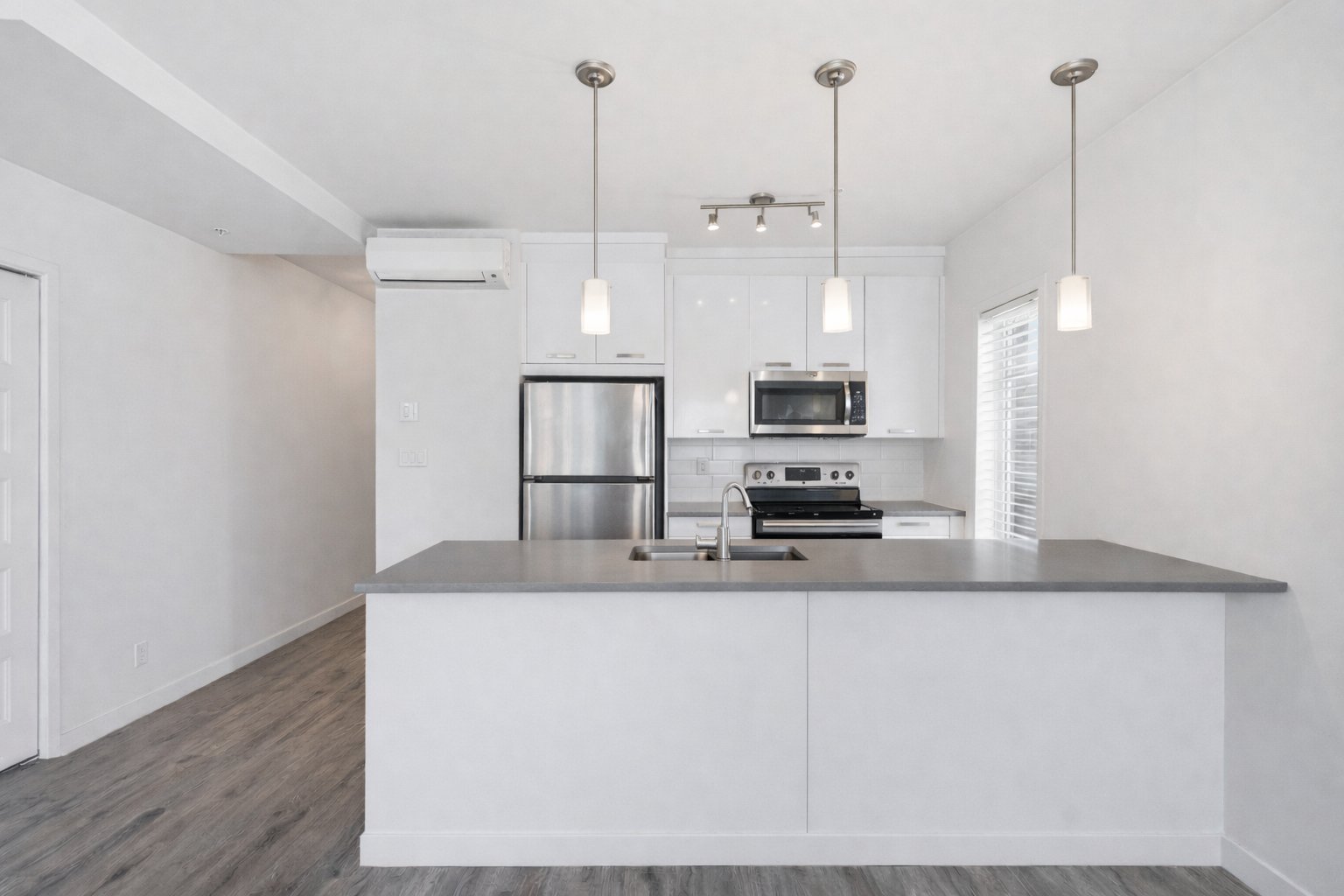 - Électroménagers (réfrigérateur, cuisinière, lave-vaisselle, hotte/micro-ondes, laveuse/sécheuse).