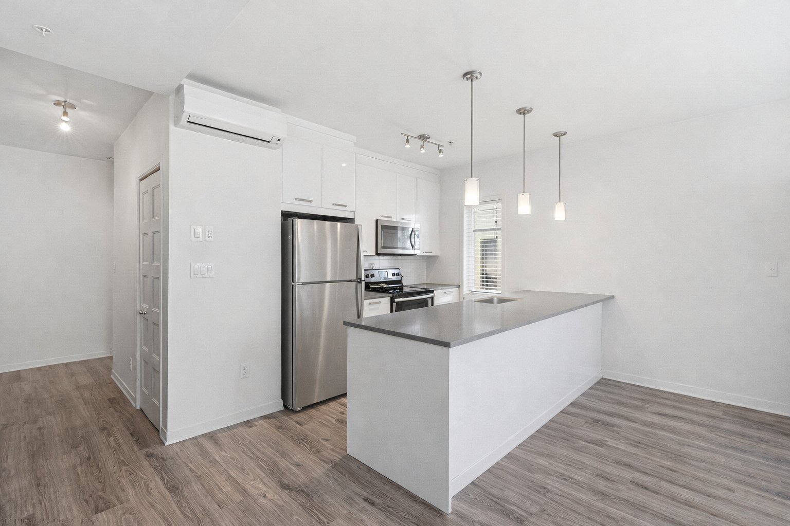 Ce charmant appartement de deux chambres marie parfaitement fonctionnalité, confort et style dans un environnement urbain recherché. Dès votre entrée, vous serez impressionné par son aménagement intelligent et ses finitions raffinées. La chambre principale spacieuse comprend un walk-in, offrant un généreux espace de rangement. La cuisine contemporaine propose un grand comptoir en quartz, de nombreuses armoires pratiques et une configuration idéale pour les amateurs de cuisine. Elle s'ouvre sur un salon accueillant et une salle à manger à aire ouverte, baignés de lumière naturelle grâce aux grandes fenêtres -- un espace parfait pour recevoir famille et amis.