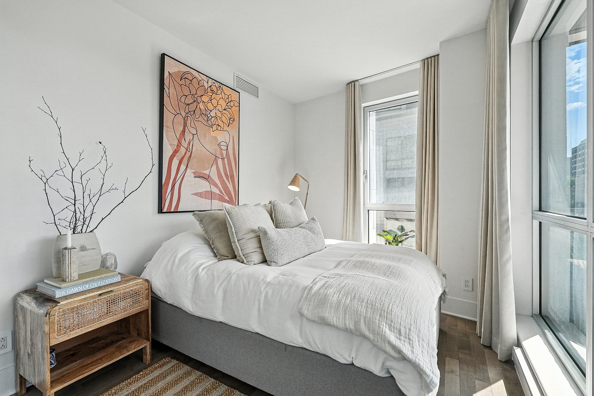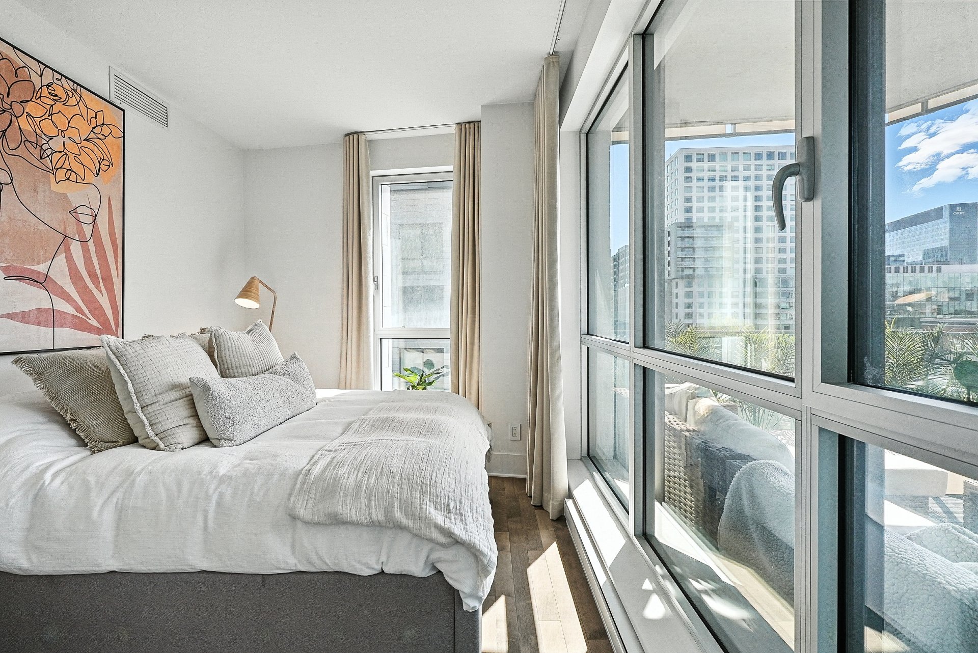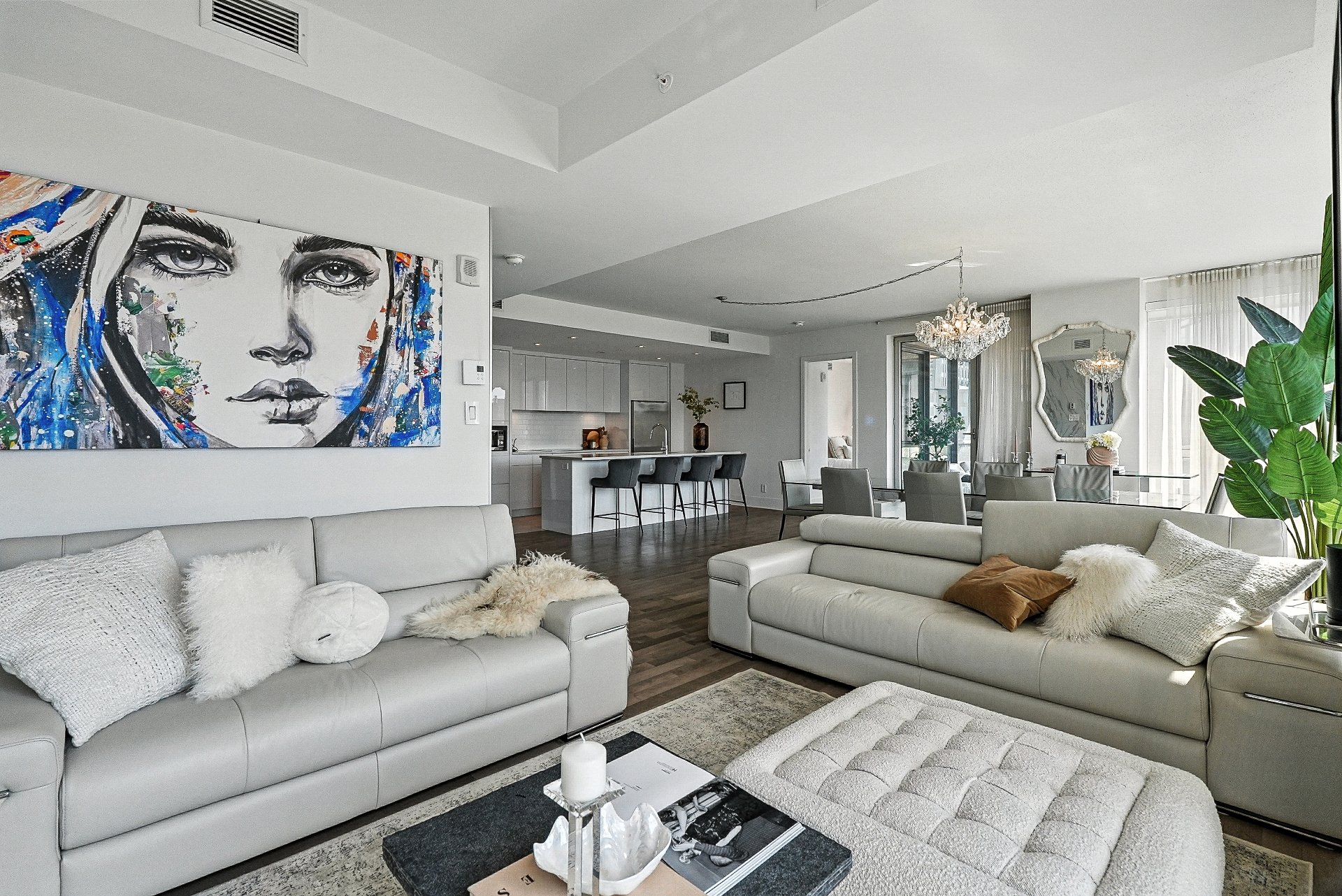 Le Solano, Vieux-Port de Montréal Luxueux condo de 1 316 pi² offrant 2 vastes chambres, dont une suite principale avec salle de bain attenante comprenant douche vitrée et bain indépendant. Profitez d'une vue panoramique sur le centre-ville et ses plus beaux couchers de soleil. Initialement conçu comme bureau des ventes, ce condo se distingue par ses finitions haut de gamme, nettement supérieures aux standards du projet. Occupation rapide possible. Facile à visiter, une occasion rare à saisir.