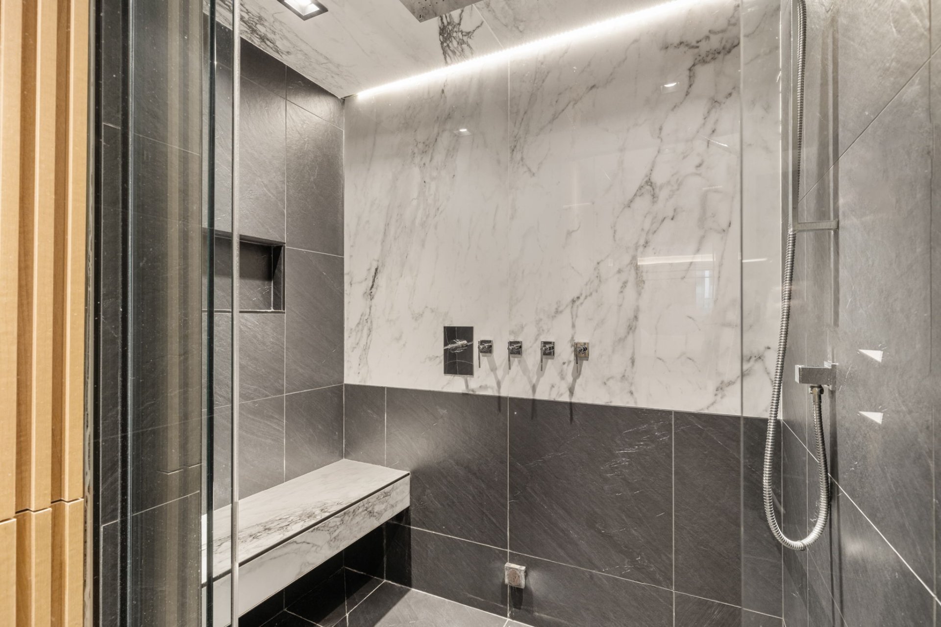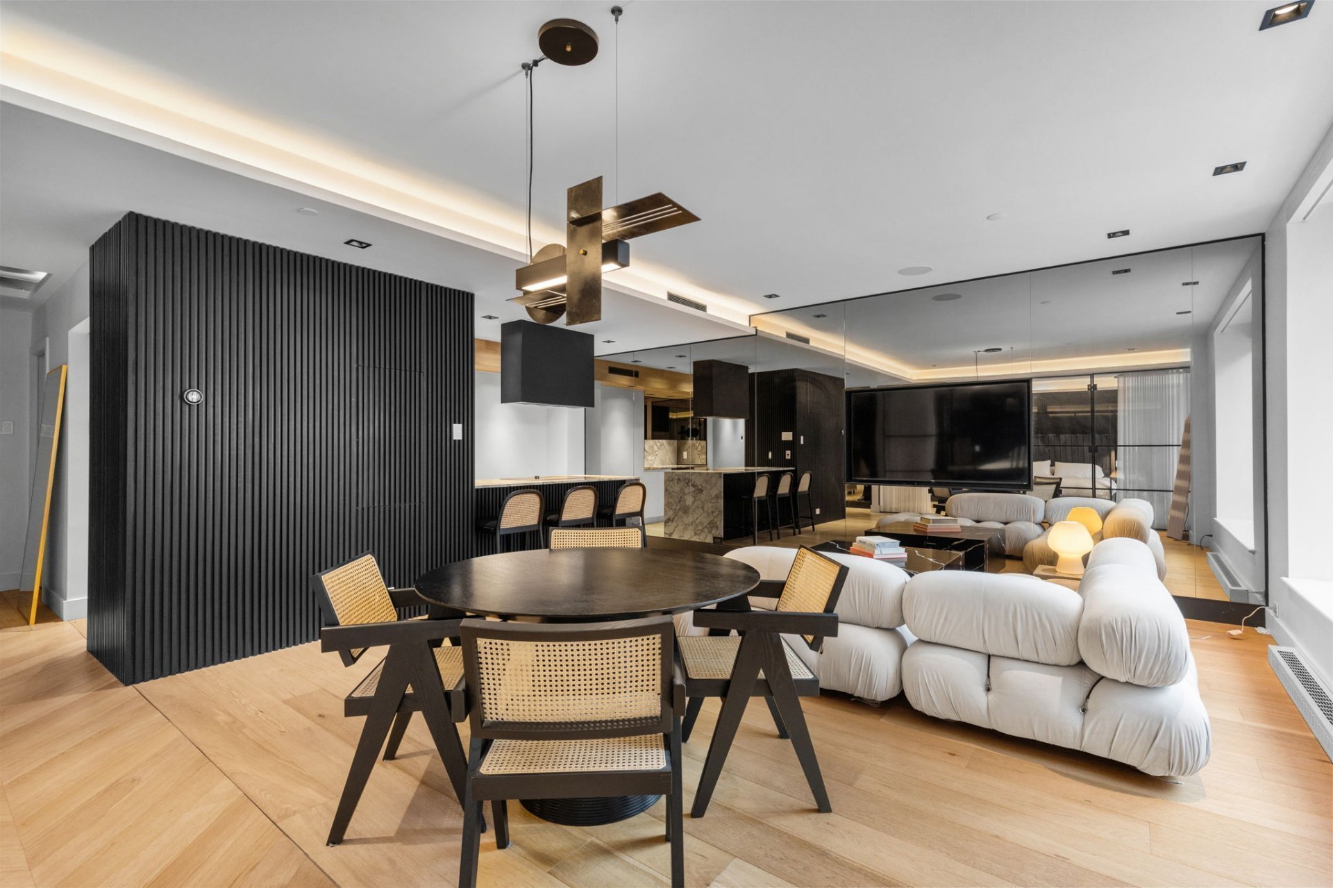Profitez de l'opportunité de posséder cette superbe unité d'une chambre à coucher dans le Cours Mont-Royal! Cette unité magnifiquement rénovée illustre le mode de vie moderne, avec une attention méticuleuse portée à chaque détail. Une grande chambre principale, dotée d'un walk-in et d'une salle de bain attenante. De plus, la salle de bain luxueuse est équipée de planchers chauffants et d'une douche à vapeur, offrant un refuge parfait. Avec des commodités complètes telles que des services de portier et de voiturier, un gym et une piscine intérieure chauffée, cette propriété est un incontournable pour ceux qui recherchent une mode vie luxueuse.