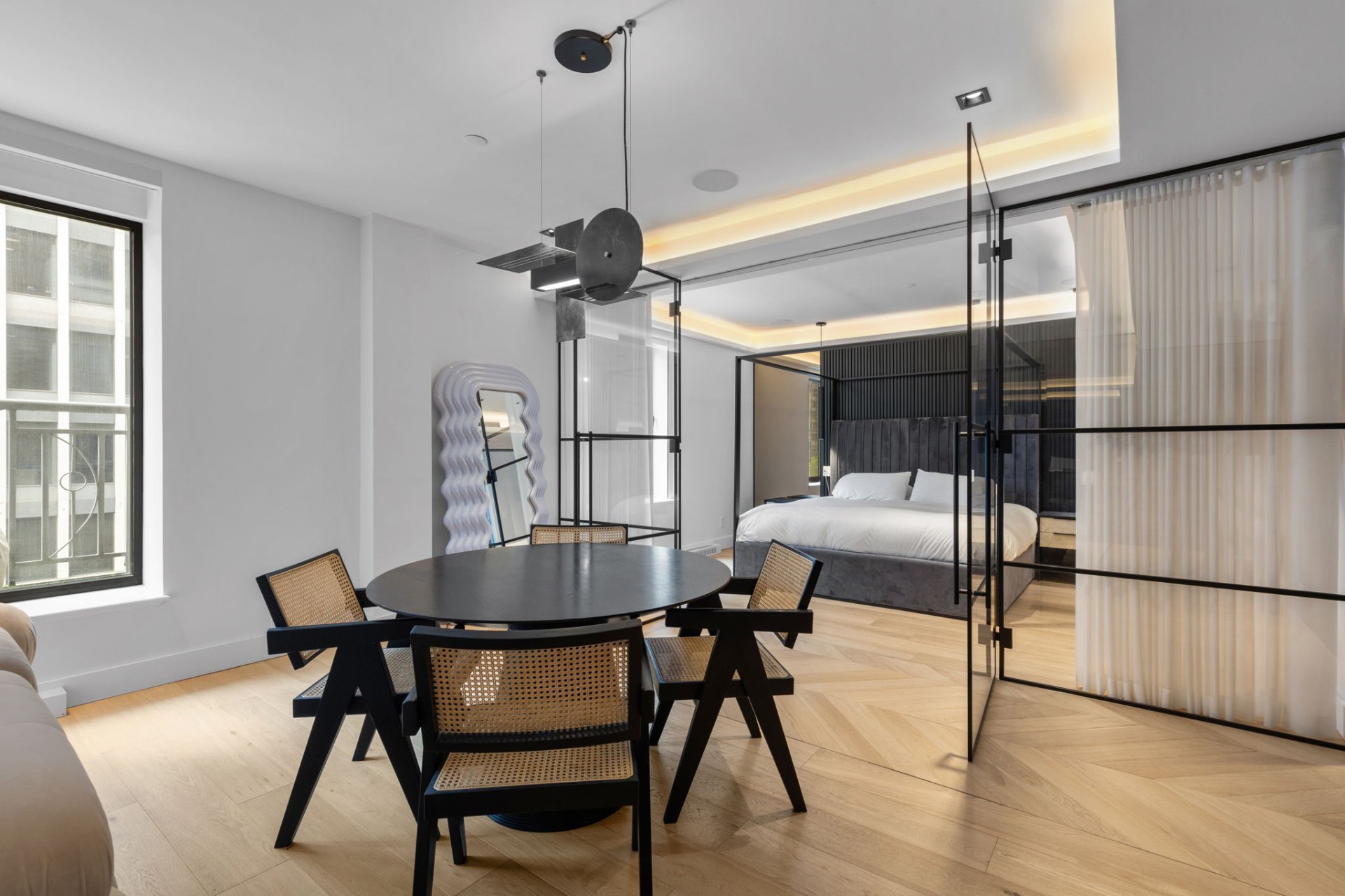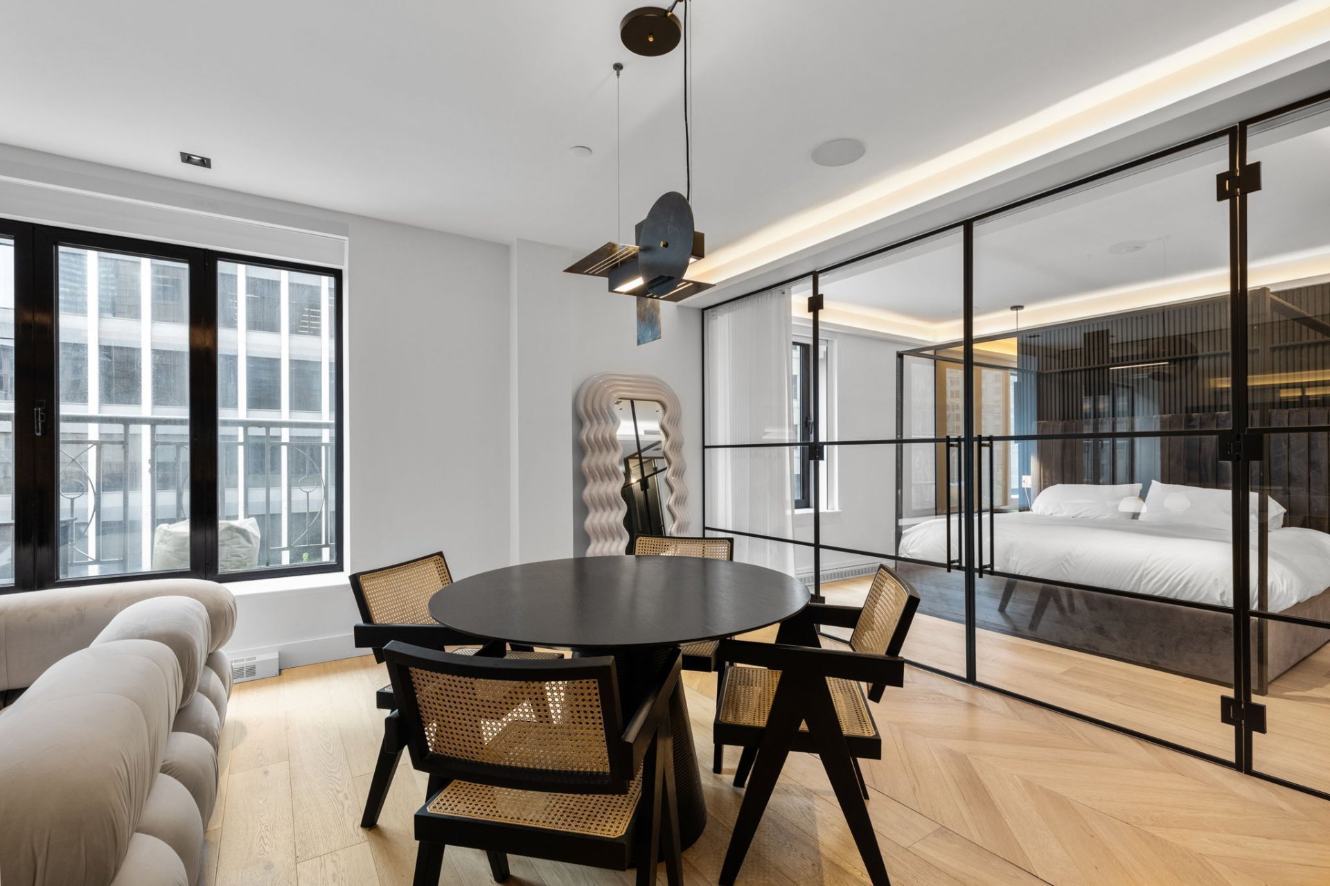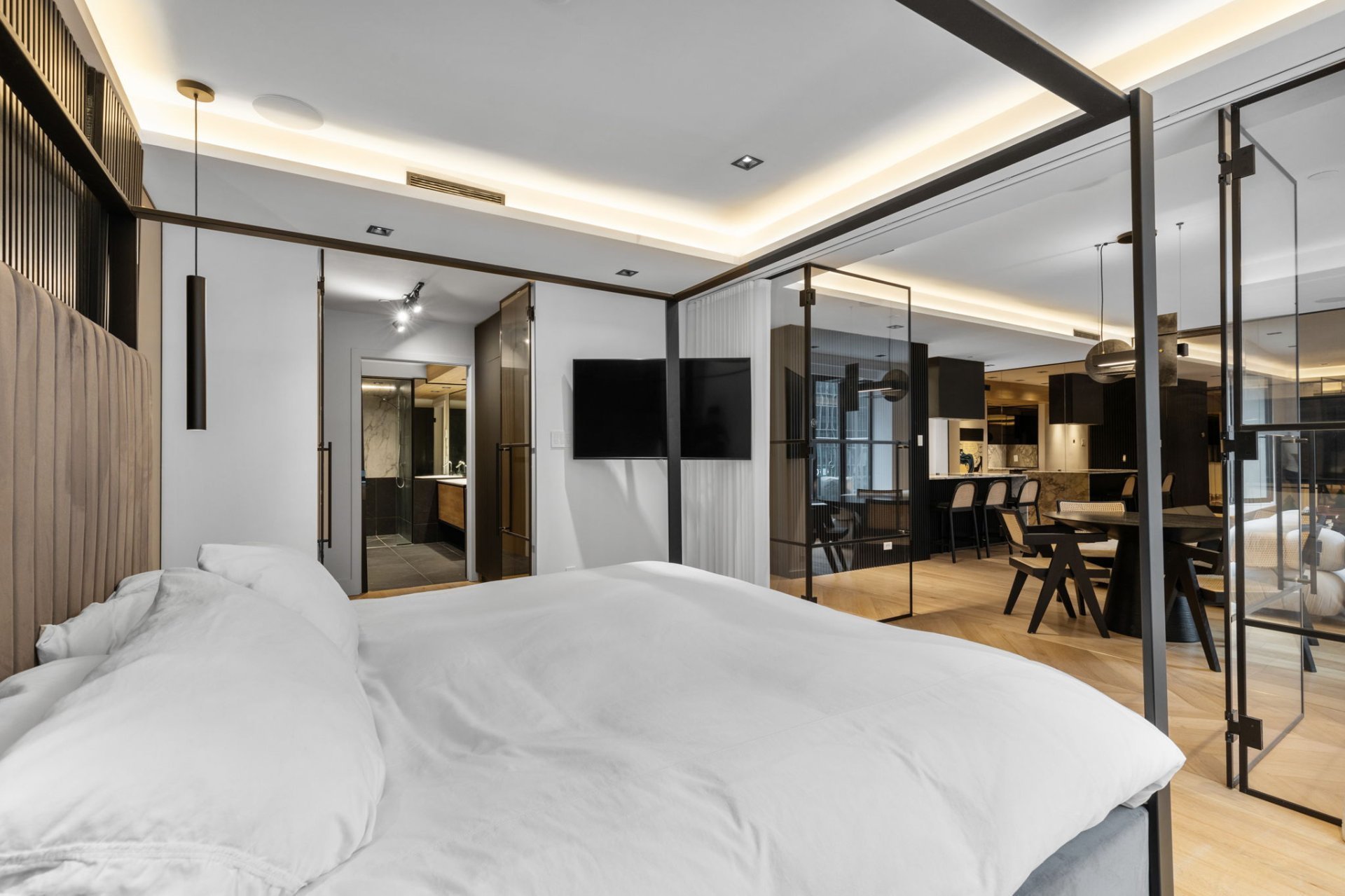 Ne manquez pas l'opportunité de posséder cette superbe unité de 1 chambre au Cours Mont-Royal! Récemment rénovée avec soin, elle offre un confort moderne, avec une chambre principale spacieuse, walk-in et salle de bain attenante. La salle de bain luxueuse comprend des planchers chauffants et une douche à vapeur. L'immeuble dispose de commodités complètes : concierge, service de voiturier, salle de sport et piscine intérieure chauffée. Emplacement idéal, à proximité des commerces, restaurants, universités, avec accès direct à la Ville souterraine et à la station Peel.