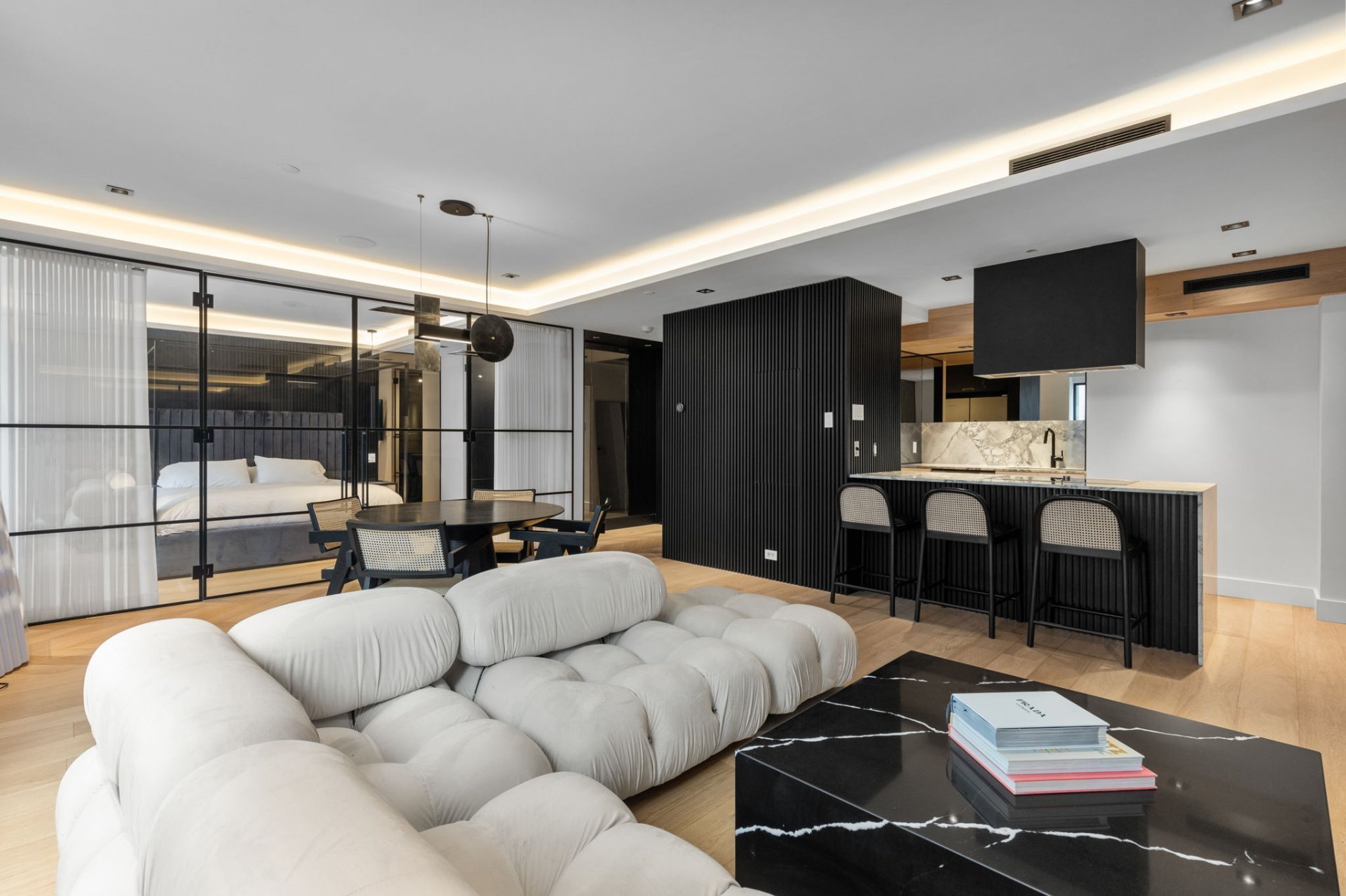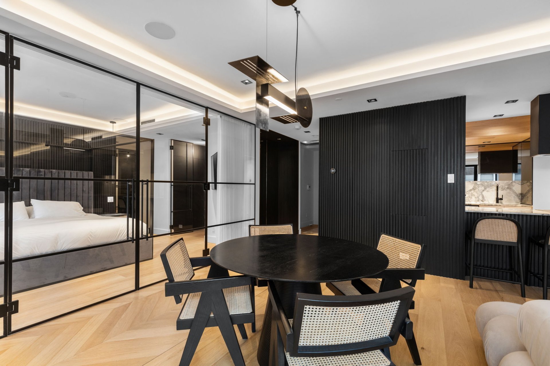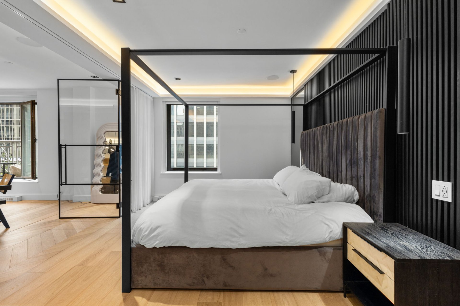 Ne manquez pas l'opportunité de posséder cette superbe unité de 1 chambre au Cours Mont-Royal! Récemment rénovée avec soin, elle offre un confort moderne, avec une chambre principale spacieuse, walk-in et salle de bain attenante. La salle de bain luxueuse comprend des planchers chauffants et une douche à vapeur. L'immeuble dispose de commodités complètes : concierge, service de voiturier, salle de sport et piscine intérieure chauffée. Emplacement idéal, à proximité des commerces, restaurants, universités, avec accès direct à la Ville souterraine et à la station Peel.