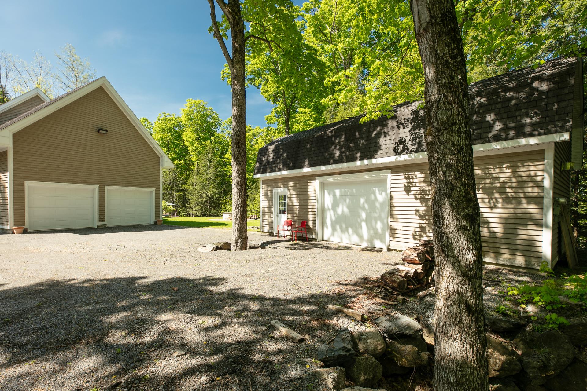 L'extérieur de la propriété prolonge l'expérience de confort et de détente. Un garage double avec plafond très haut (possibilité de lift). Un atelier séparé avec porte de garage est idéal pour ranger les équipements et outils. Un espace feu de camp parfait pour des soirées sous les étoiles. Un coin baignade avec piscine hors-terre chauffée et un vaste patio permet d'organiser des repas et des moments conviviaux en plein air. Un terrain boisé de près de 62 000 pieds carrés offre un cadre naturel exceptionnel et une tranquillité absolue.