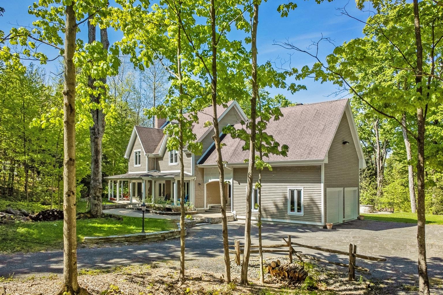 CLÉ EN MAIN, 3 GARAGES, UN HAVRE DE PAIX AU COEUR DE LA NATURE Laissez-vous charmer par cette somptueuse résidence luxueuse nichée sur un vaste terrain boisé de près de 61 000 pi². Offrant une qualité de construction exceptionnelle et une luminosité incomparable, cette propriété est un véritable coup de coeur. Idéale pour une famille, elle dispose de quatre chambres à coucher et 2 salles de bains à l'étage. Sous-sol avec coin cuisine et 3e salle de bains. Son extérieur soigneusement aménagé vous promet des moments inoubliables. Piscine, coin feu chaleureux et magnifique patio offrant une vue imprenable sur les plus beaux couchers de soleil.