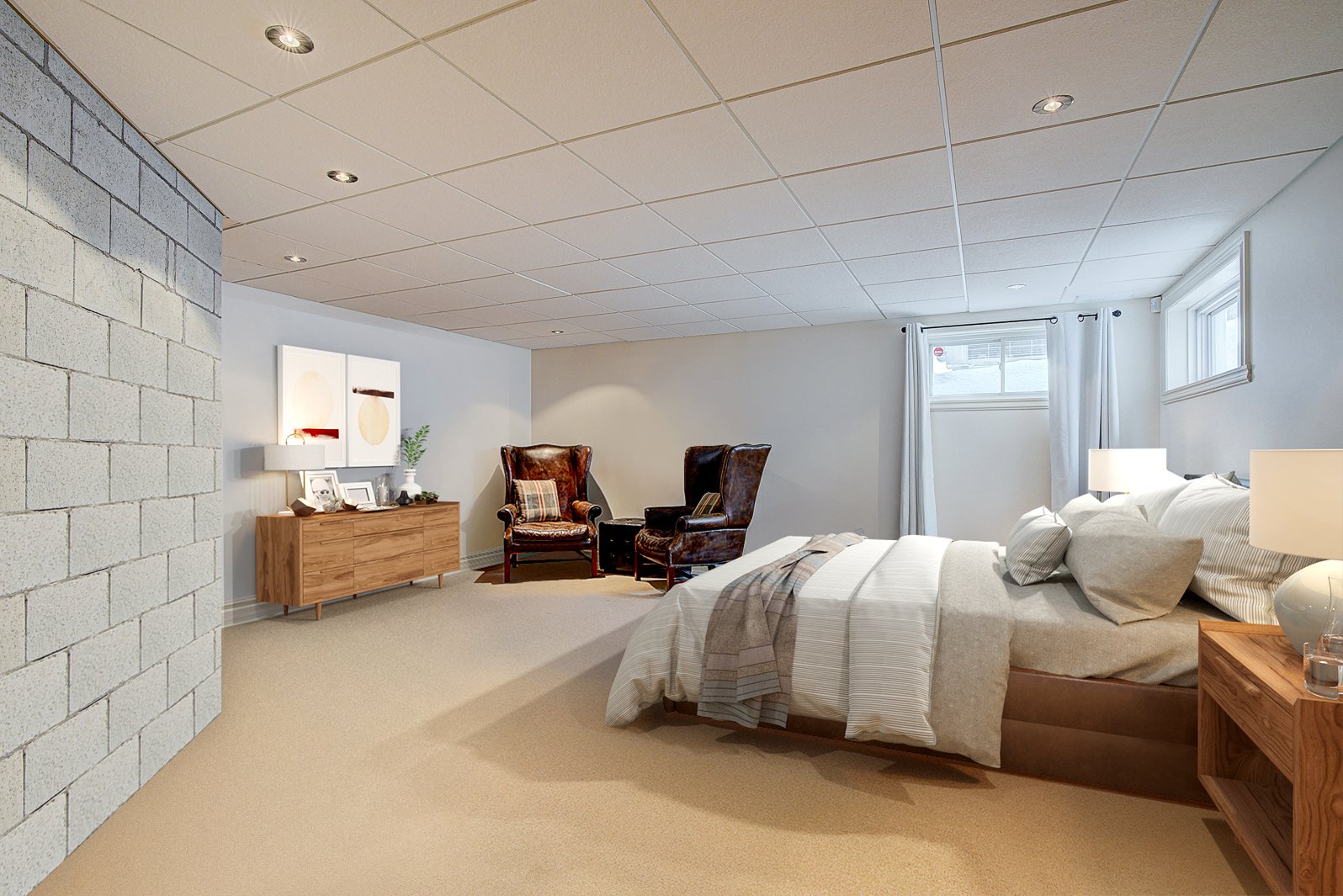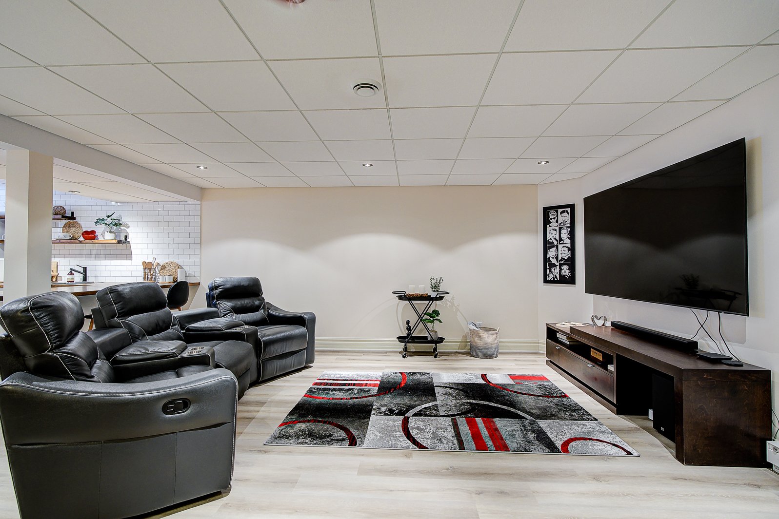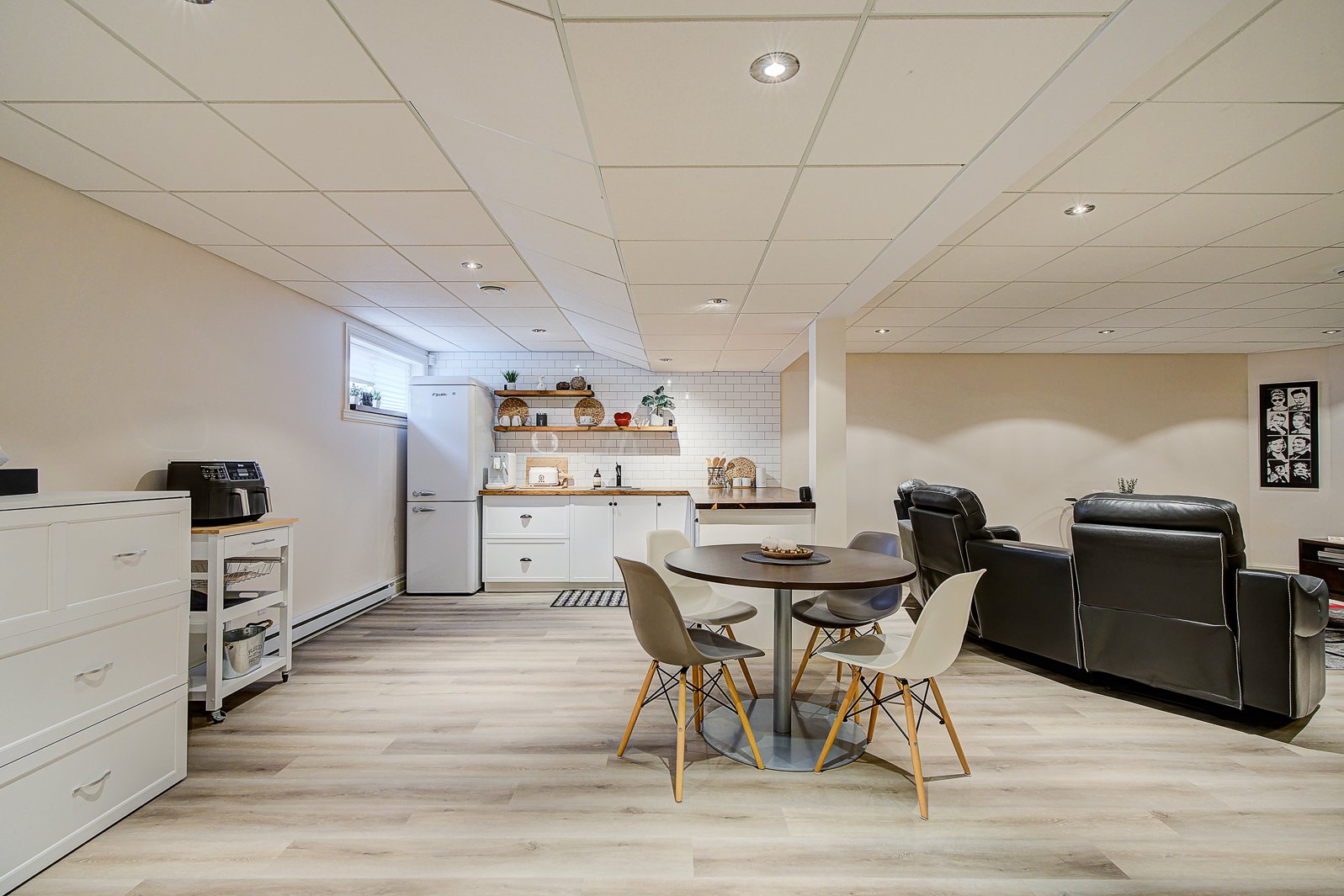 Le sous-sol clé en main a été conçu pour être à la fois un espace de vie et de réception. Il comprend une cuisinette et un bar, parfait pour recevoir en toute simplicité, ainsi qu'une salle de jeux et une salle familiale idéales pour des moments de détente et de plaisir. Une salle de bains complète offre un maximum de commodité. Une garde-robe en cèdre et un vaste espace de rangement permettent un intérieur toujours bien organisé. Une salle mécanique optimise la gestion des équipements.