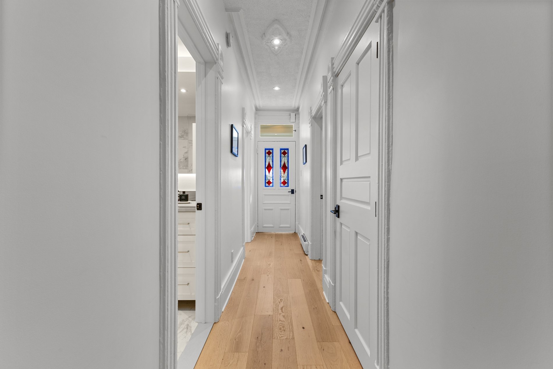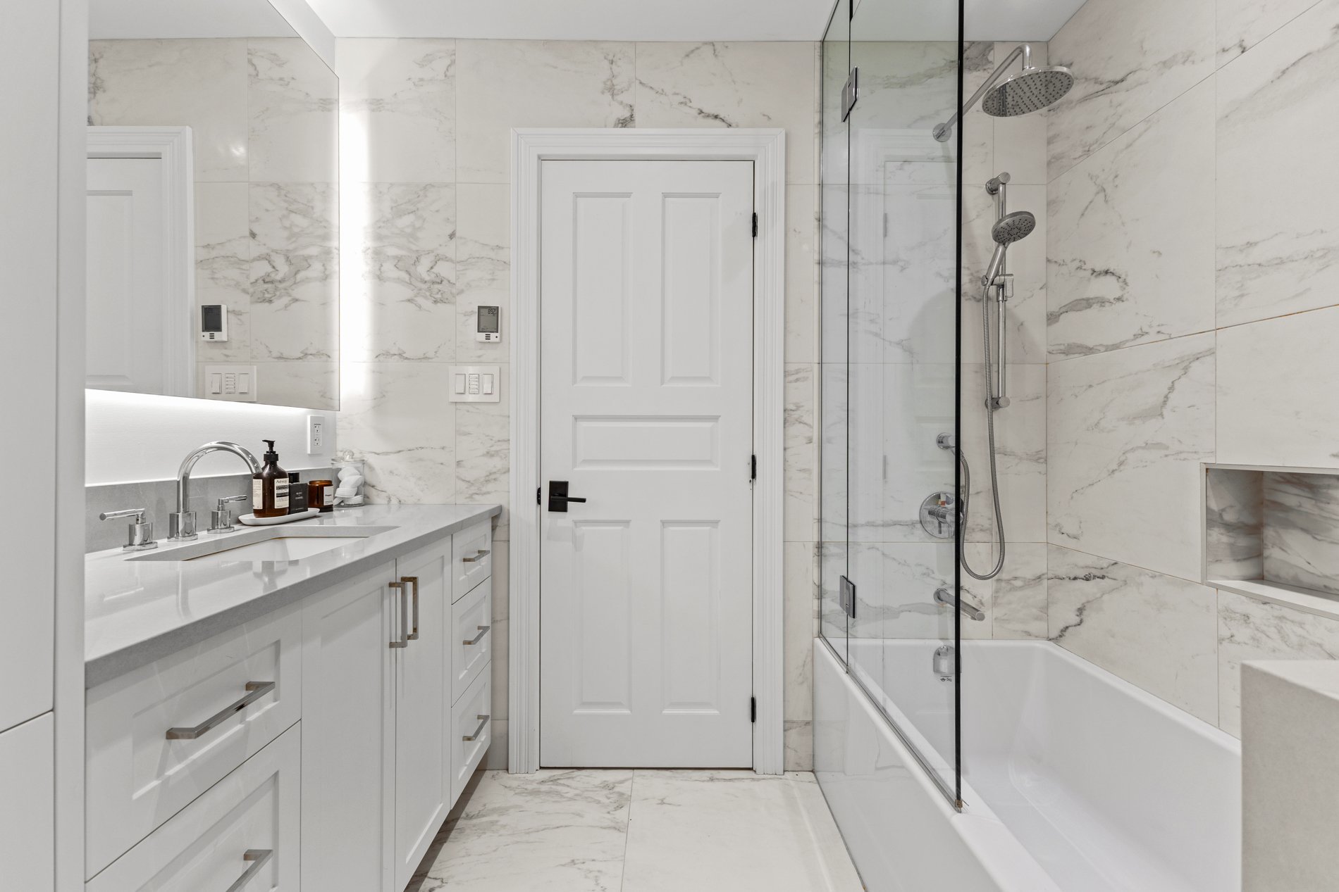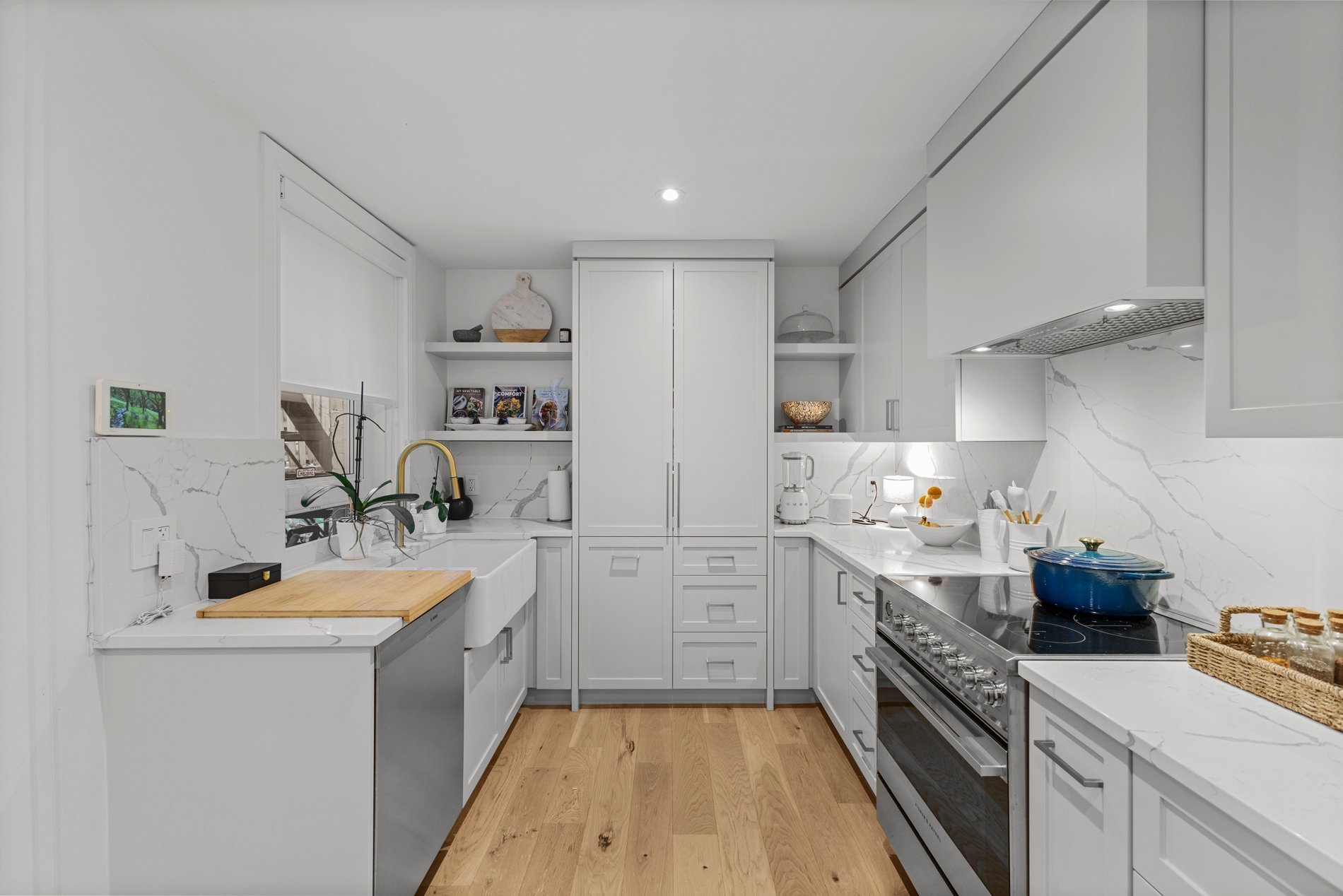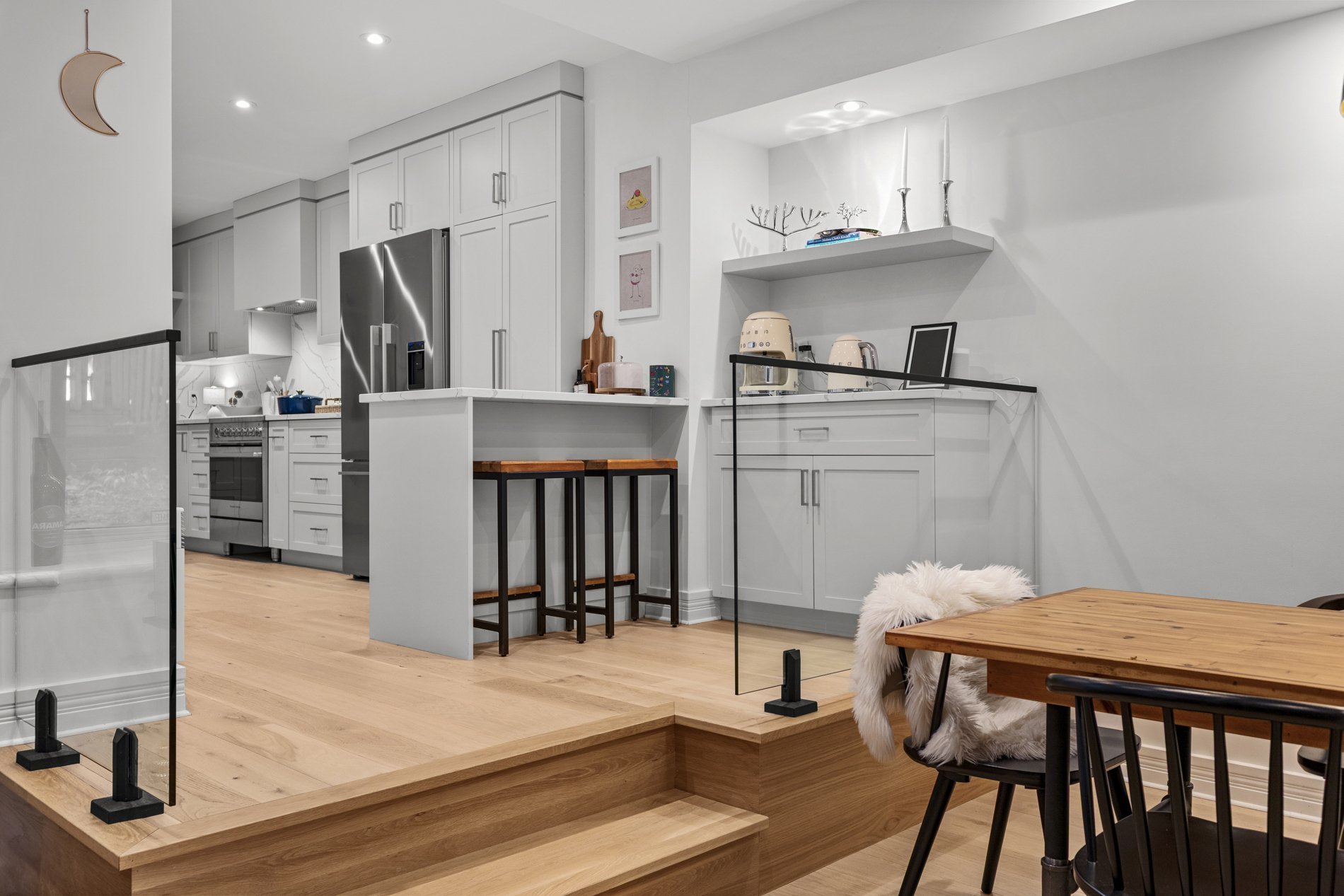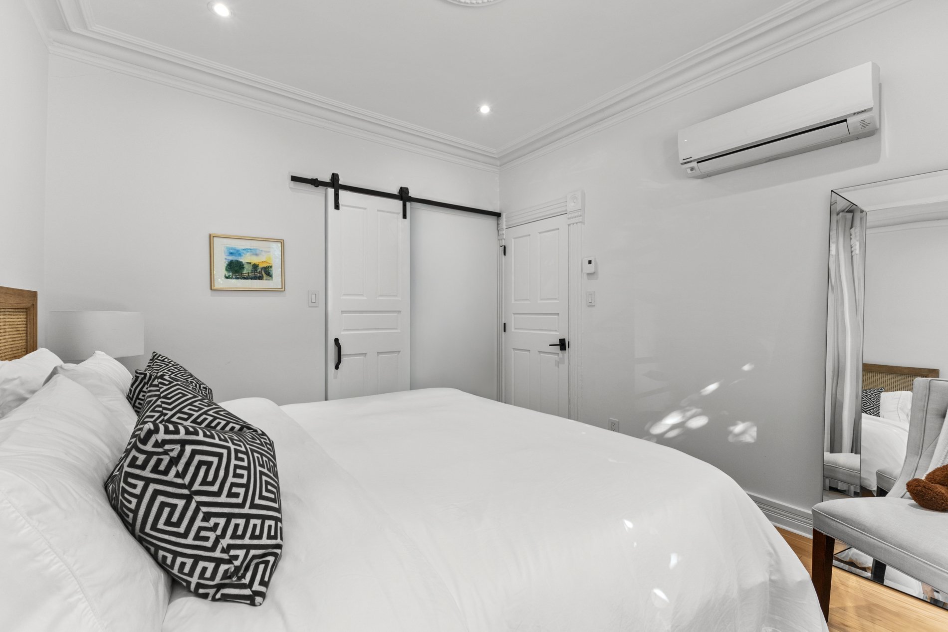 - Rénovations majeures complétées en 2021--2022, incluant une cuisine et une salle de bain entièrement repensées, des unités encastrées sur mesure avec étagères dans le salon, le retrait d'un mur porteur pour créer un espace de vie à aire ouverte, de nouveaux planchers en chêne blanc d'ingénierie partout, des planchers chauffants dans la salle de bain, deux thermopompes murales, un nouveau revêtement de sol en céramique à l'entrée, ainsi qu'un walk-in sur mesure dans la chambre principale. Veuillez consulter la Déclaration du vendeur pour plus de détails.