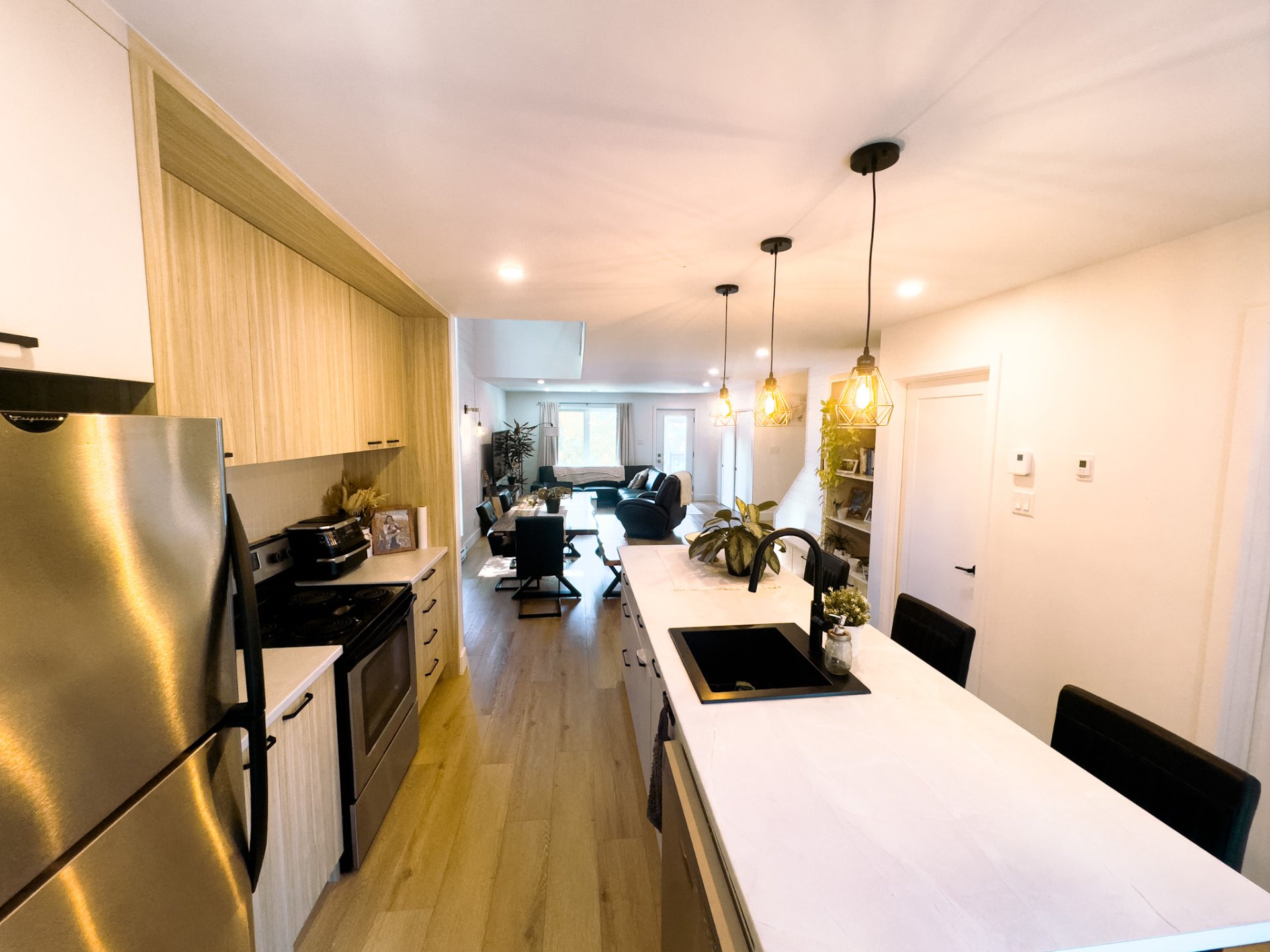Logement de type maison de ville de construction récente offrant environ 1 500 pi² répartis sur deux niveaux. La propriété propose une configuration moderne et fonctionnelle avec des espaces de vie lumineux et bien proportionnés. Les trois chambres sont situées à l'étage, incluant une spacieuse chambre des maîtres avec walk-in et balcon privé. L'unité comprend une salle de bain complète et une salle d'eau, une thermopompe avec climatisation pour un confort à l'année, une balayeuse centrale ainsi que les entrées laveuse-sécheuse et lave-vaisselle. Entrée indépendante pour chaque unité. Un stationnement extérieur déneigé est inclus.
