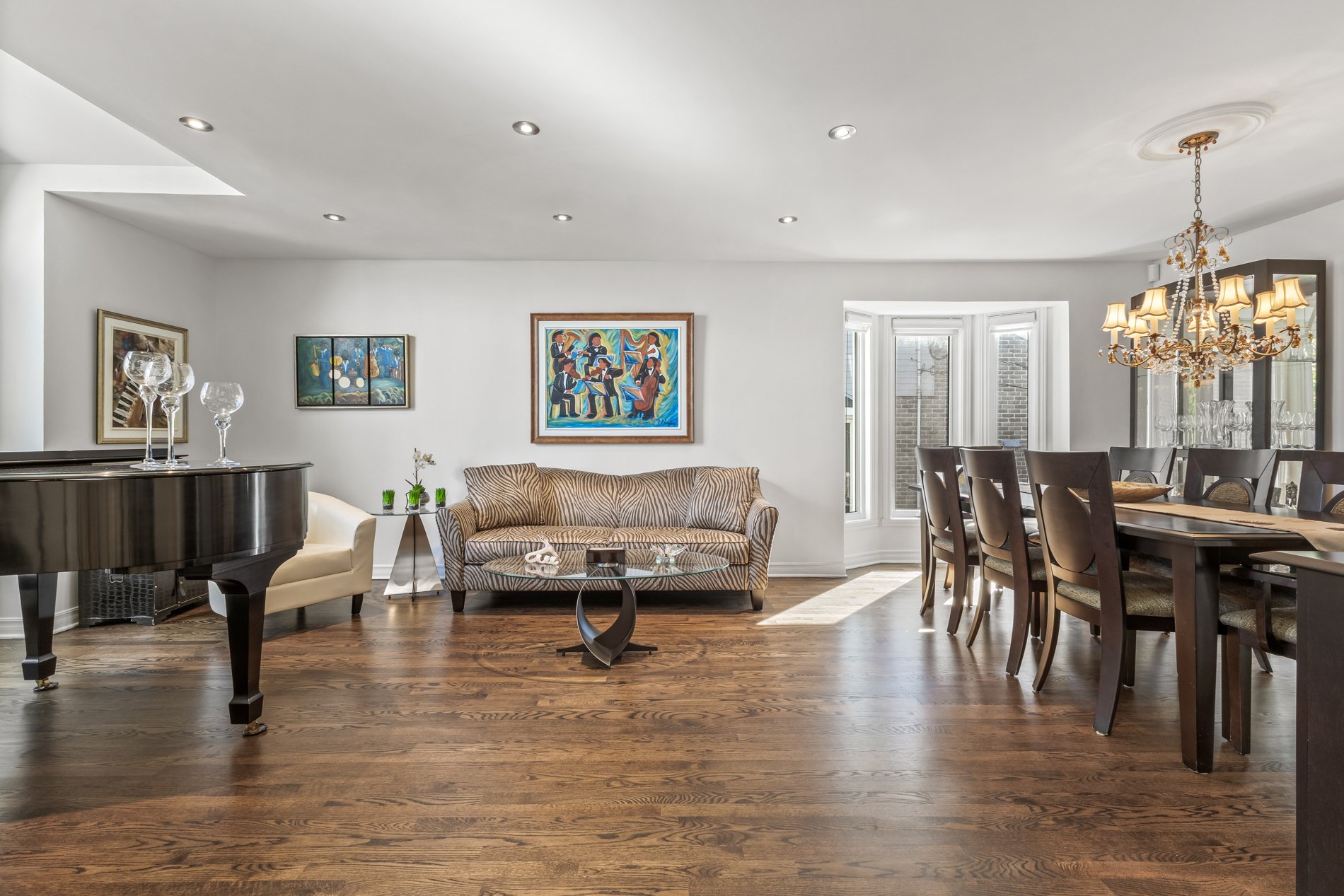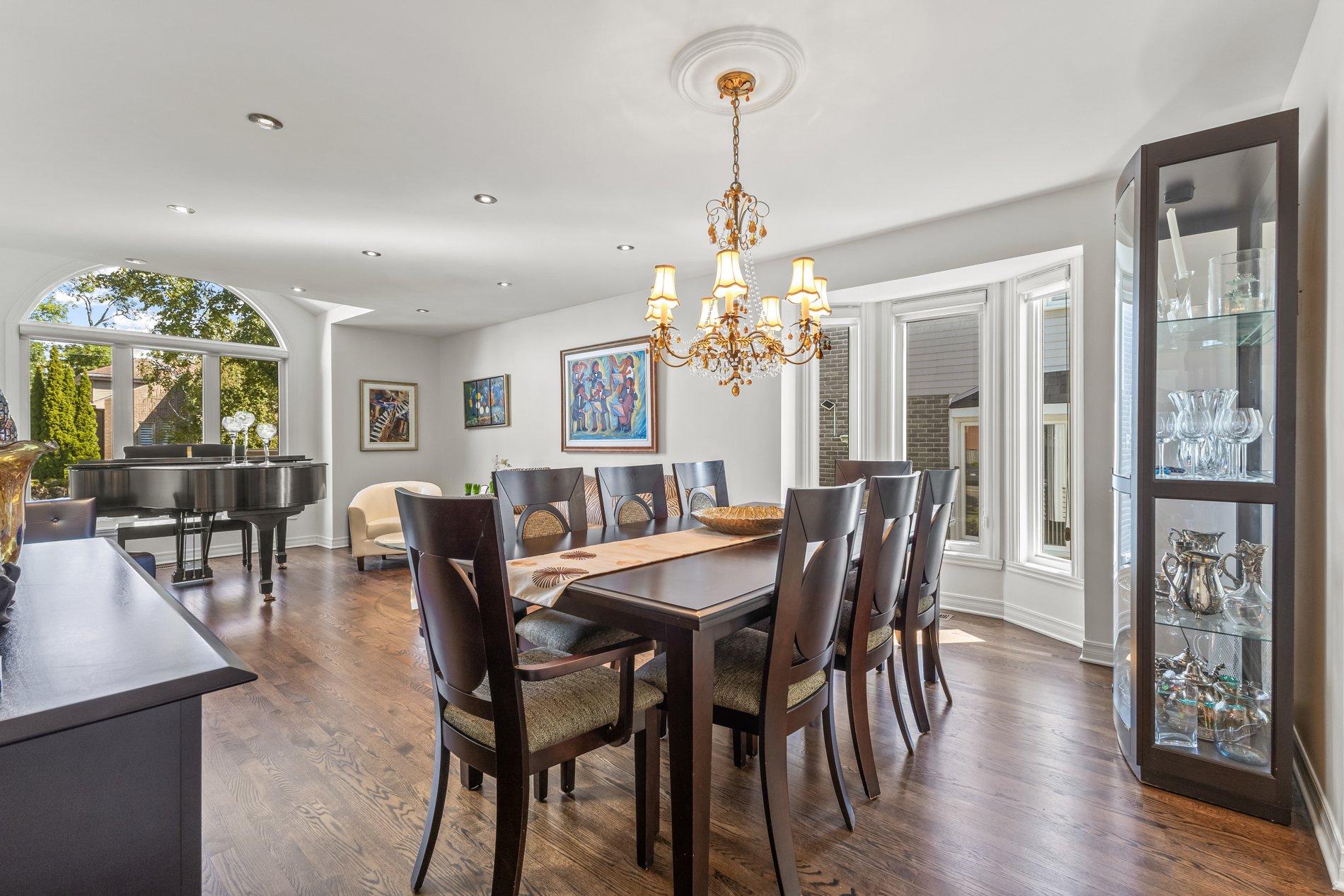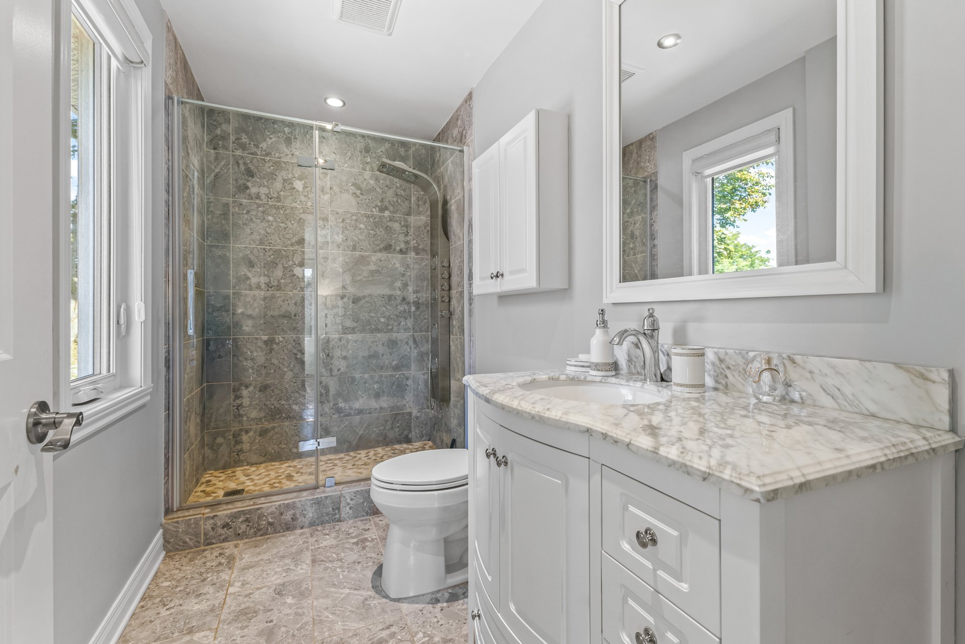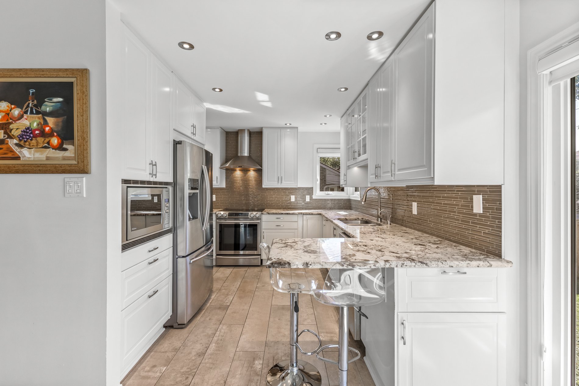 Les salons et salles à manger formels offrent un espace idéal pour recevoir. La cuisine entièrement rénovée comprend des matériaux haut de gamme, un éclairage sous et a l'intérieure des armoires, comptoirs en granit et un îlot péninsule parfait pour les repas décontractés. Électroménagers inclus: réfrigérateur, cuisinière, four, lave-vaisselle, hotte et micro-ondes encastré. Le coin repas lumineux est entouré de grandes fenêtres. Un grand garde-manger et une salle d'eau rénovée avec des finitions en pierre allient fonctionnalité et style.