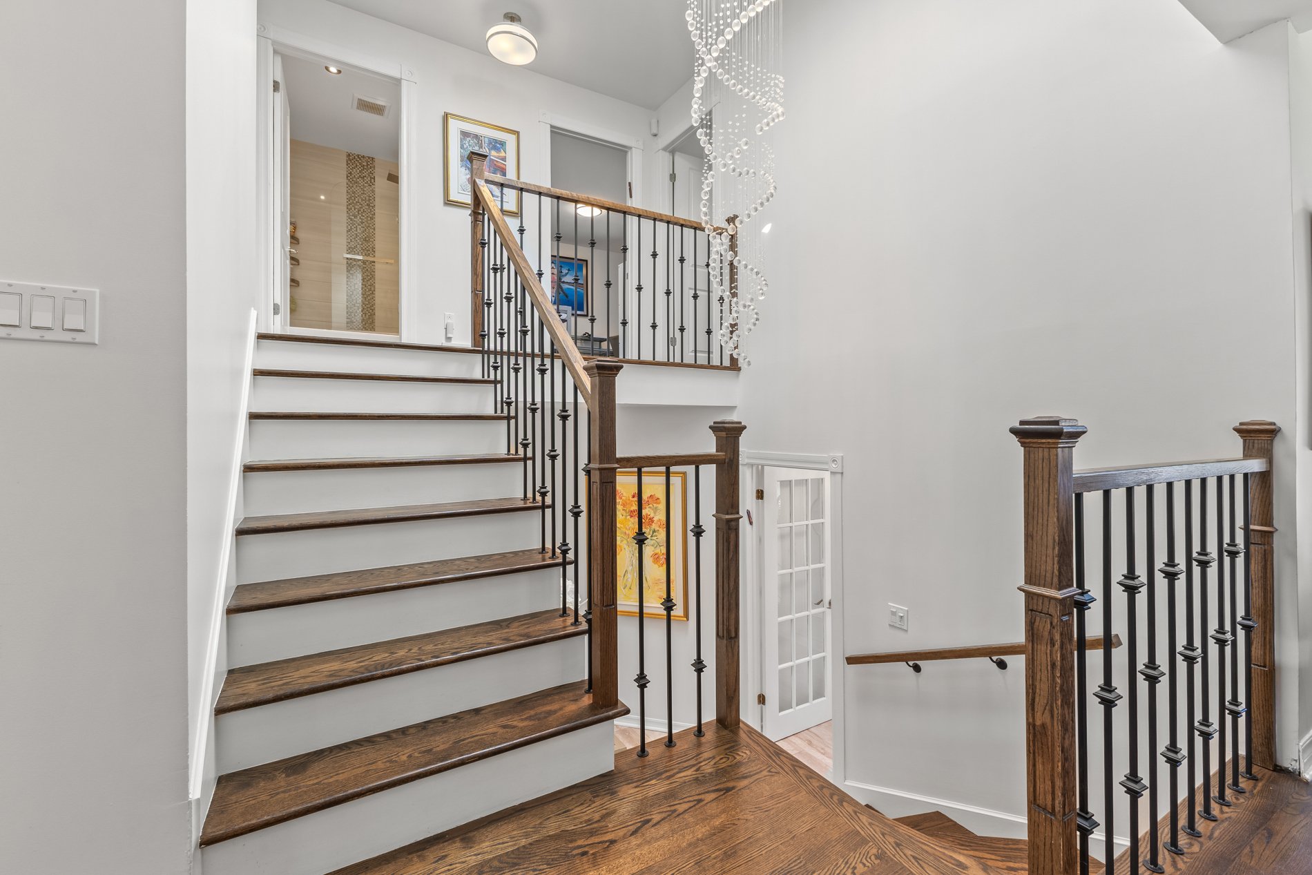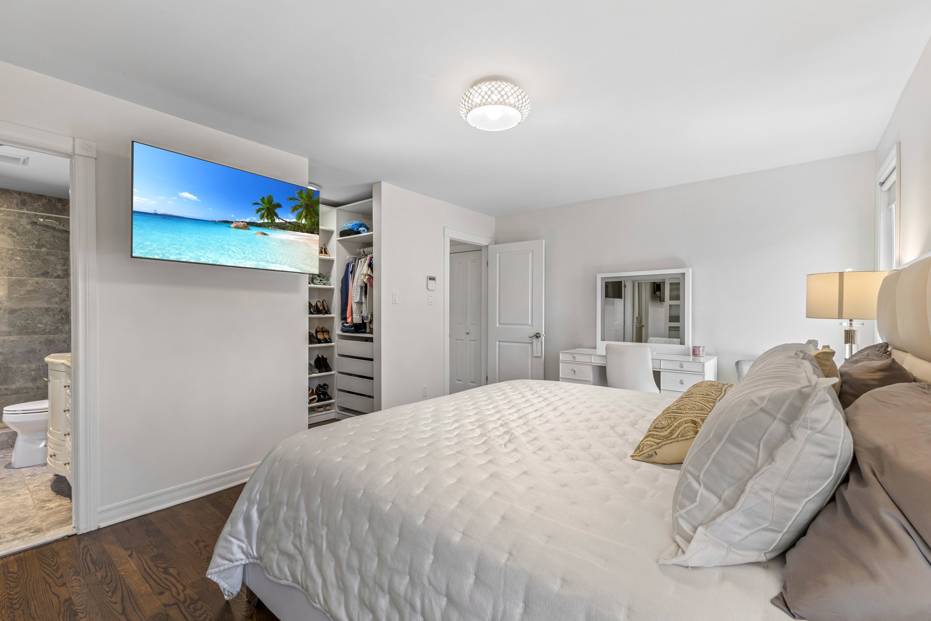 Entrez dans cette maison magnifiquement rénovée avec beaucoup de rangement. De hauts plafonds à double hauteur, un lustre en cristal étincelant et un puits de lumière créent une première impression élégante. Accès direct au garage extra large avec plancher en époxy, idéal pour de rangement d'équipement ou atelier. La salle familiale s'ouvre sur une grande cour arrière privée grâce à de nouvelles portes-patio. Partout dans la maison: planchers de bois franc remis à neuf, nouveaux escaliers et rampes élégantes pour une allure intemporelle.