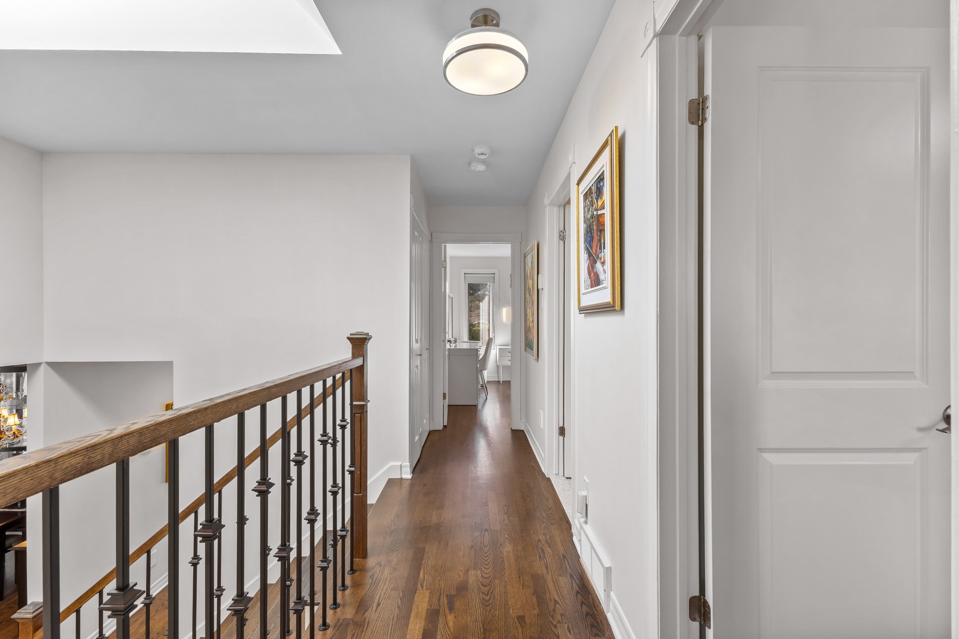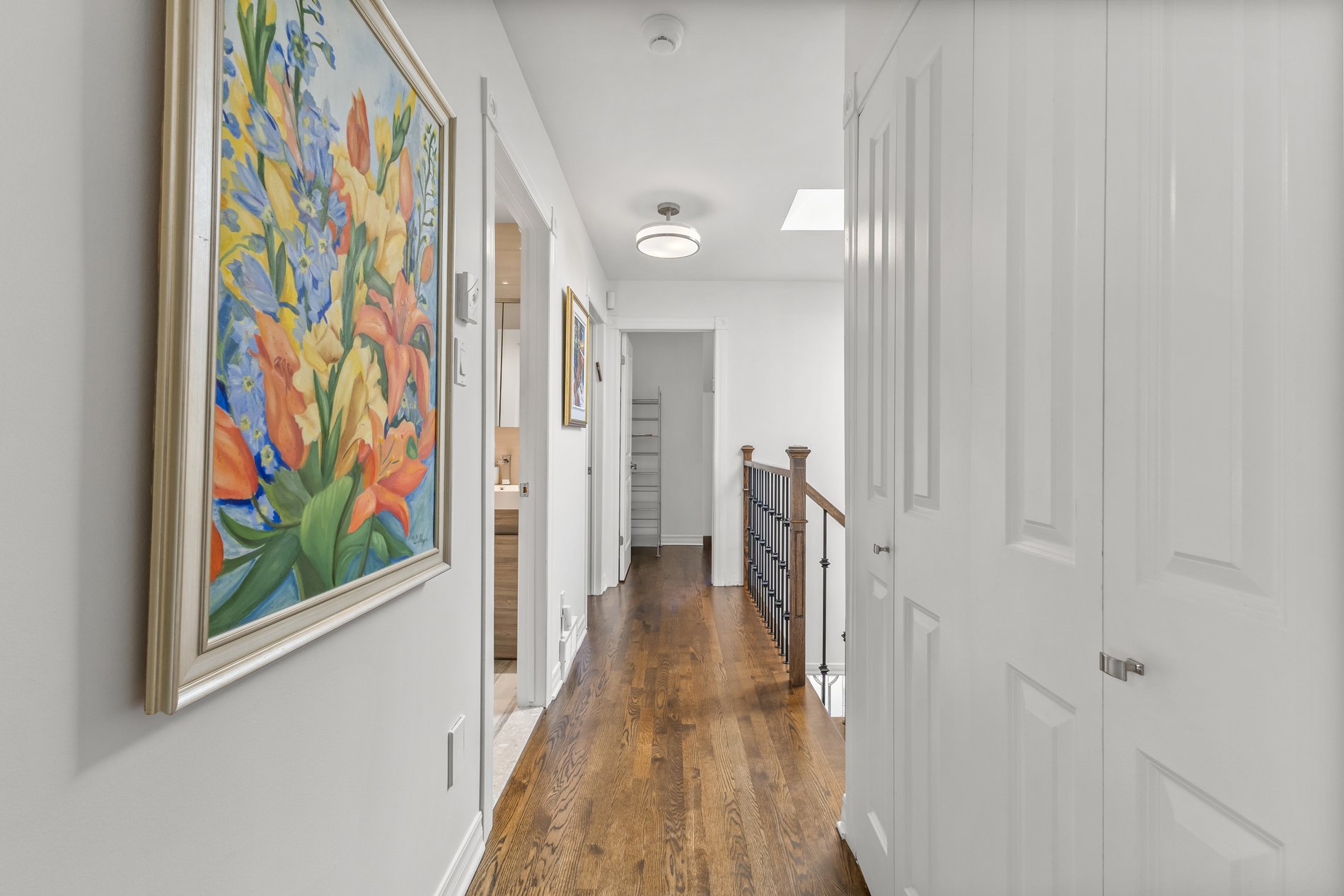 La suite principale serene comprend un walk-in, des rangements intégrés et une salle de bains luxueuse avec douche spacieuse, planchers chauffants et finitions raffinées. Deux autres chambres sont parfaites pour la famille ou un bureau. Une salle de bains familiale entièrement rénovée avec bain complète l'étage.