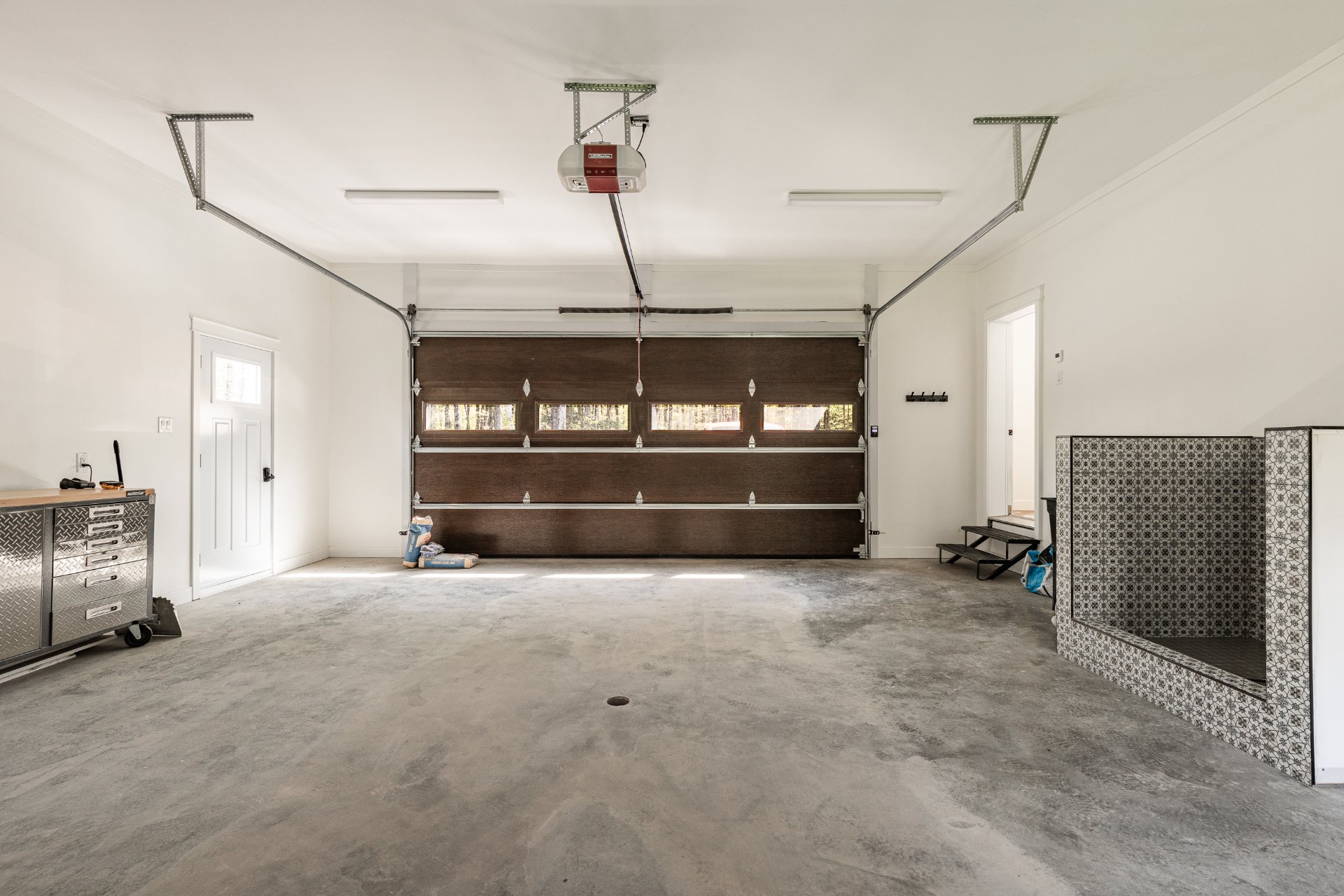 Un garage simple intégré, ainsi qu'un garage double chauffé avec porte latérale et douche pour chien, ajoutent aux fonctionnalités de la propriété.