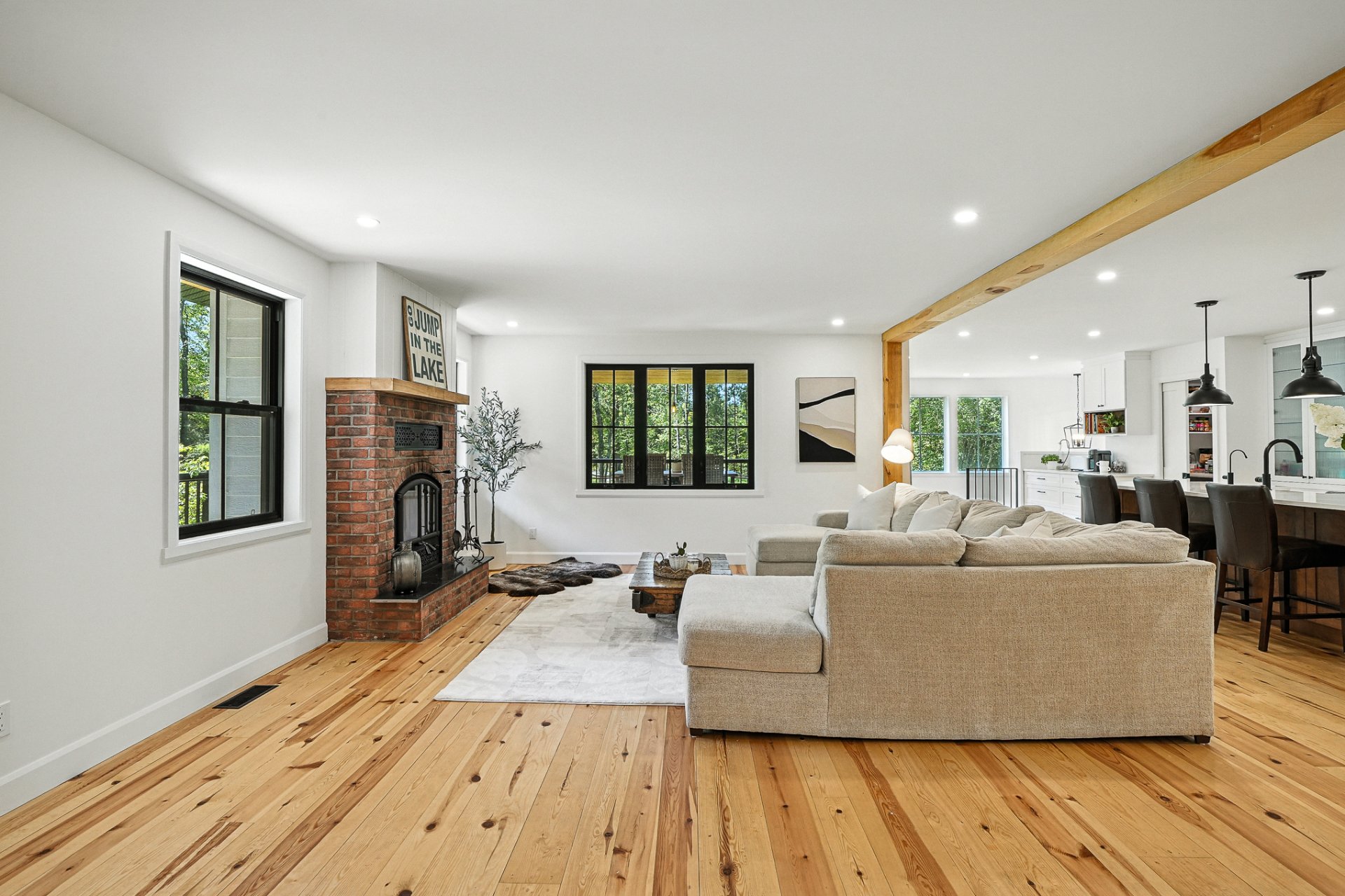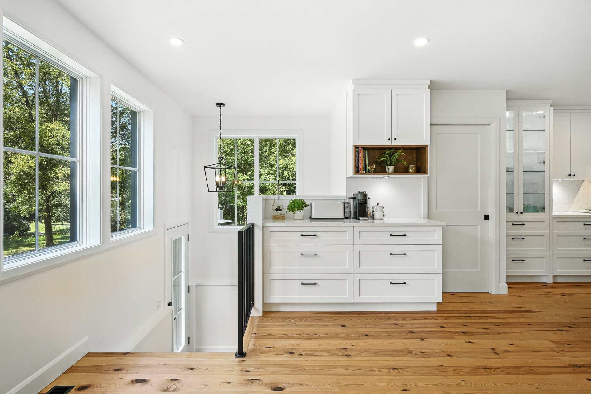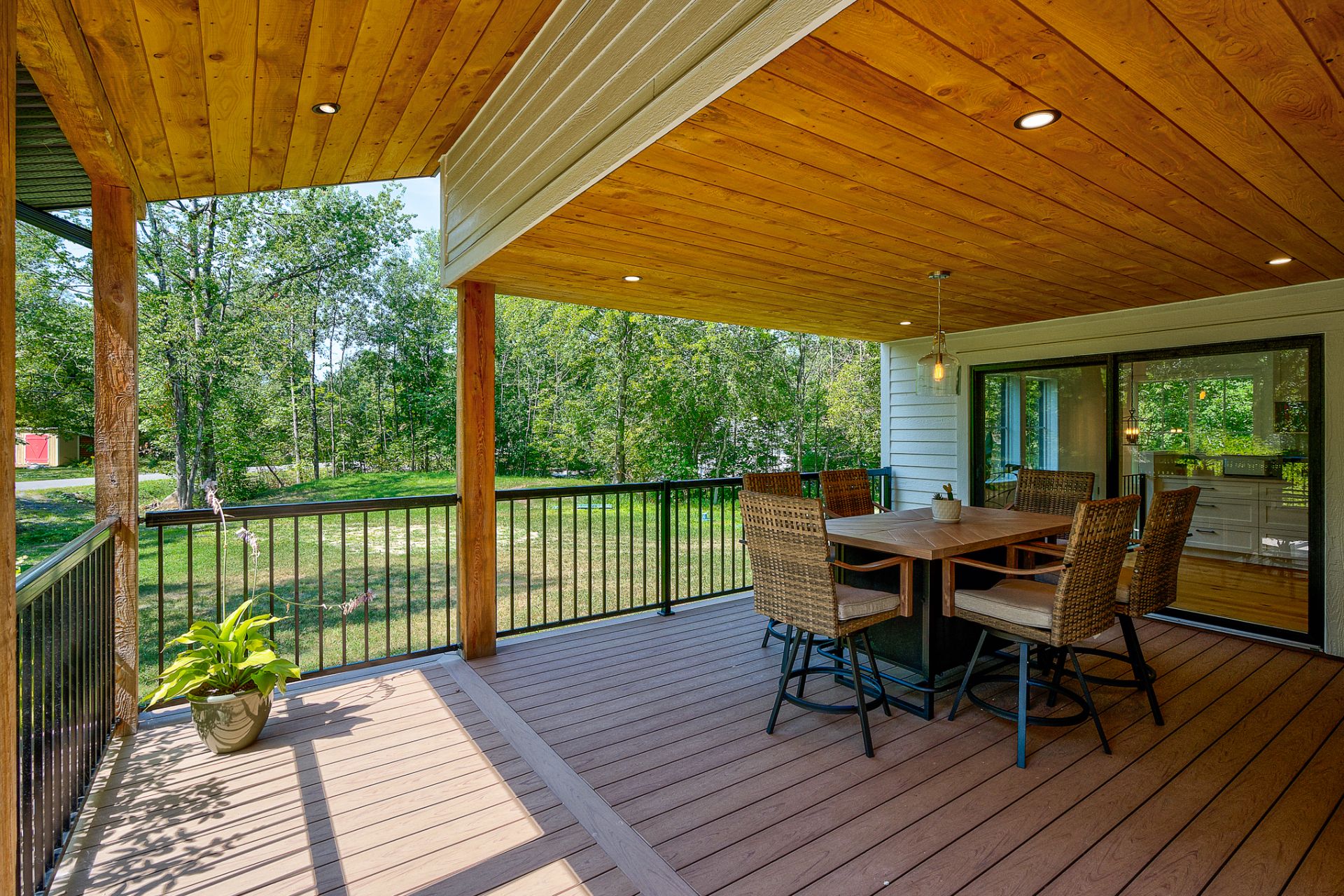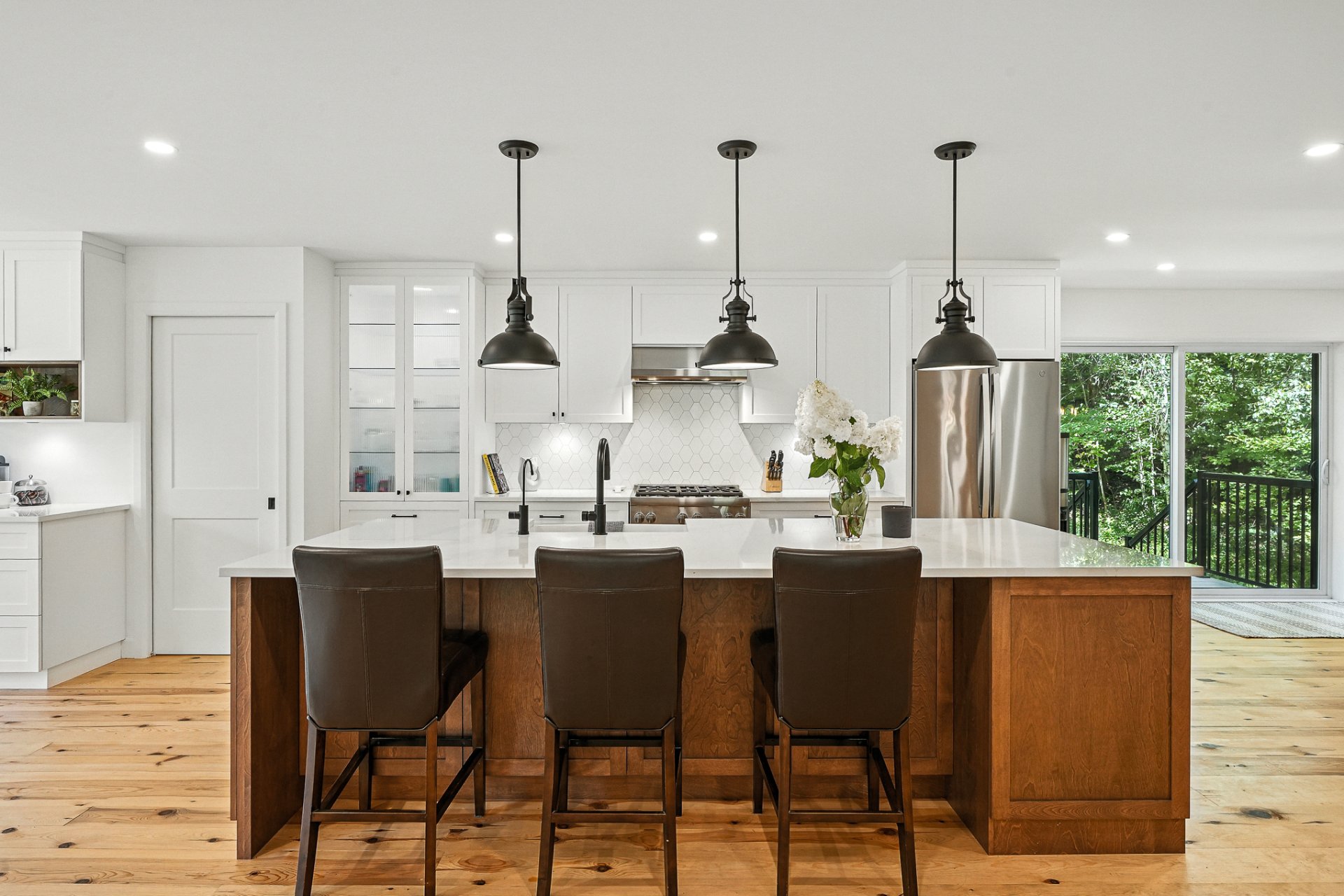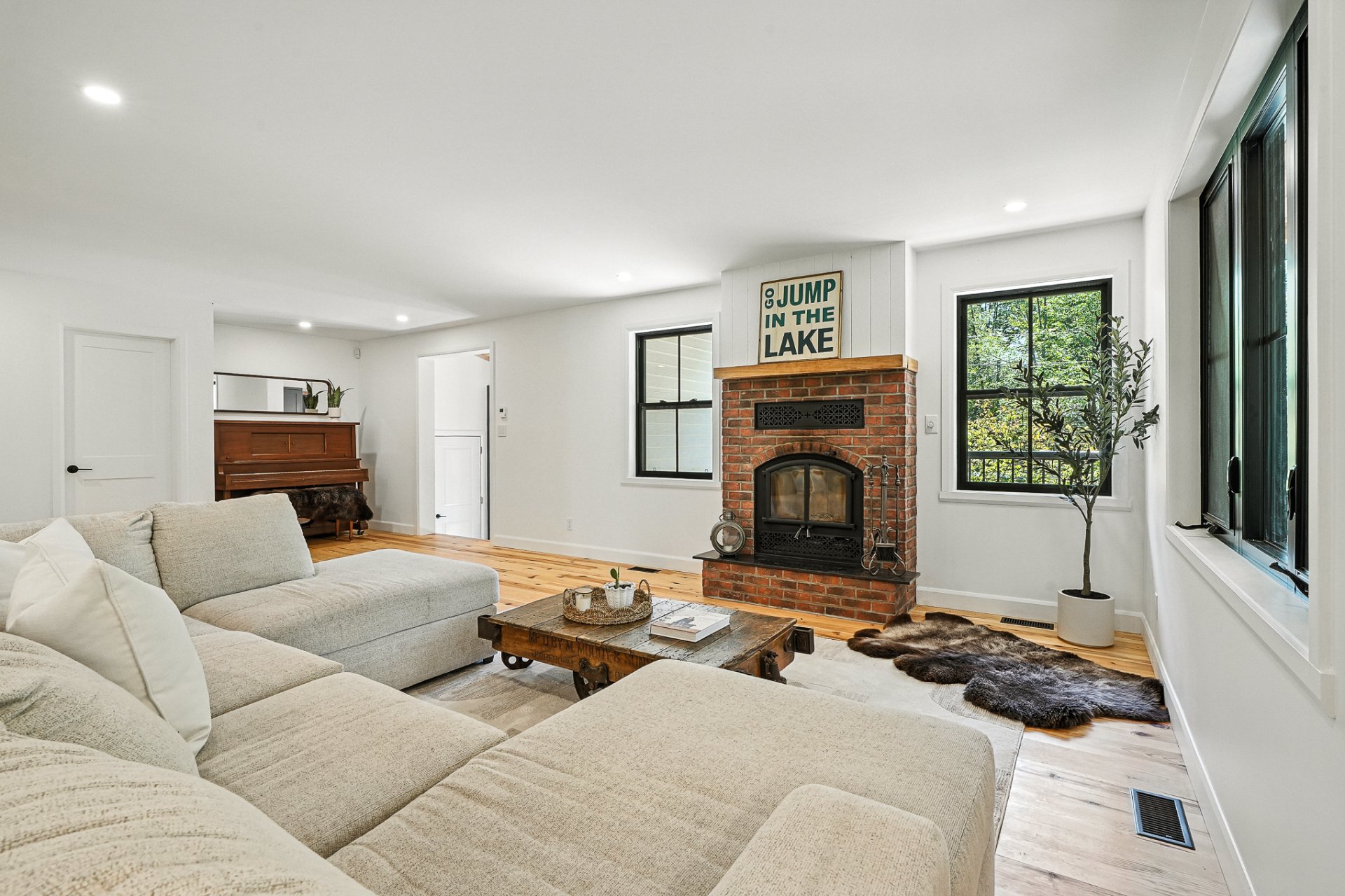 Le rez-de-chaussée s'organise autour d'un vaste espace de vie agrémenté d'un foyer au bois et de hauts plafonds (9 pieds), créant une de vie volumineuse mais qui demeure chaleureuse. La cuisine se distingue par un imposant ¸îlot central, de nombreuses armoires, de jolis comptoirs en quartz et un garde-manger style walk-in dissimulé. Elle est agrémentée d'électroménagers haut de gamme, ce qui plaira aux amoureux de gastronomie.