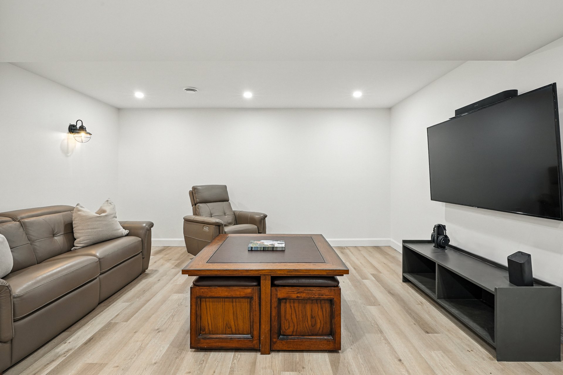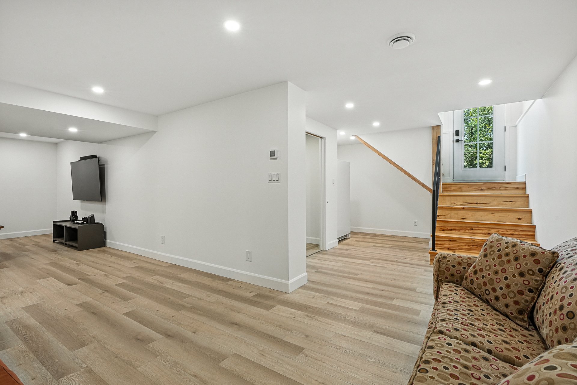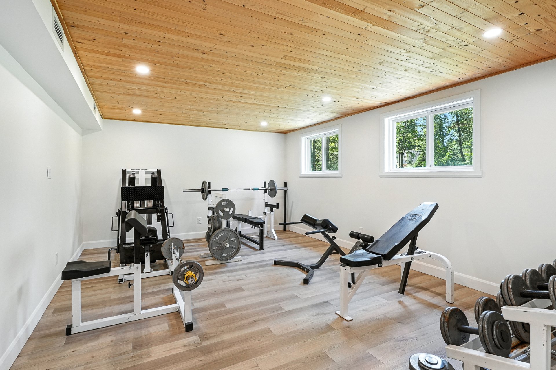 Le sous-sol, entièrement fini et doté d'une sortie extérieure, propose une salle familiale, un espace gym et une 3ème salle de bain complète.