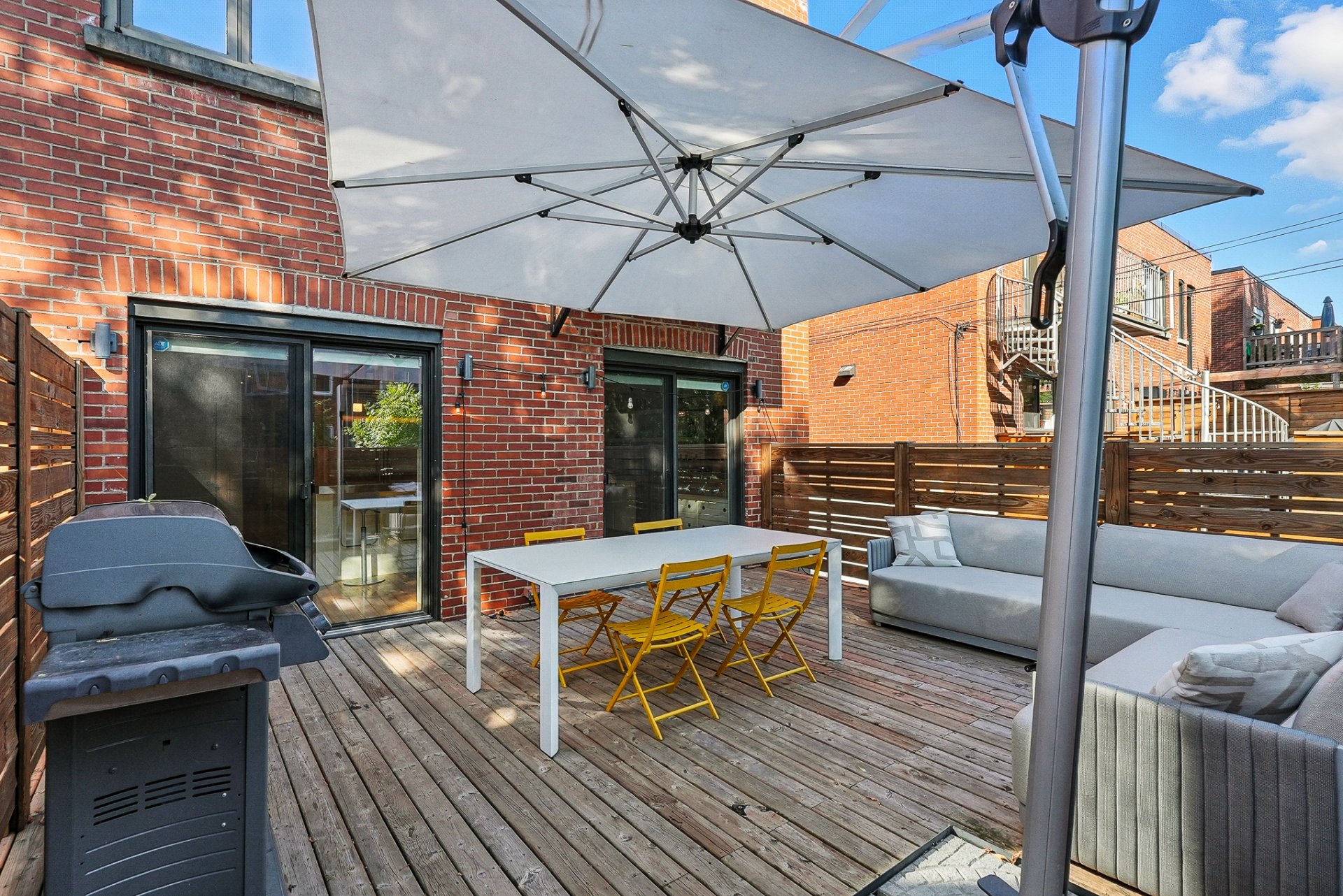 À quelques pas du Village Monkland, cette superbe propriété a tout pour plaire : de vaste espaces de vie, une cuisine gastronomique baignée de lumière naturelle; des portes patios menant à une grande terrasse en bois, qui devient une véritable extension de la pièce. 4 chambres à l'étage, dont la chambre principale qui dispose d'une salle de bain privée, un dressing « walk-in » et un balcon. Le sous-sol, entièrement fini offre de 2 pièces supplémentaires pouvant servir de chambre, de salle familiale ou cinéma maison. Une sortie extérieure vers la jolie cour urbaine et possibilité de stationner au bout de l'allée partagée ou sous la terrasse.