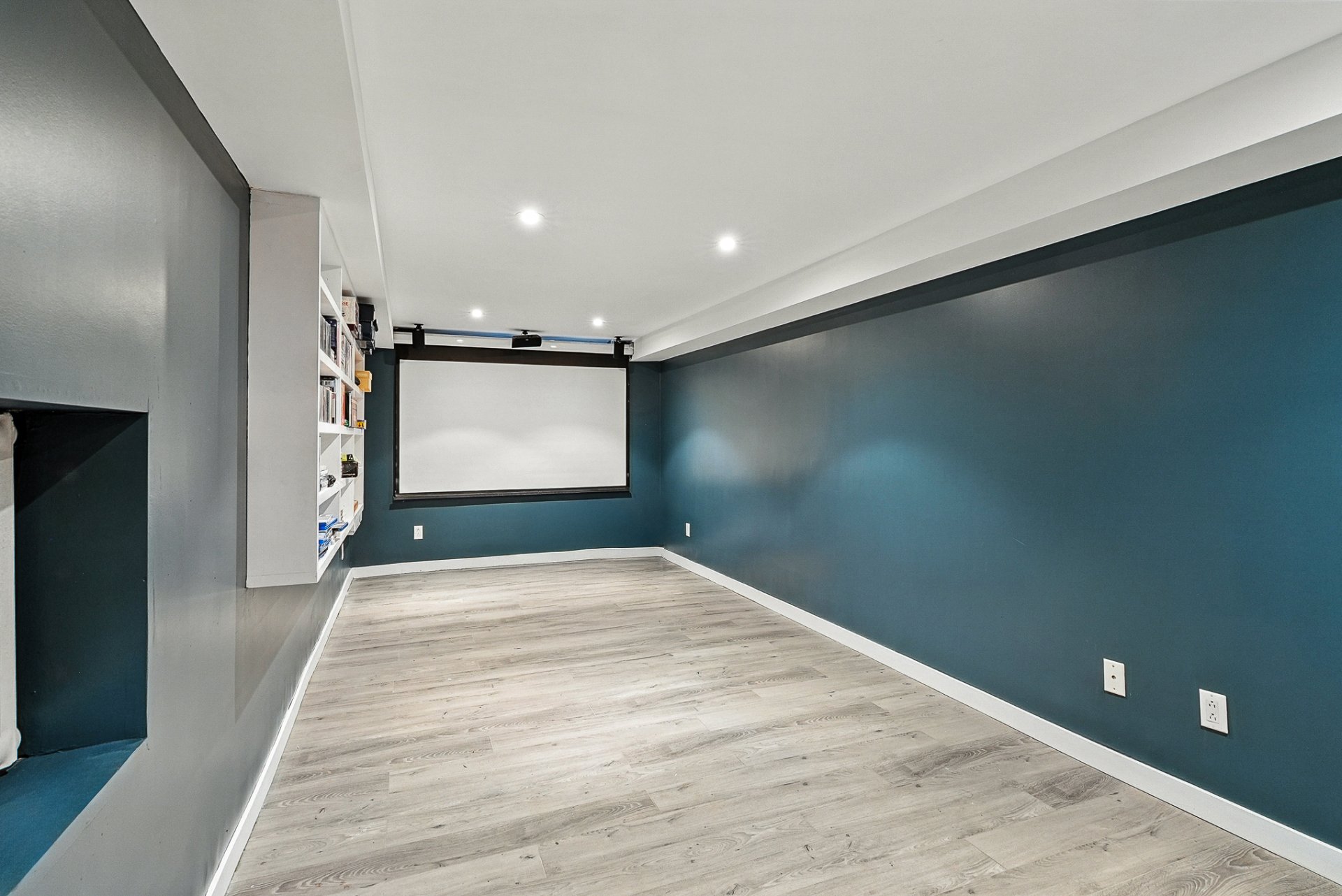 - Luminaire Lambert & Fils salle à manger, projecteur dans la salle de cinéma maison, 2 bibliothèques et oeuvres d'art