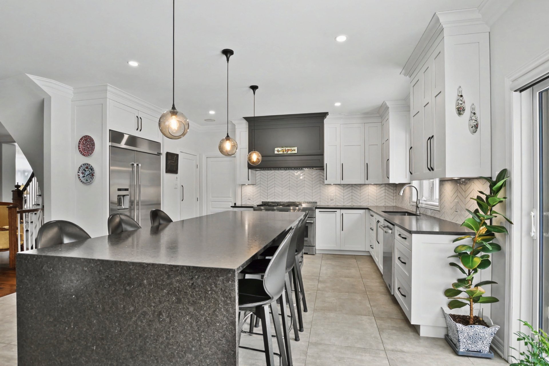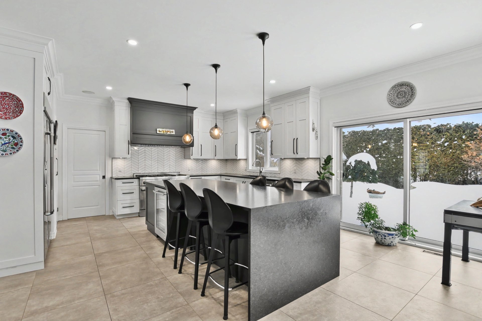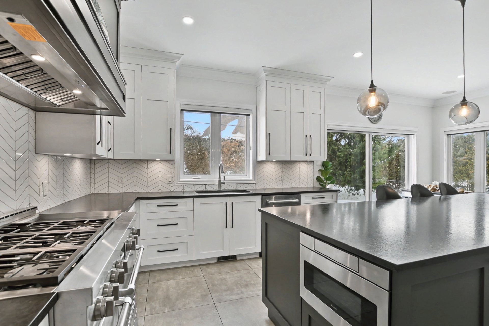 Cuisine, îlot, comptoirs de granite et céramique (2018).