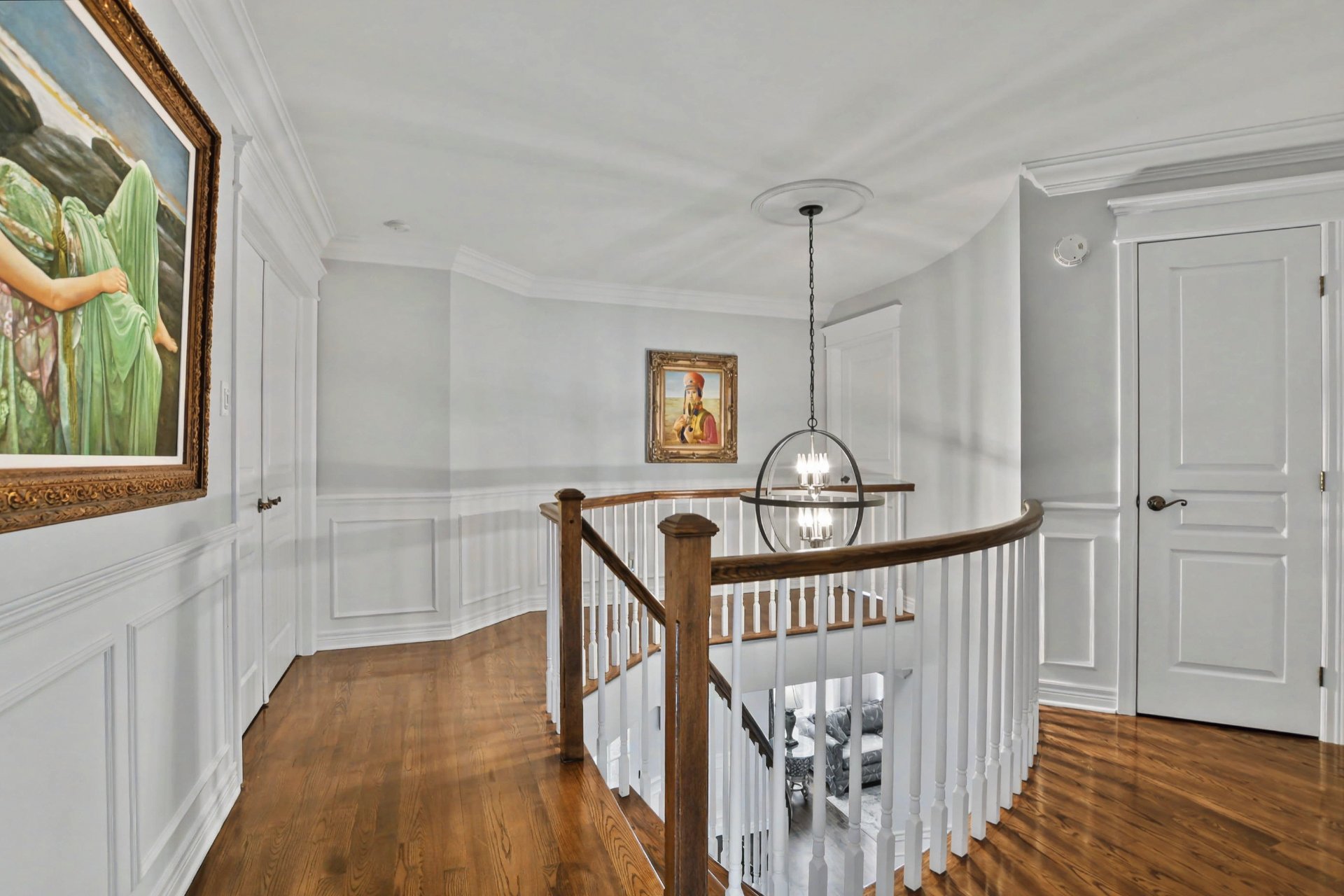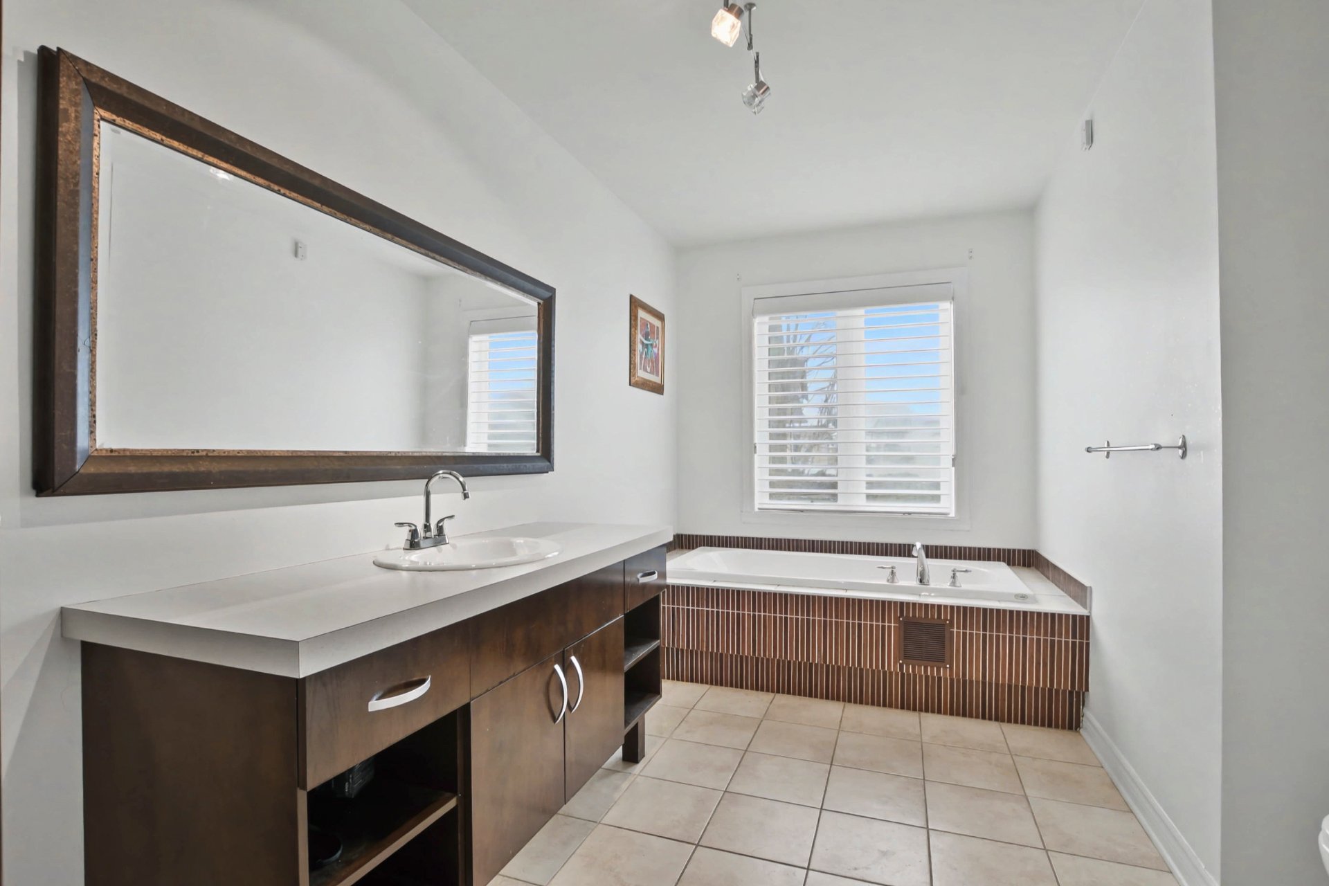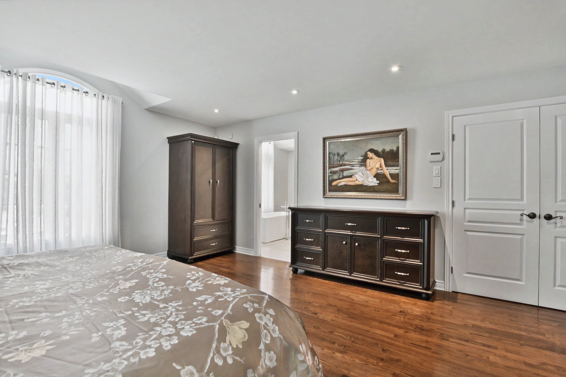 Quatre chambres à coucher. Suite principale remarquable avec deux walk-in distincts et salle de bain attenante rénovée en 2021 avec plancher chauffant et finition contemporaine. Deux autres chambres disposent également d'un walk-in. Deuxième salle de bain complète à l'étage. Dimensions généreuses, idéales pour la vie familiale et le télétravail.