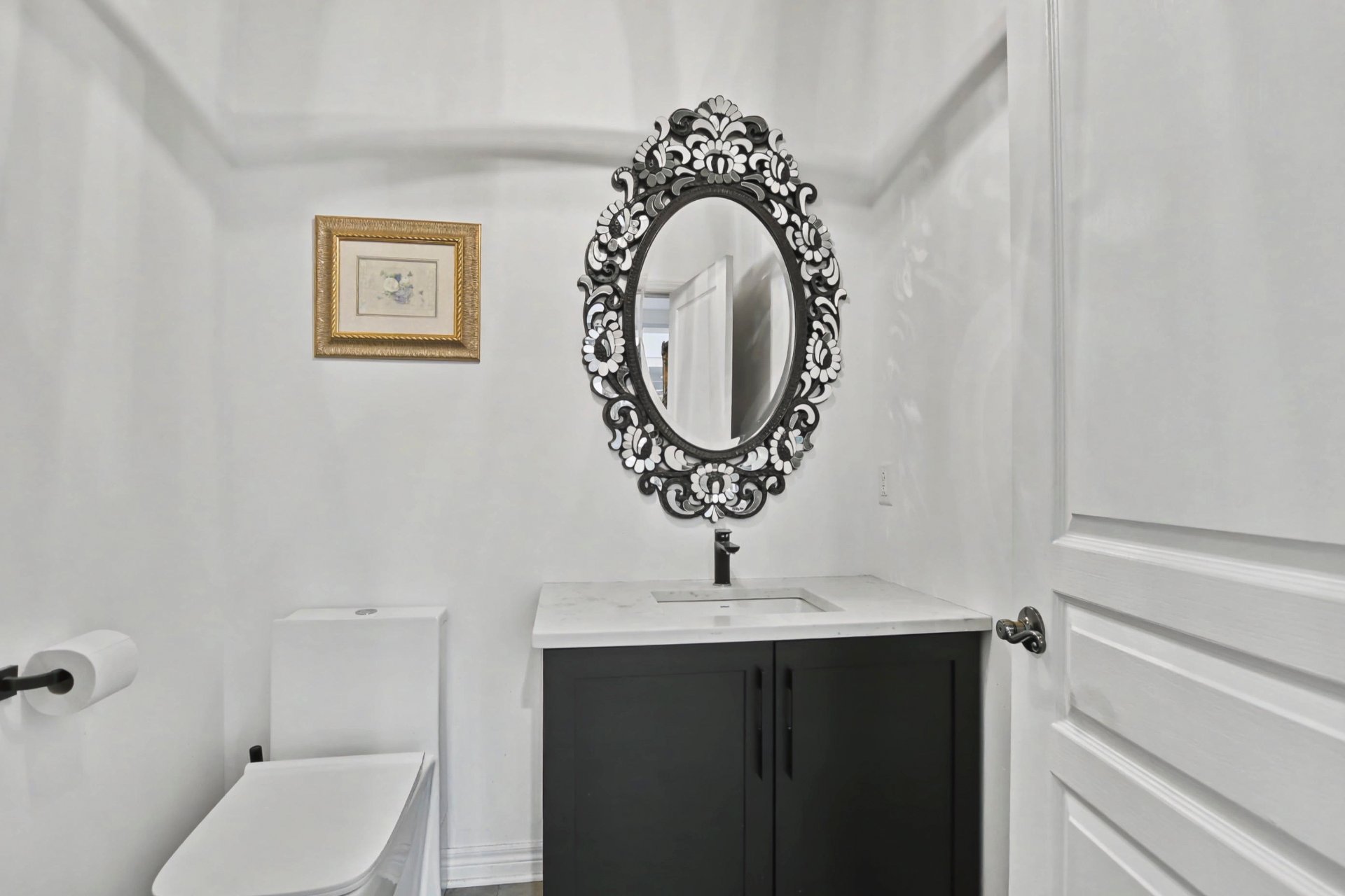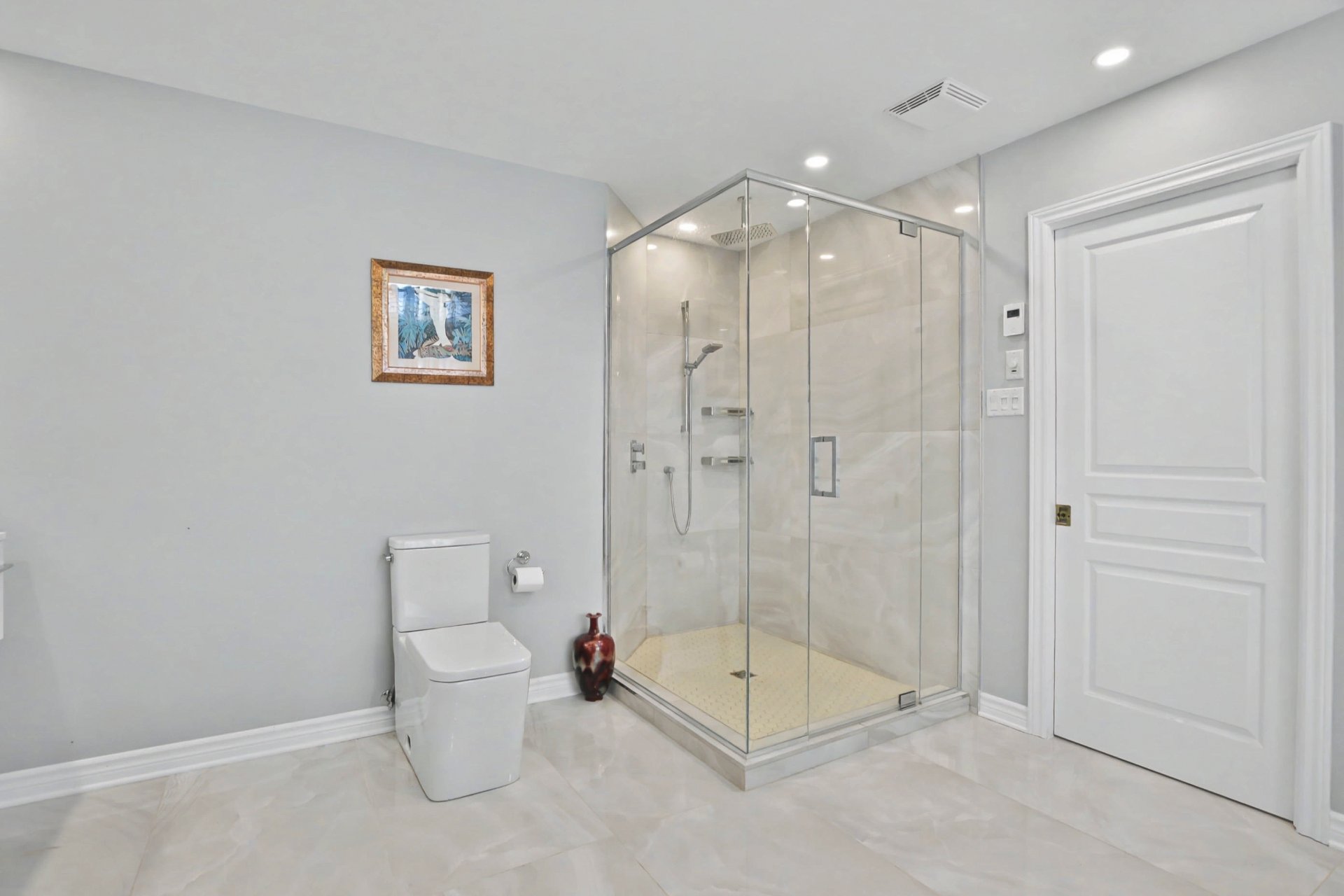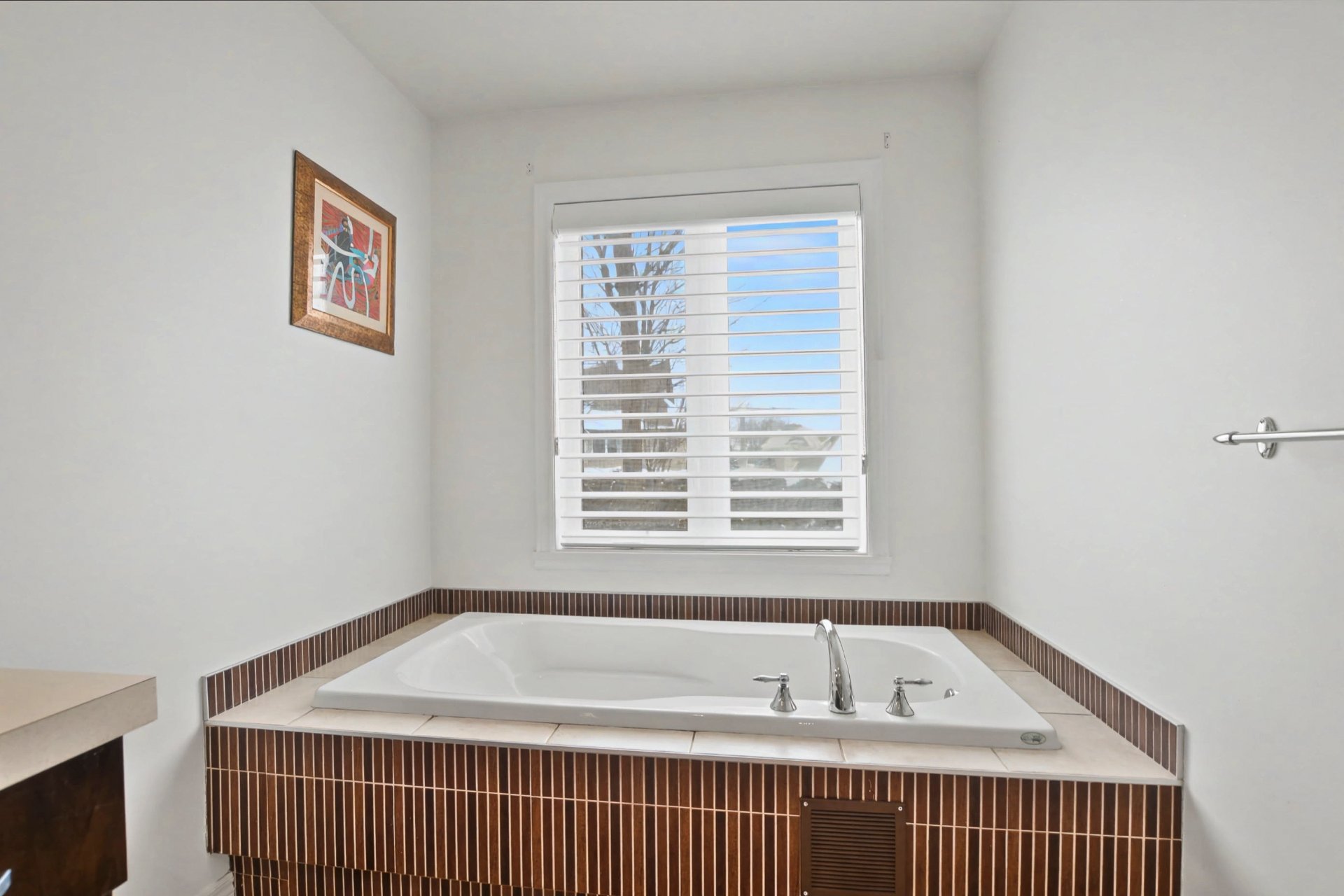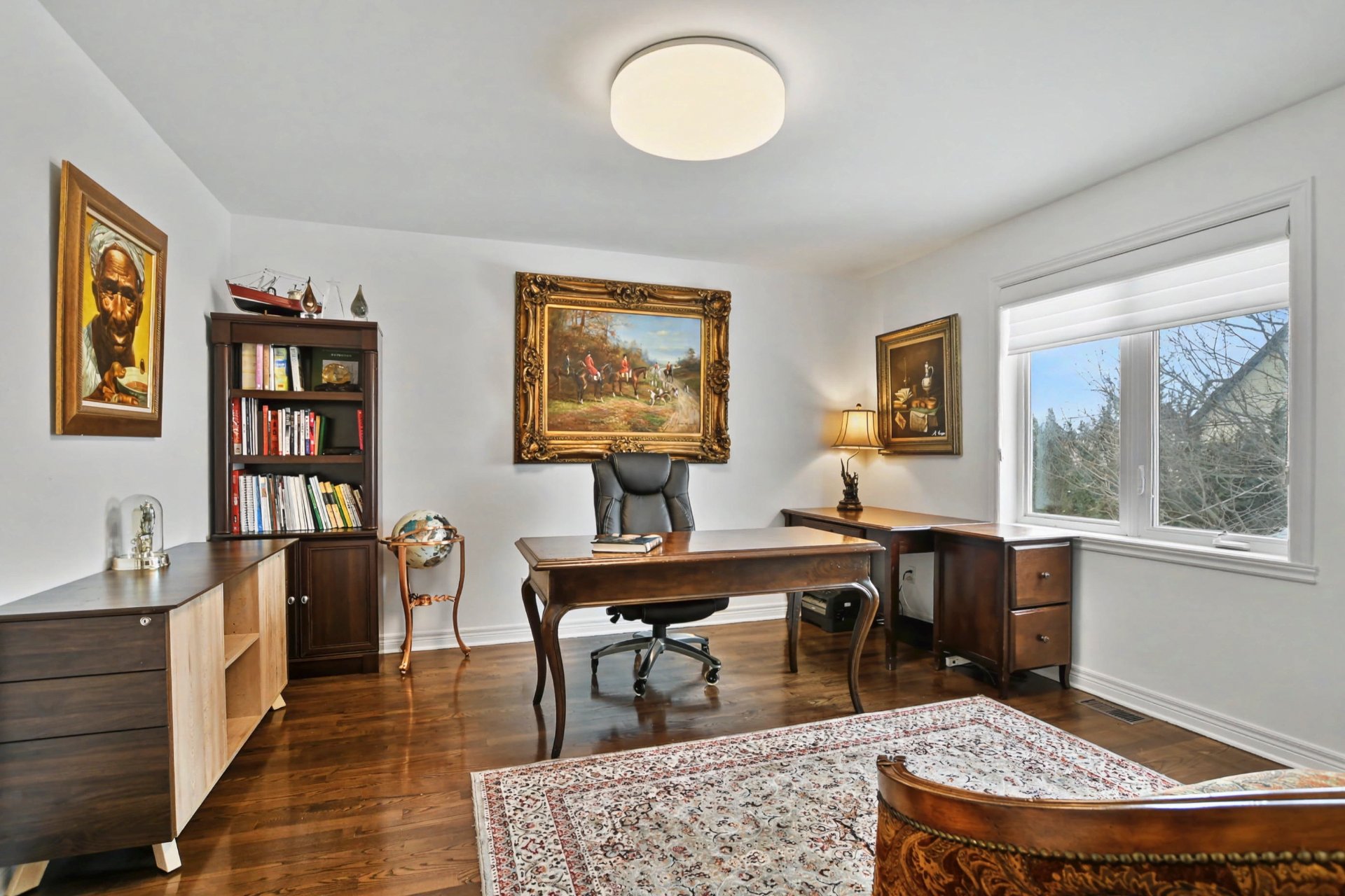 Quatre chambres à coucher. Suite principale remarquable avec deux walk-in distincts et salle de bain attenante rénovée en 2021 avec plancher chauffant et finition contemporaine. Deux autres chambres disposent également d'un walk-in. Deuxième salle de bain complète à l'étage. Dimensions généreuses, idéales pour la vie familiale et le télétravail.