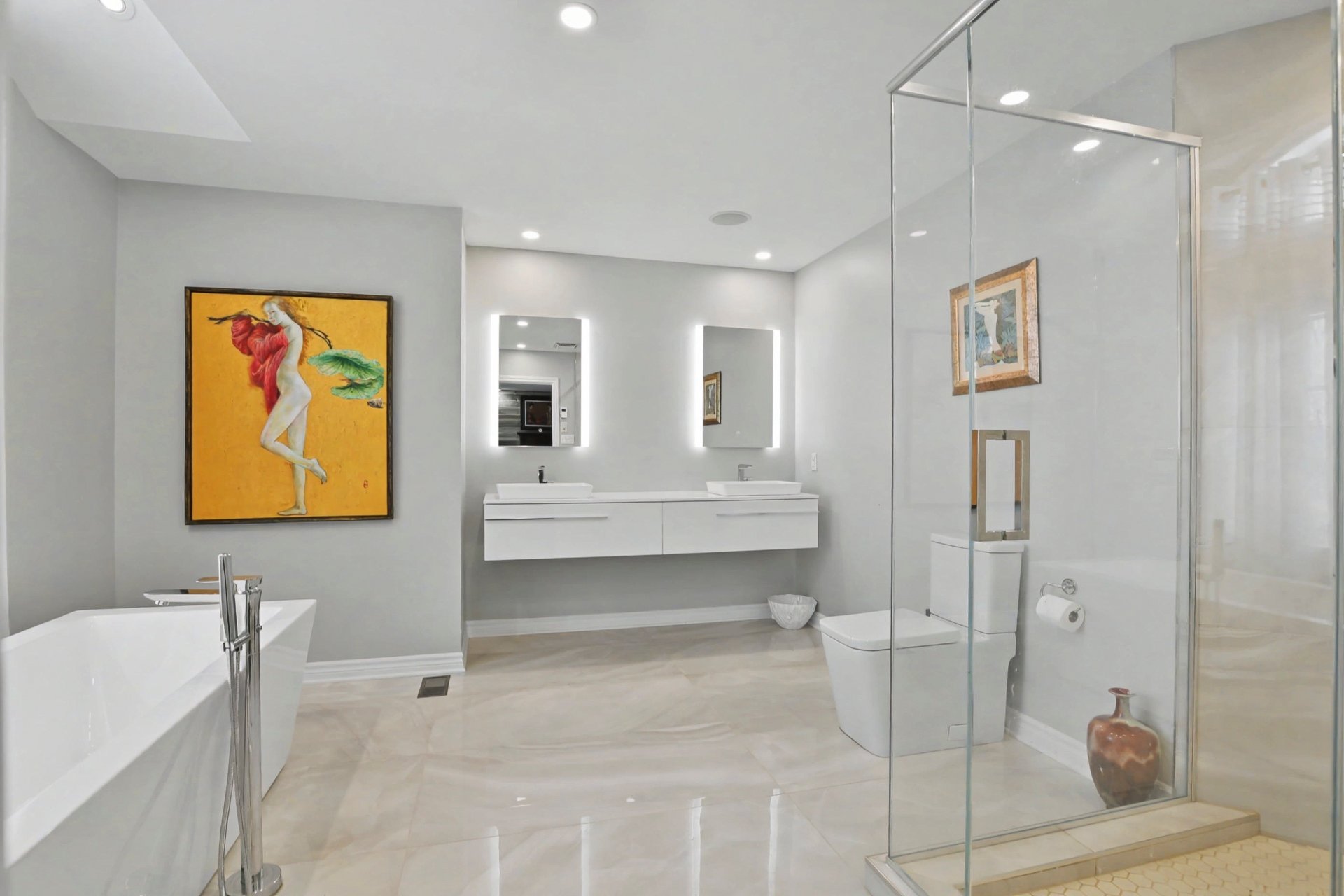 Salle de bain des maîtres avec plancher chauffant (2021).