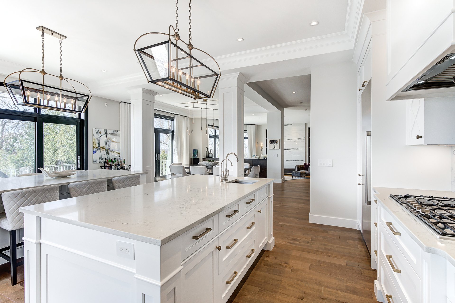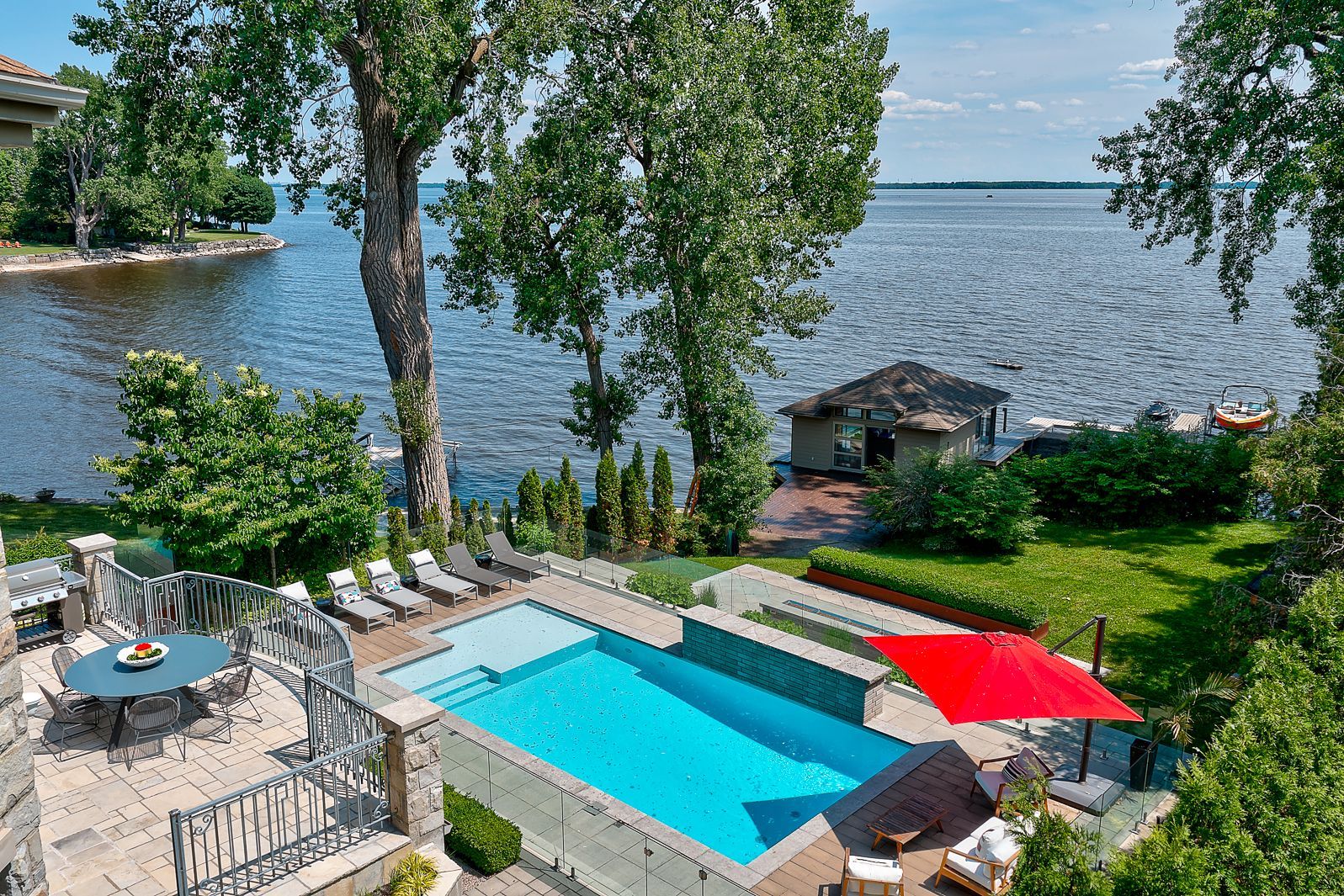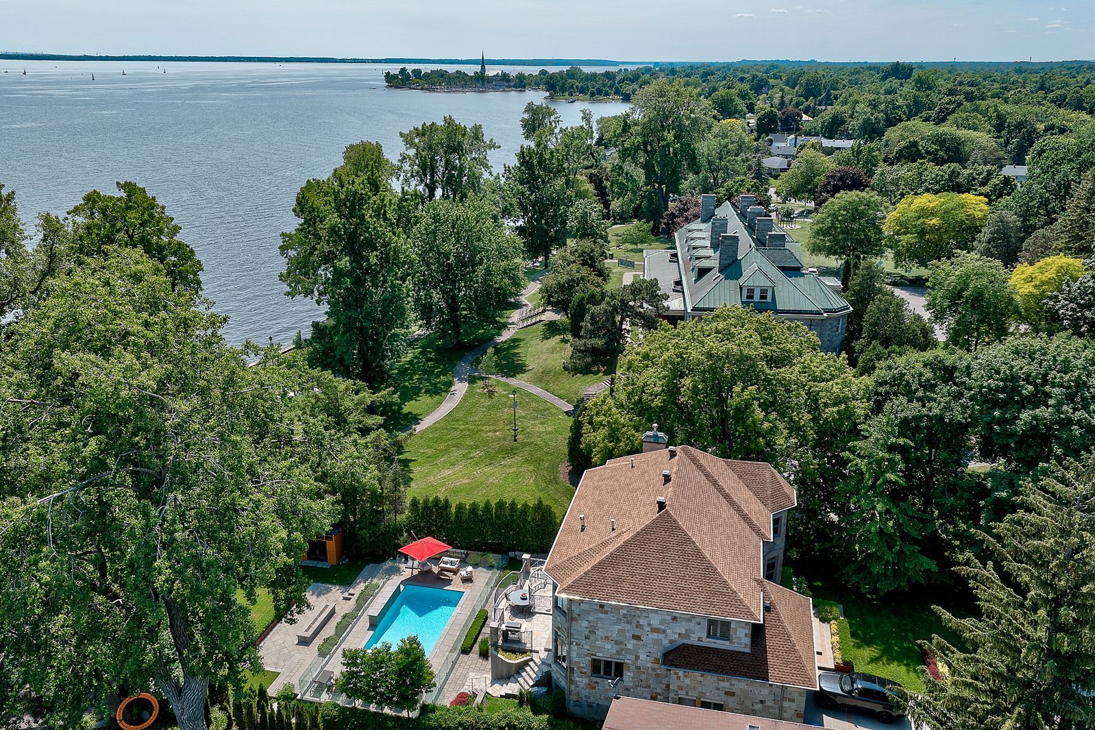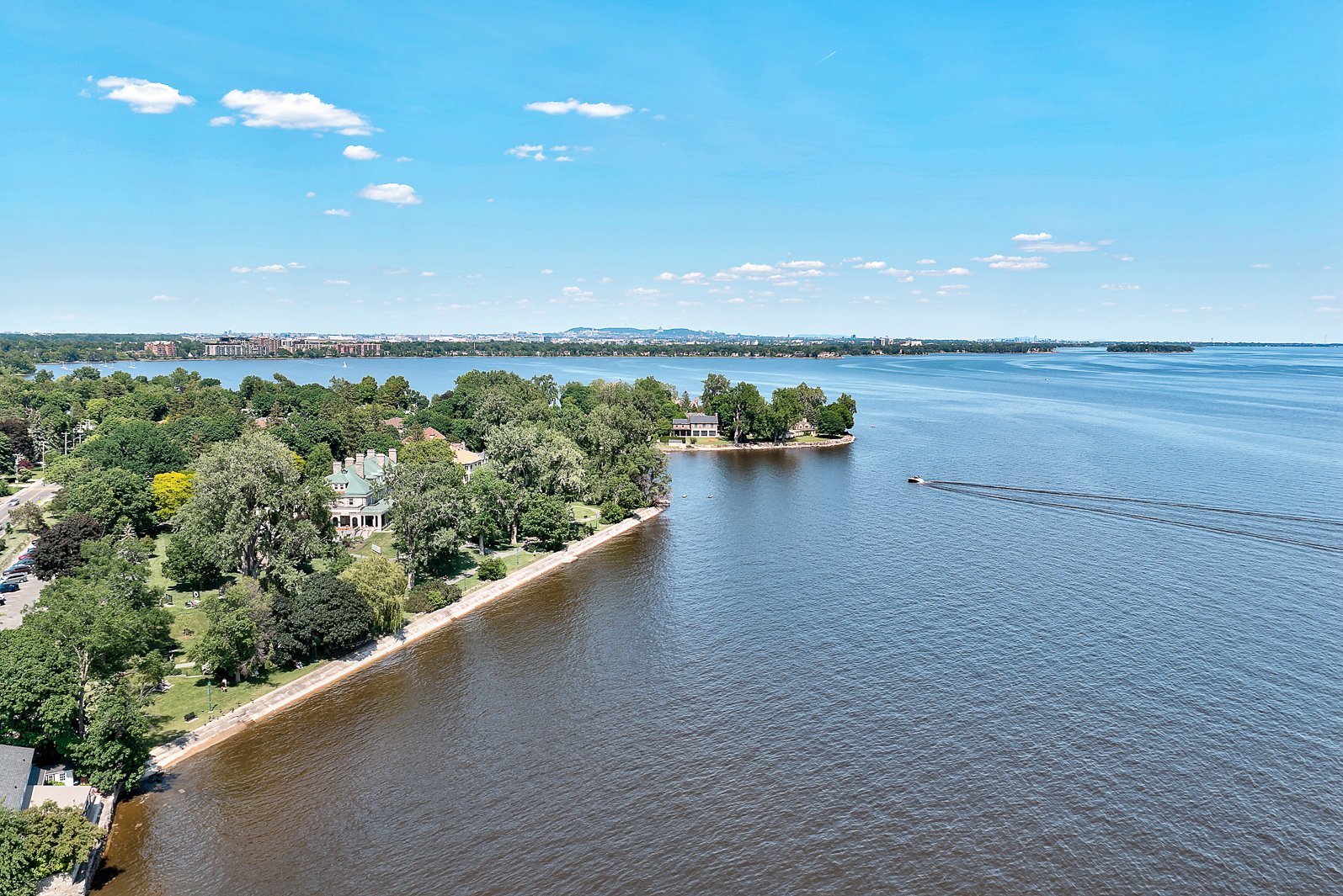 Rares sont les résidences qui dégagent une telle prestance silencieuse. Située à côté du Centre culturel Stewart Hall et nichée dans une baie protégée exceptionnelle, cette propriété entièrement rénovée offre des vues dégagées et ininterrompues sur le lac Saint-Louis, captées à travers de vastes fenêtres pleine hauteur qui effacent la frontière entre l'architecture et la nature. En bordure de l'eau, un pavillon pour bateaux à quai, le seul encore autorisé de ce type sur le lac, constitue un privilège rare et durable, élevant cette propriété dans une classe à part.