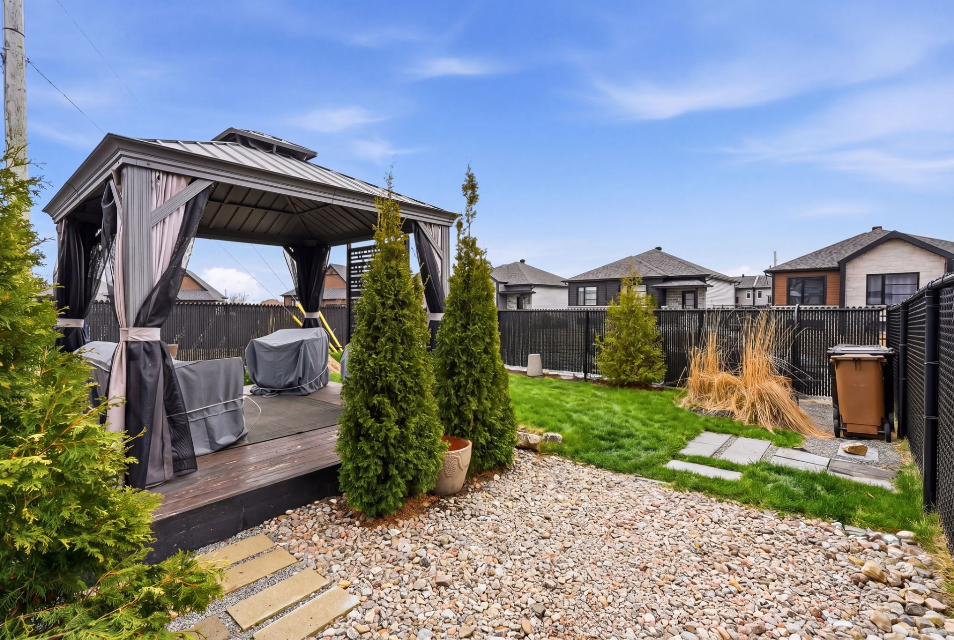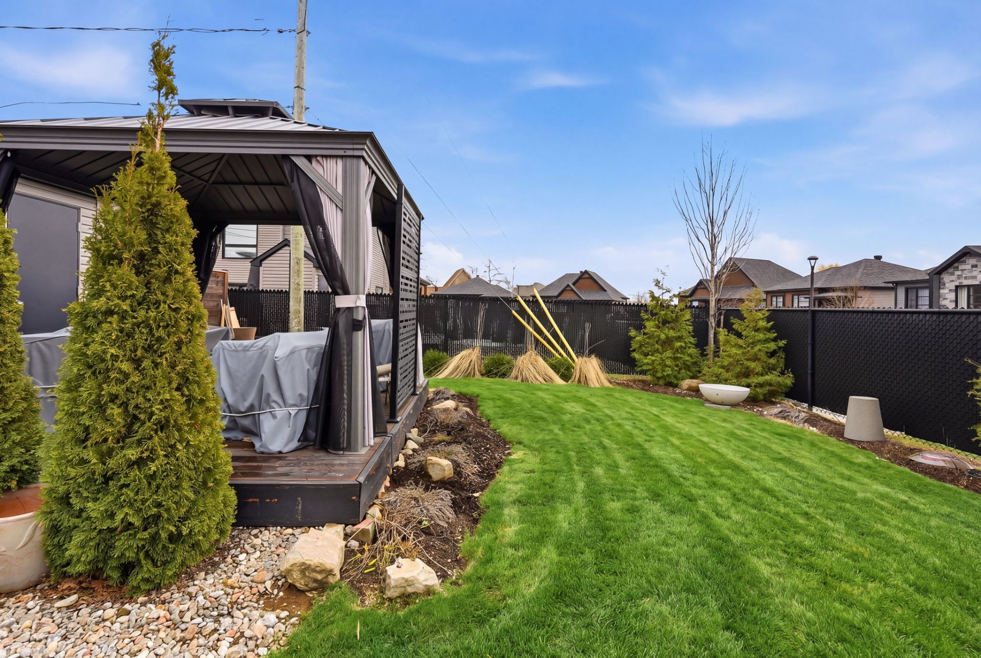- Grande cour privée clôturée avec un magnifique pavillon et un cabanon.