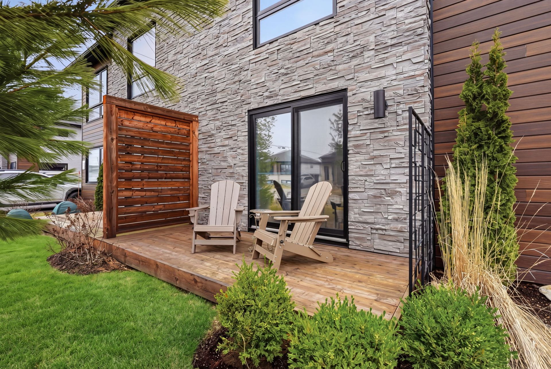 - Patio tranquille sur le côté de la maison.