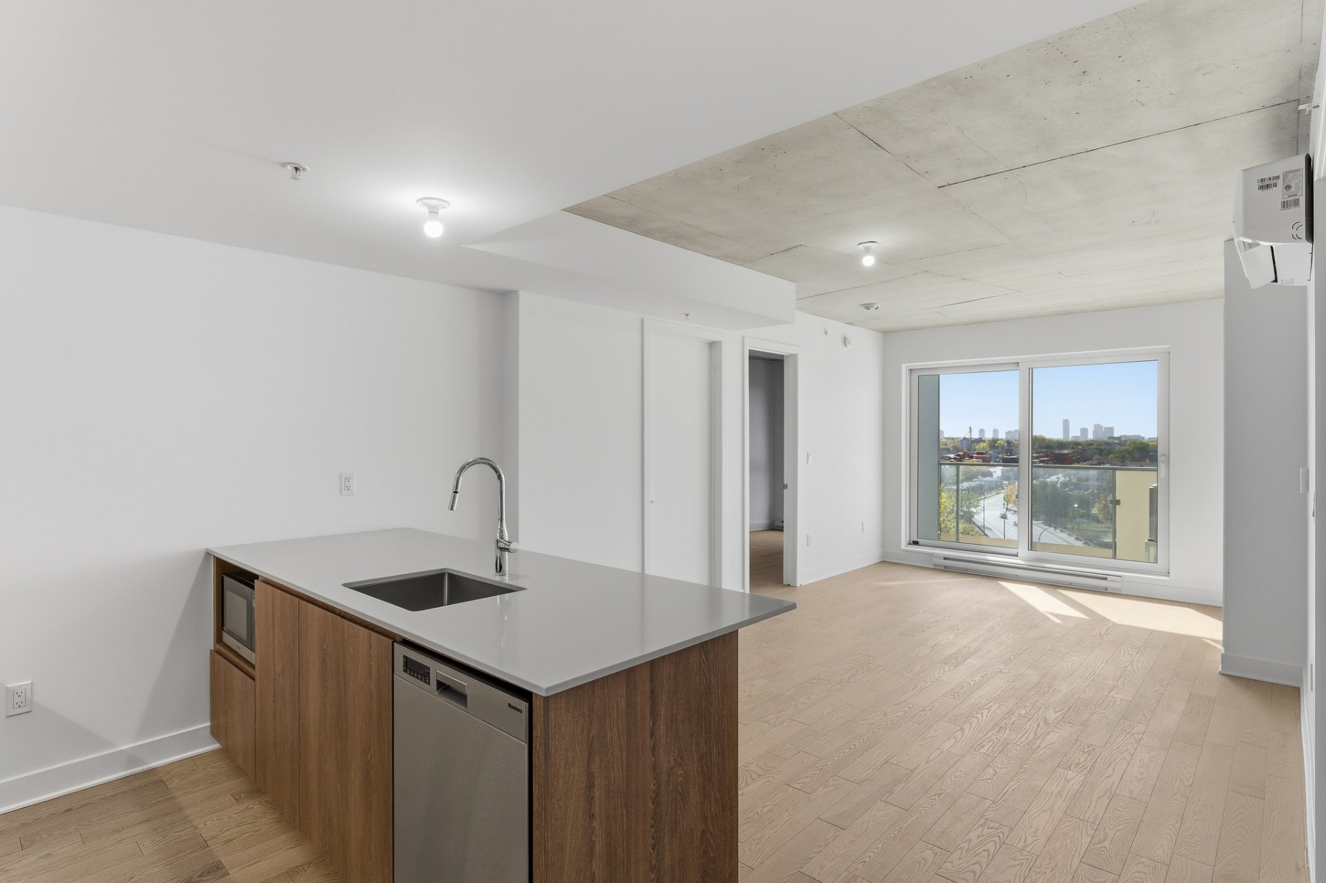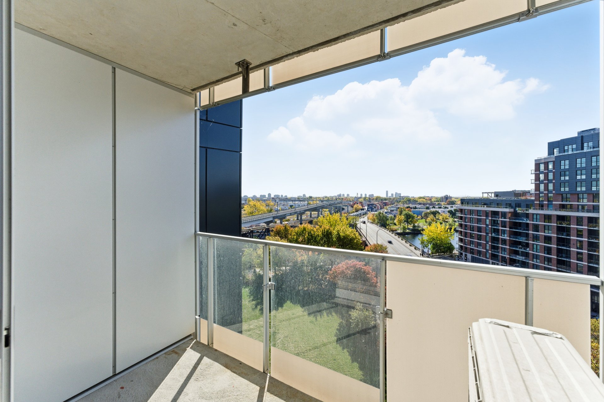 L'espace de vie à aire ouverte, baigné de lumière naturelle grâce aux immenses fenêtres, crée une ambiance moderne et raffinée. Le balcon privé vous permet de profiter pleinement du panorama urbain, entre le centre-ville et le canal de Lachine.