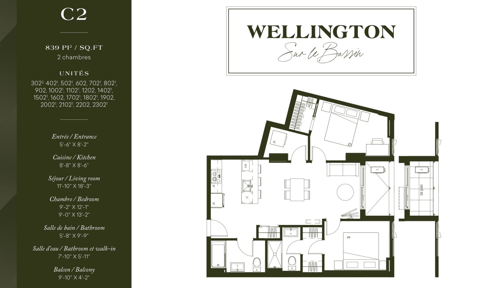 PLUSIEURS MODÈLES DE CONDOS SONT DISPONIBLES selon différents budgets. Prévoir environ 1 heure pour la visite du projet Dans un environnement inspiré d'une élégance discrète et d'un luxe subtil, Wellington sur le Bassin propose des studios, condos 1 à 3 chambres empreints d'un chic feutré. Le projet propose également des aires communes exclusives incluant un centre d'entraînement, une piscine extérieure, une plage de détente avec terrasse aménagée et un chalet urbain. *Le prix affiché inclus les promotions en vigueur pour ce condo et ne peut être jumelé à aucune autre offre ou promotion.