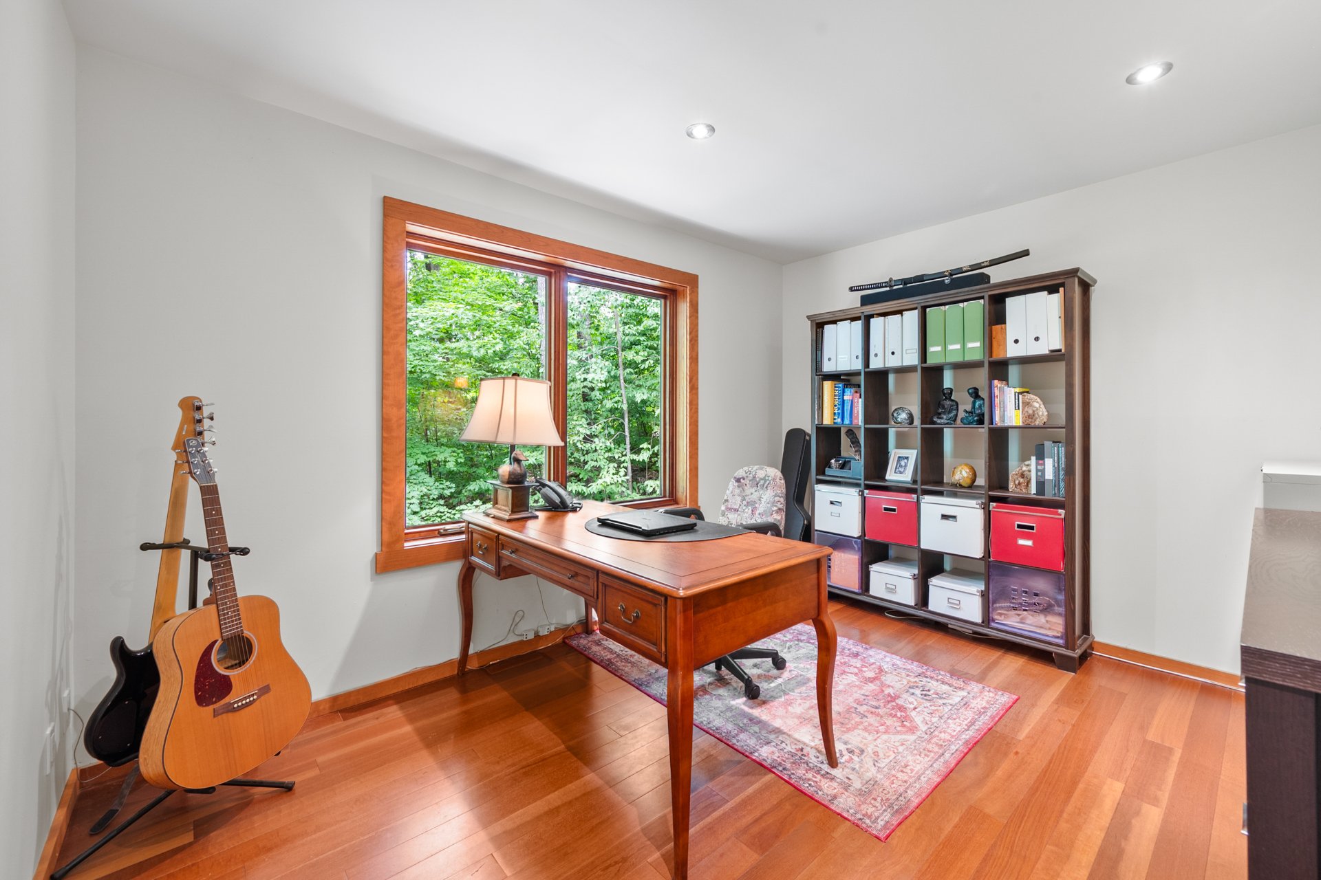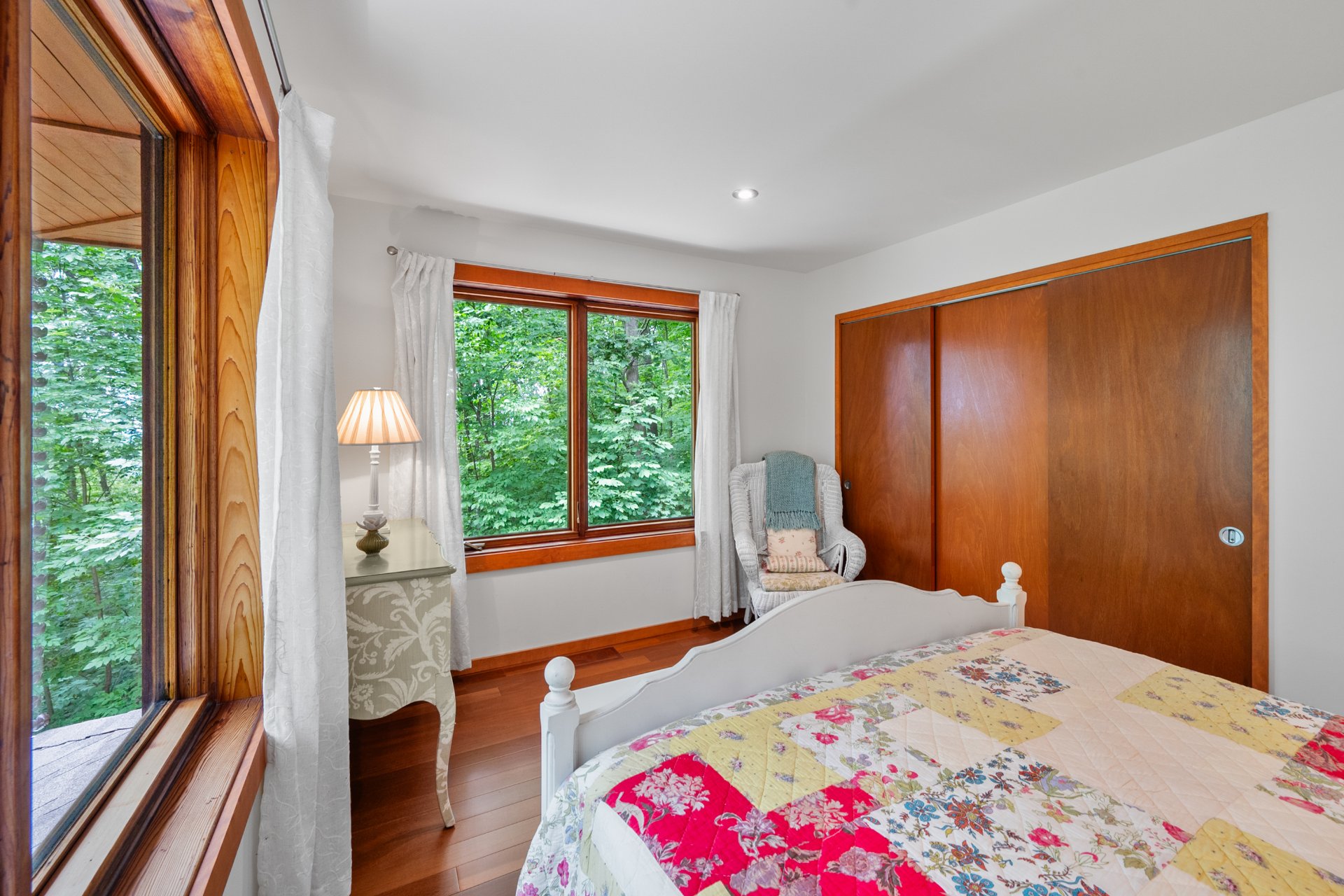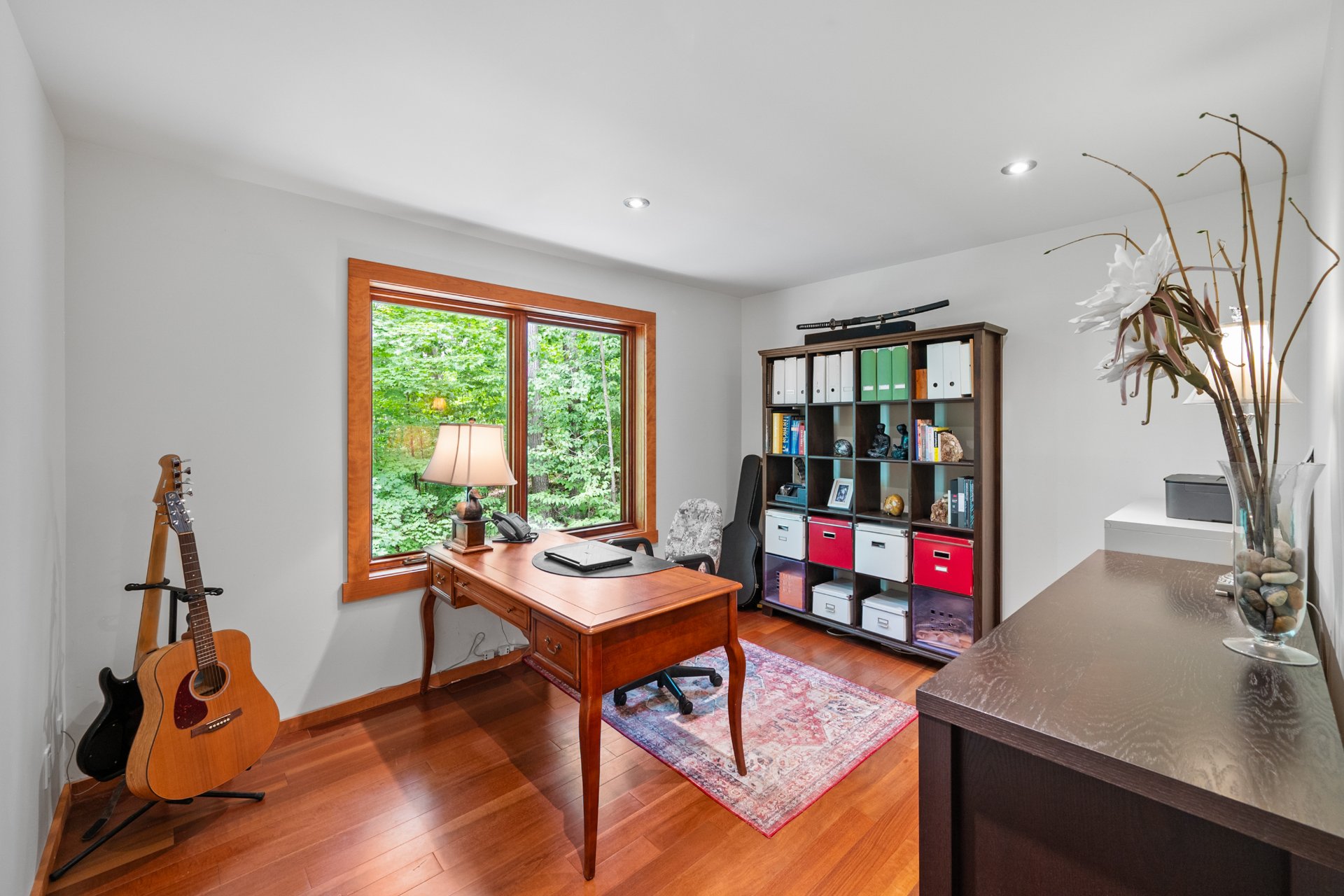 Nichée dans une forêt d'arbres feuillus, cette résidence d'inspiration feng shui, marie avec élégance design contemporain et matériaux nobles. Baignée de lumière naturelle, elle offre plus de 2 400 pi² d'espaces ouverts au style épuré. Planchers en bois exotique, fenêtres en cèdre rouge, armoires de cuisine en bois franc, galerie et grande terrasse : chaque détail reflète un souci de qualité. Aux saisons plus froides, la vue se dégage sur la vallée et sur la montagne de ski de Bromont, offrant chaque jour un tableau différent et de magnifiques couchers de soleil. Un havre de paix, en parfaite harmonie avec la nature.