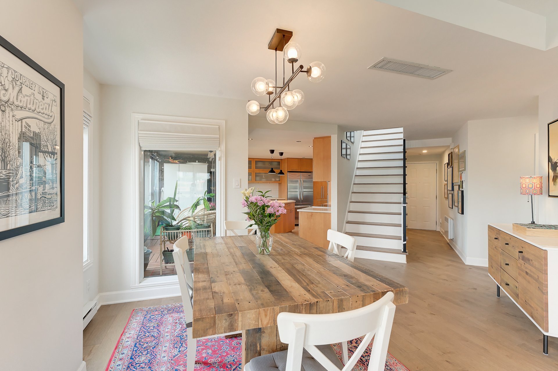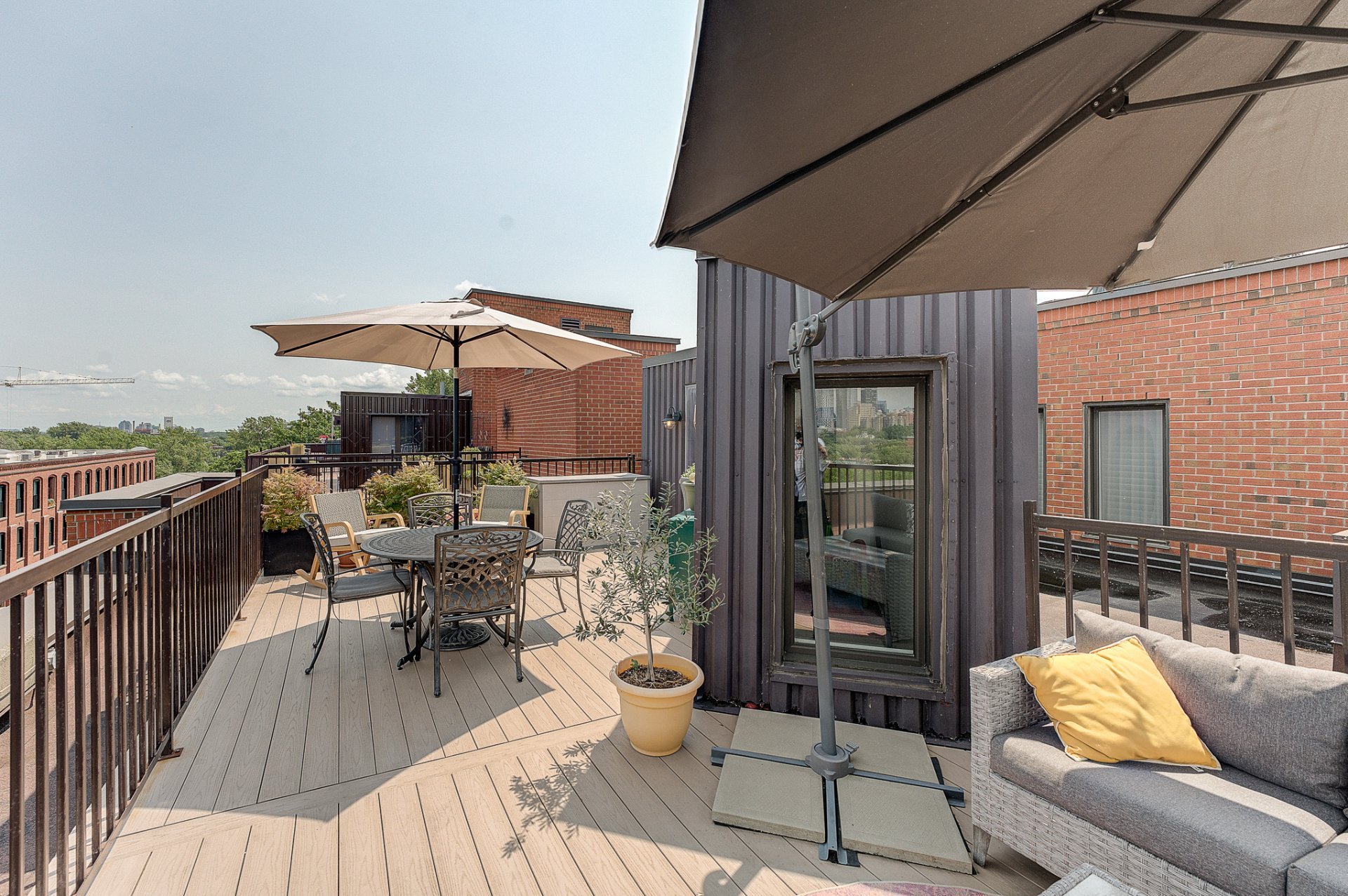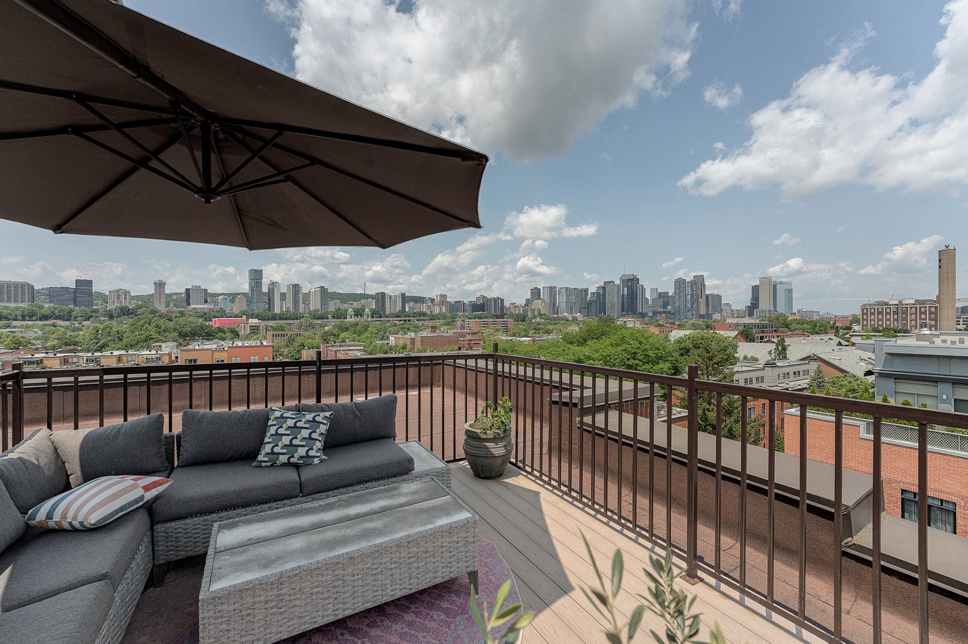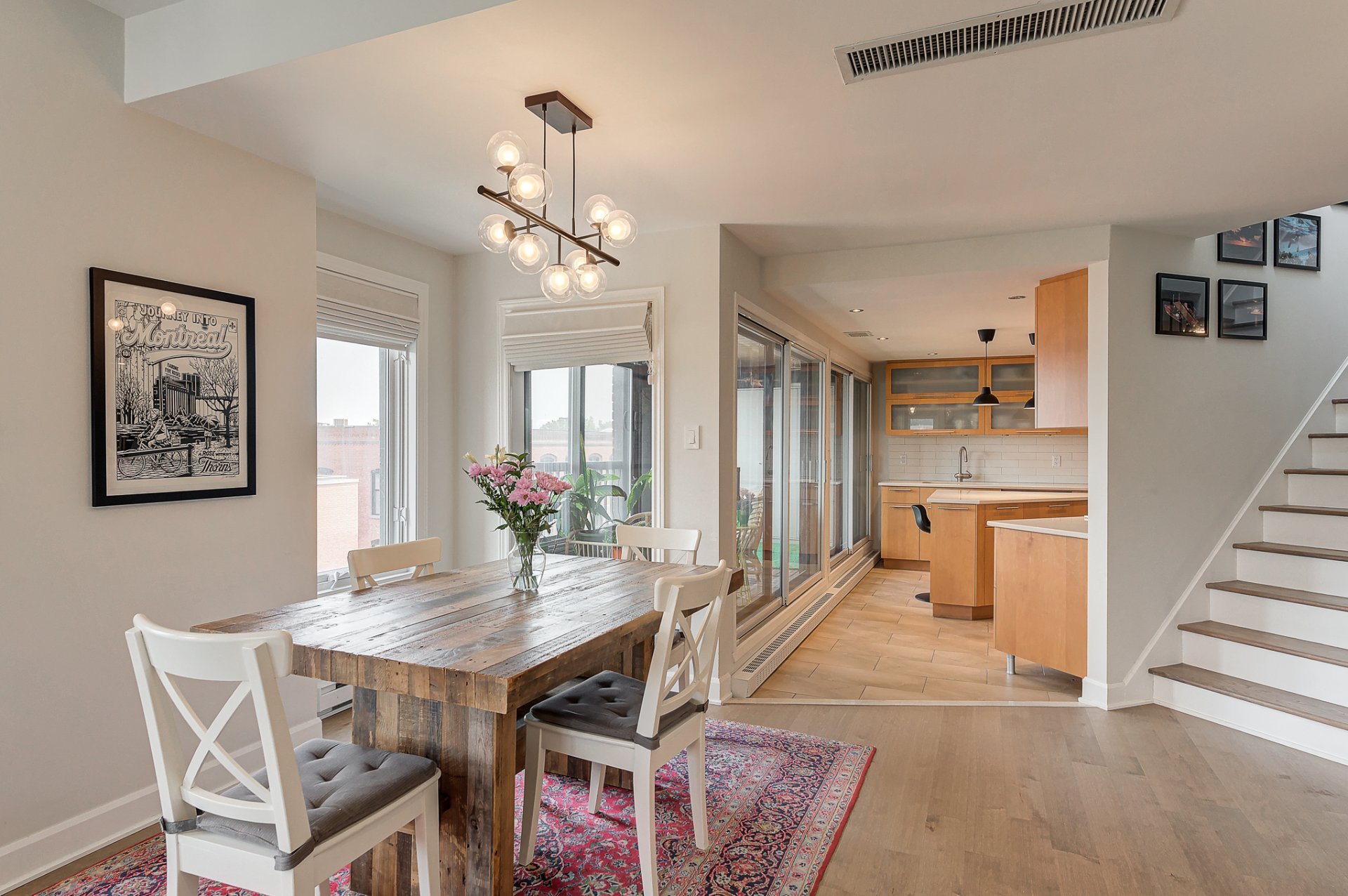 Penthouse en coin sur deux niveaux au 2635 Rufus-Rockhead : une résidence d'exception avec vaste terrasse privée baignée de soleil. Aire de vie lumineuse sur deux façades, finitions raffinées, deux chambres élégantes, deux salles de bain complètes et rénovations majeures au goût du jour. Situé aux abords du canal, à quelques pas du marché Atwater. Stationnement intérieur et rangement inclus.