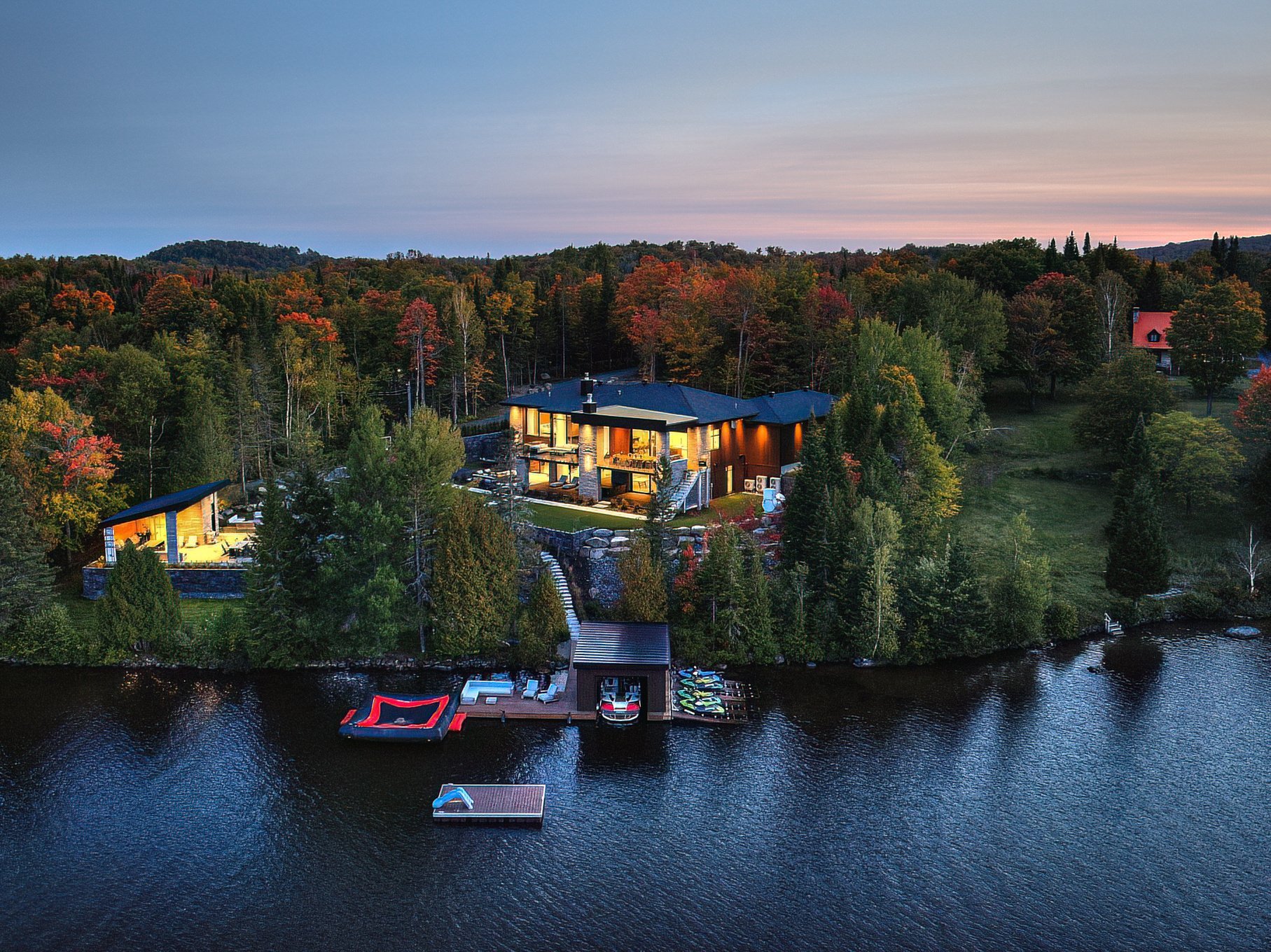 Domaine d'une prestance inégalée d'une superficie habitable de plus de 6500pc destiné à une clientèle distinguée à la recherche de l'élégance en nature. Bordé par le lac des îles qui vous permettra de pratiquer tous vos sports nautiques préférés. Tout a été conçu pour votre confort et pour recevoir: 5 CAC, suite parentale, cuisine avec îlot de 16pi, planchers en époxy de qualité, simulateur de golf intérieur Trackman avec un bar, terrain de basketball privé, cuisine extérieure, garage 3 portes (1800pc). Cette luxueuse construction neuve offre un intérieur et un extérieur incomparable, alliant matériaux nobles à un design contemporain.