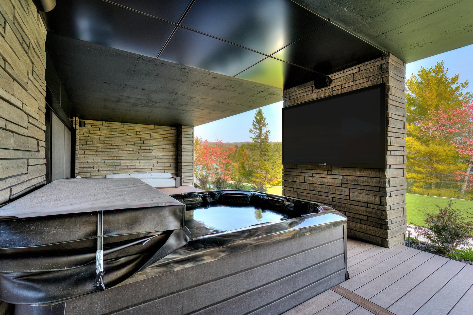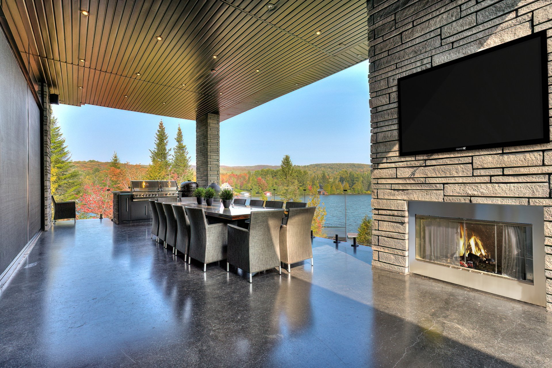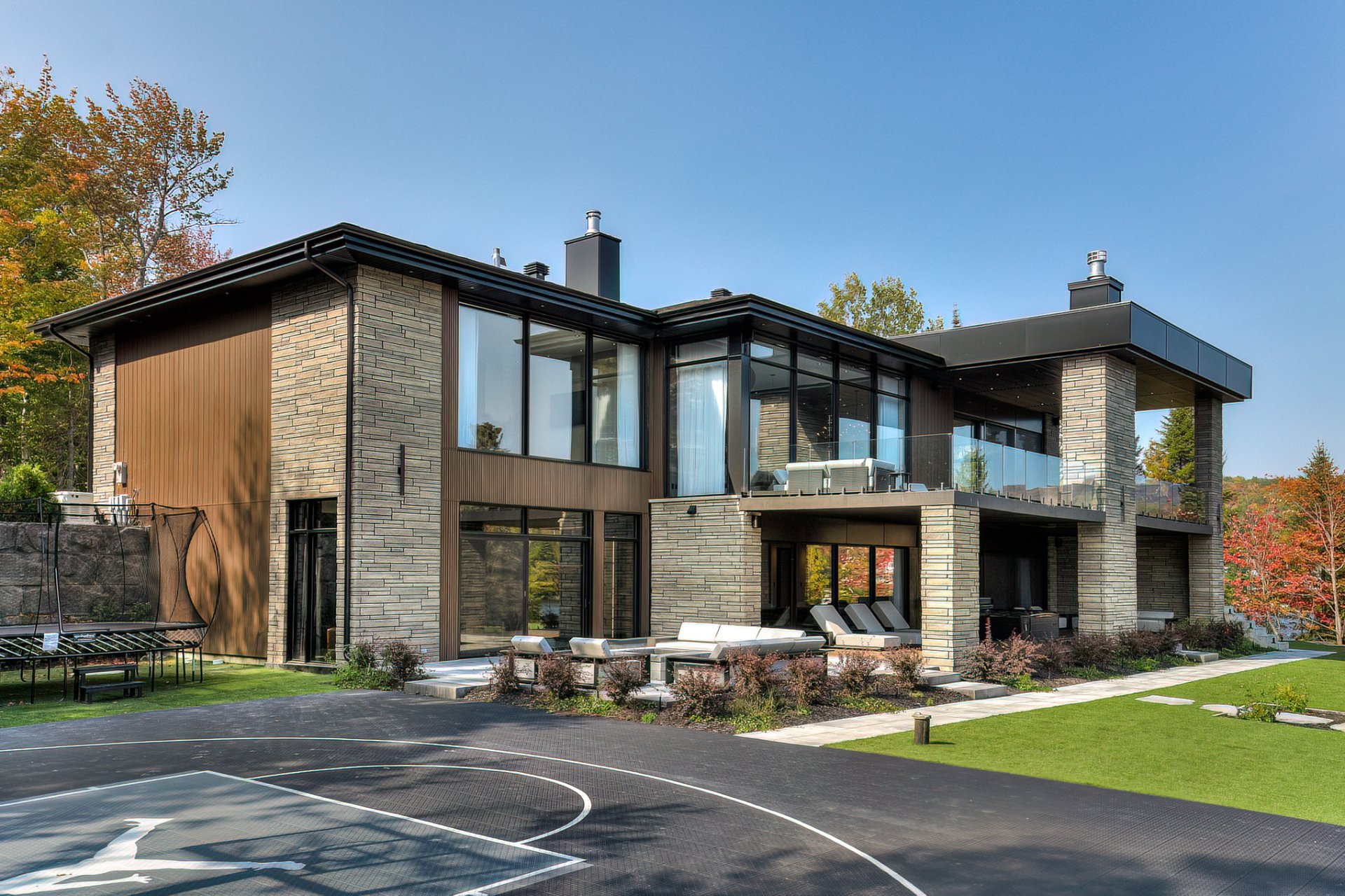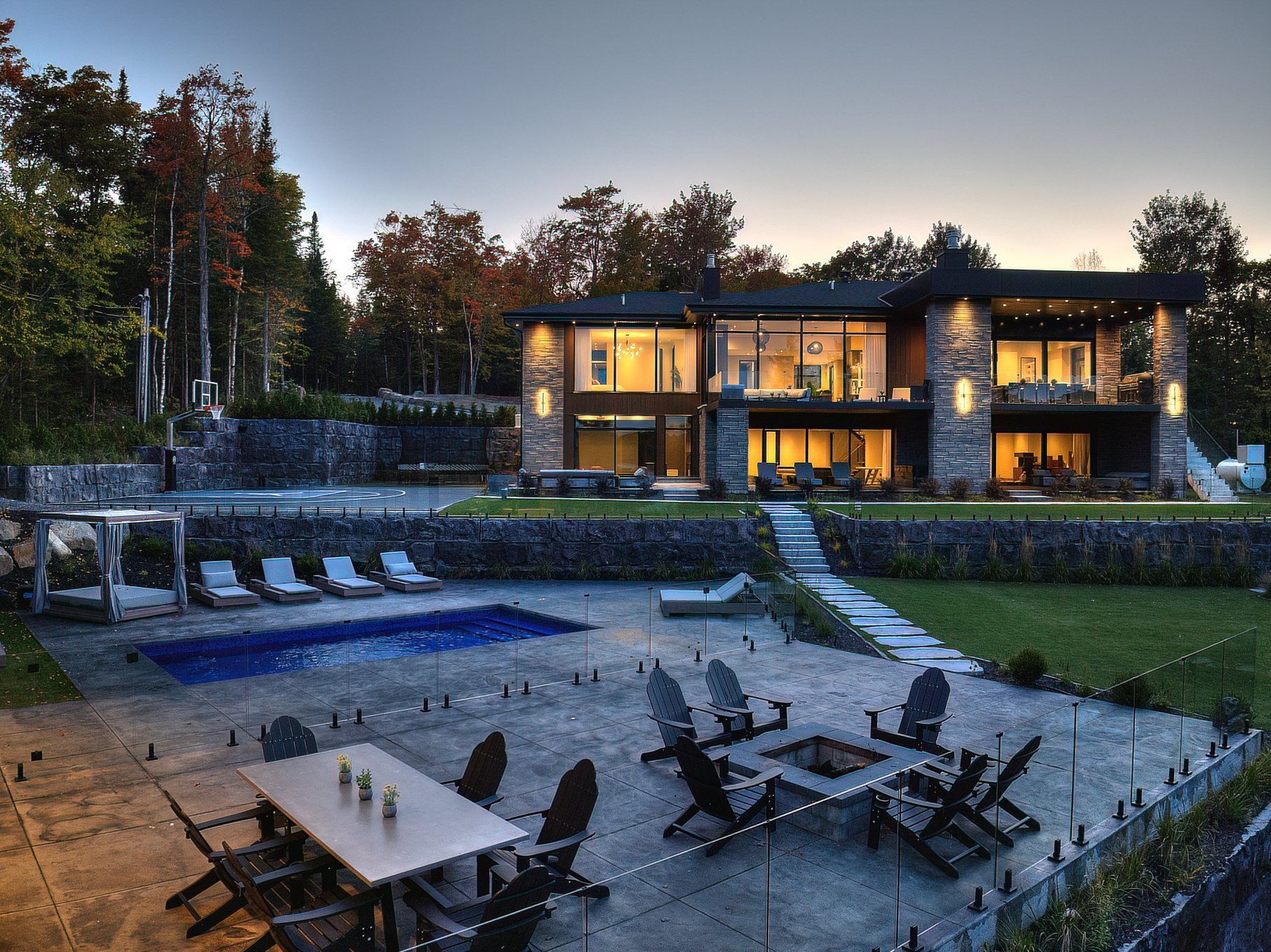 - L'endroit parfait pour les journées festives au bord de l'eau: 2 terrasses de 45pi, cuisine extérieure équipée de deux BBQ et deux fours à pizza, piscine creusée chauffée, terrain de basketball privé et spa. Cette propriété est un vrai centre de villégiature privé.
