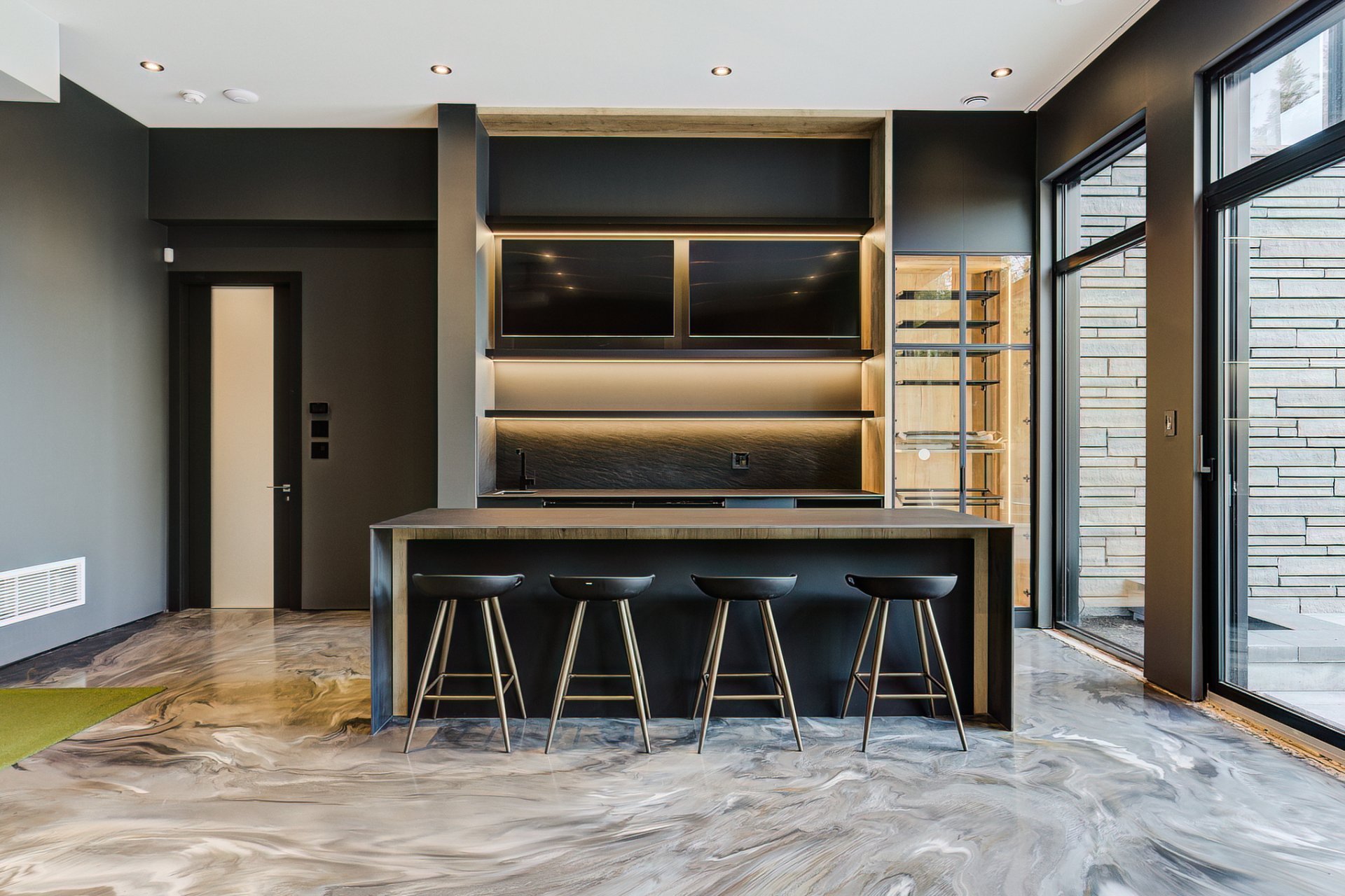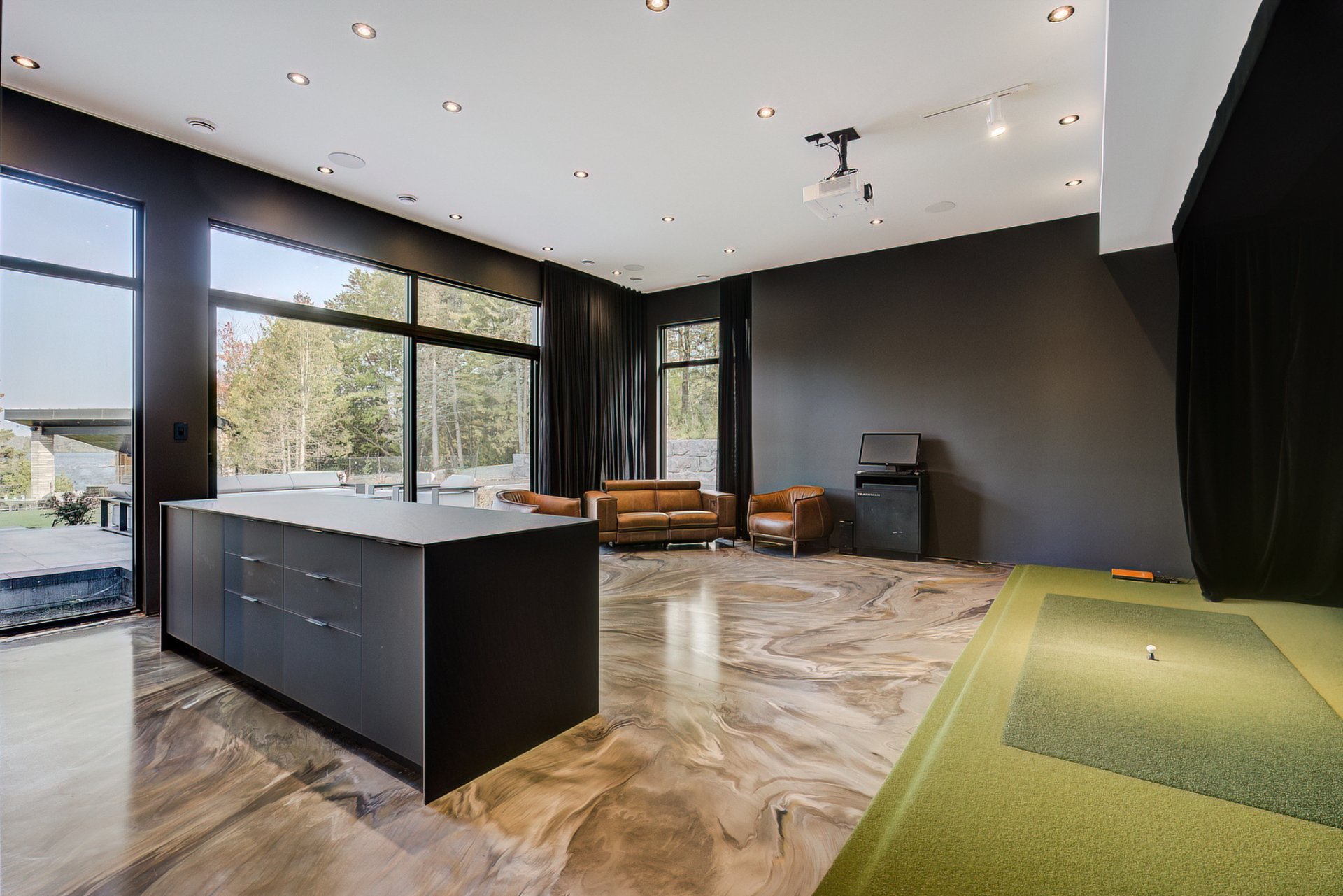 - Un simulateur de golf Trackman d'une valeur de 80 000$ à même un coin bar entièrement équipé pour des soirées inoubliables