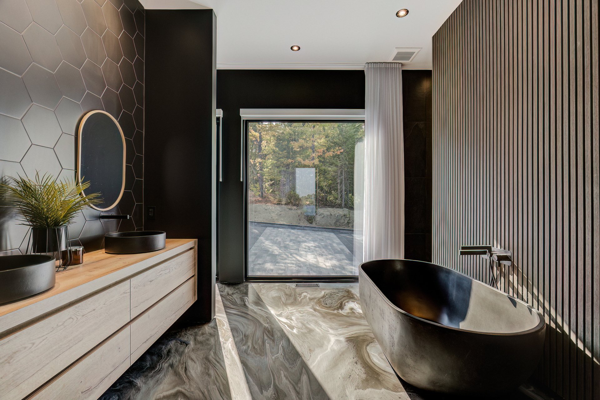 - Un rez-de-jardin qui offre un accès direct au spa, à la terrasse, la piscine et toutes les commodités de la cour