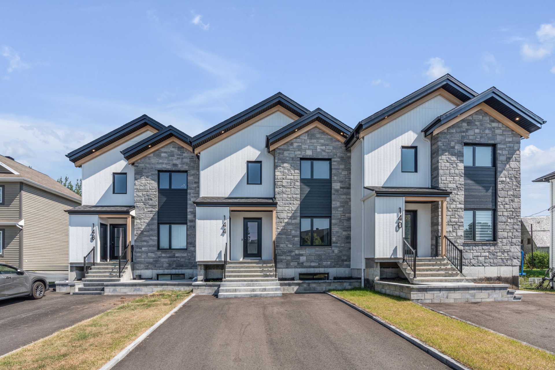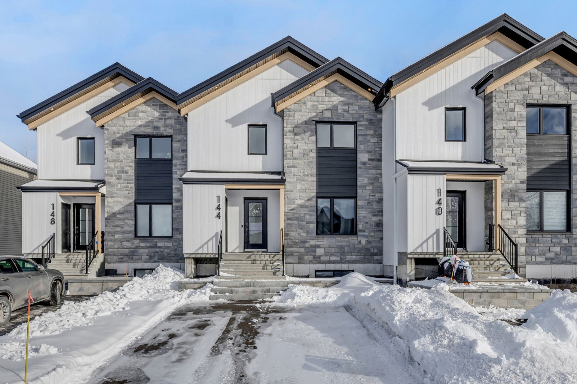 Vivez au pied du Mont-Sainte-Anne dans une propriété neuve au design unique, taxes incluses! Cette copropriété linéaire clé en main combine confort, luminosité et style. Pièces de vie avec plafonds cathédrale, 4 chambres, 2 salles de bain, 1 salle d'eau et une vaste salle familiale. Le tout crée un espace idéal pour la vie de famille ou vos séjours sportifs. Profitez de 2 grandes terrasses, dont celle du 2e offrant une vue spectaculaire sur la montagne, été comme hiver. Dans un quartier jeune et dynamique, cette maison allie emplacement de choix et qualité de vie exceptionnelle. Les taxes sont incluses : c'est une aubaine à ne pas manquer!