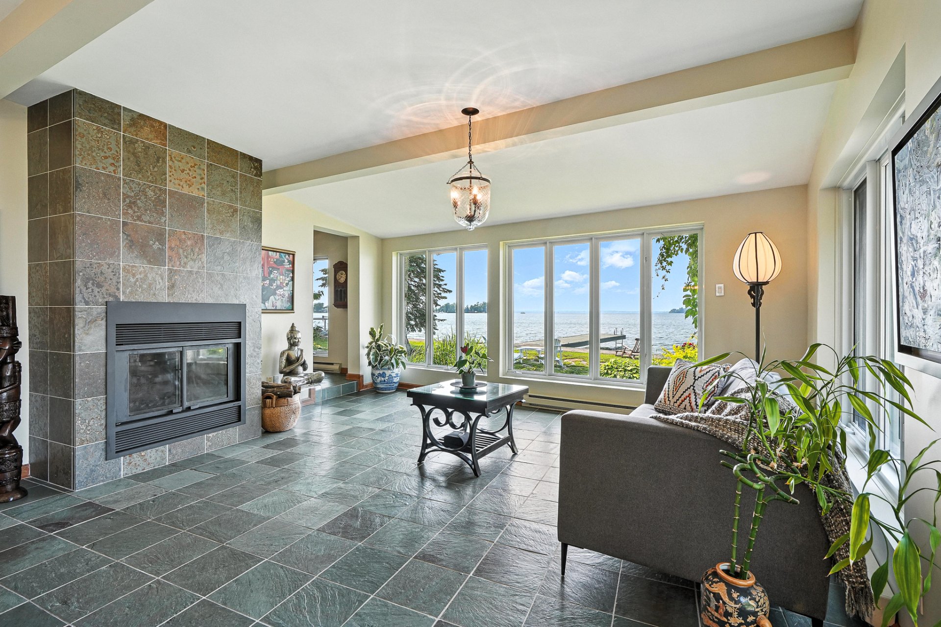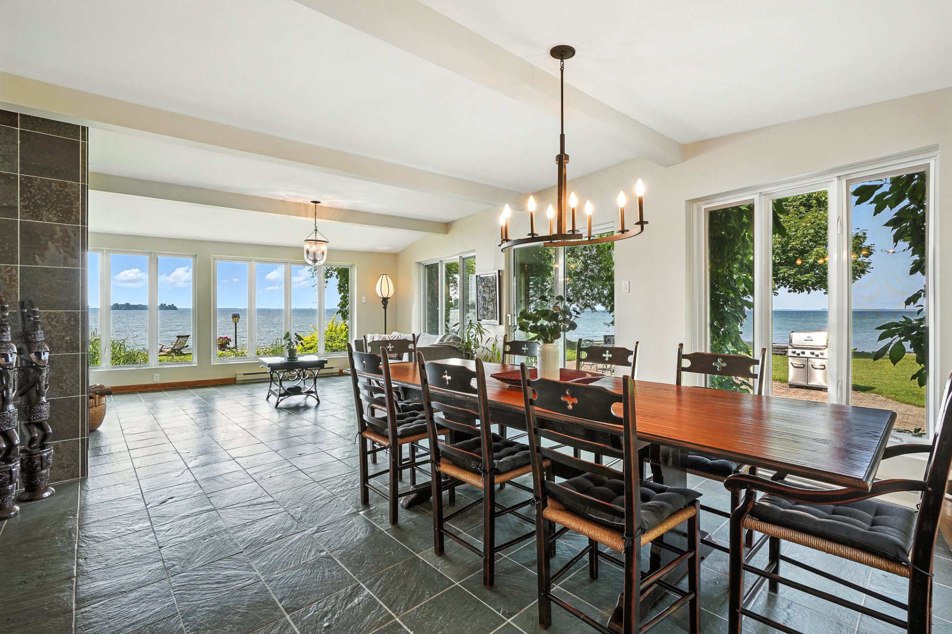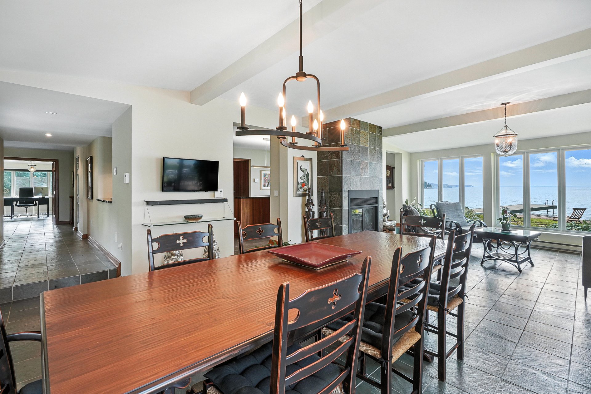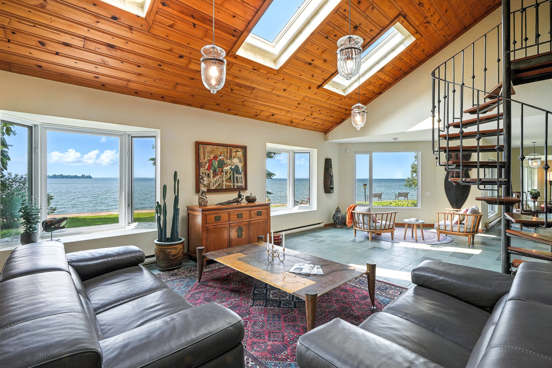 - La résidence principale, baignée de lumière naturelle, séduit par ses espaces ouverts, son foyer au bois et sa vue panoramique à couper le souffle sur le lac.