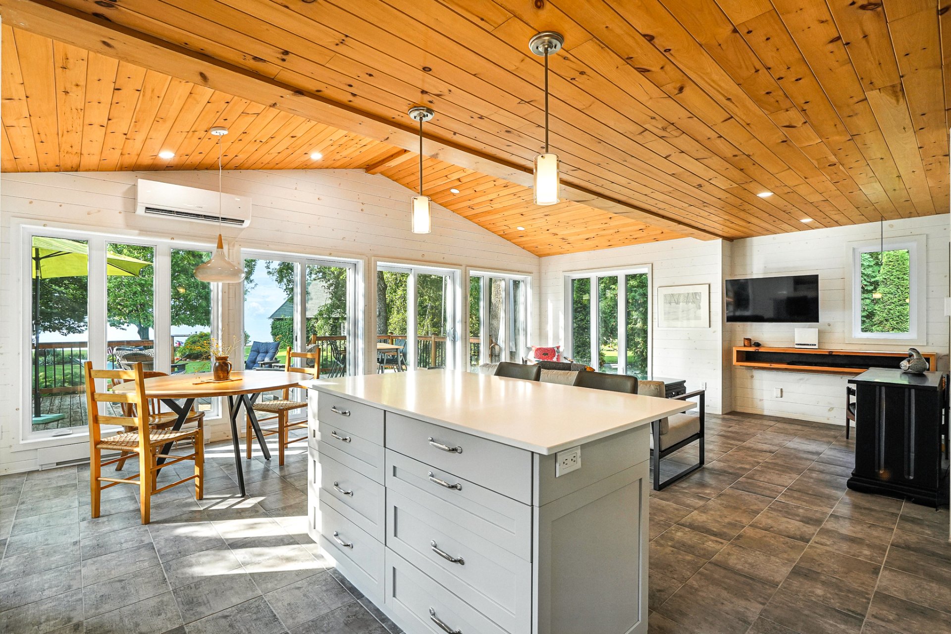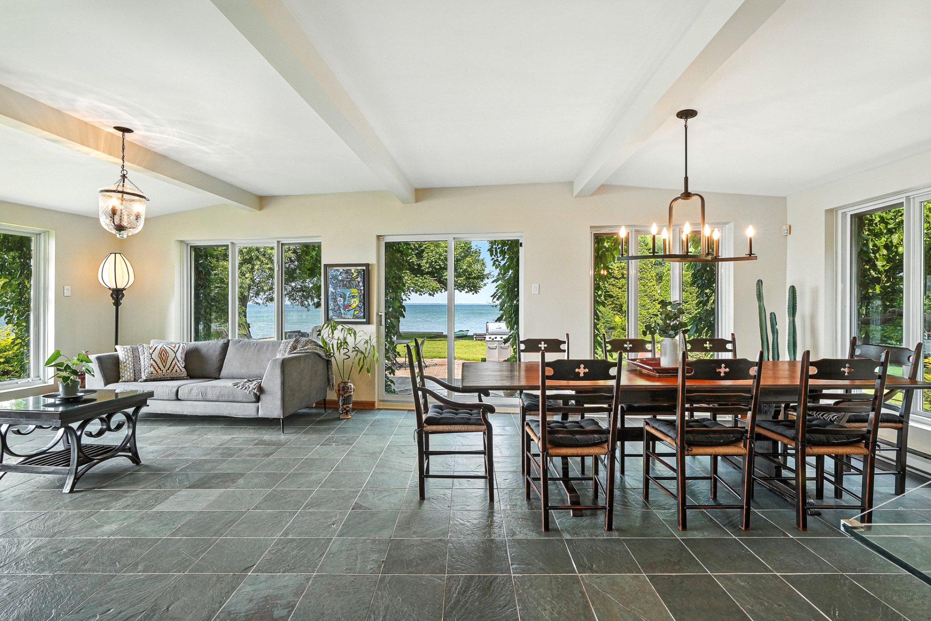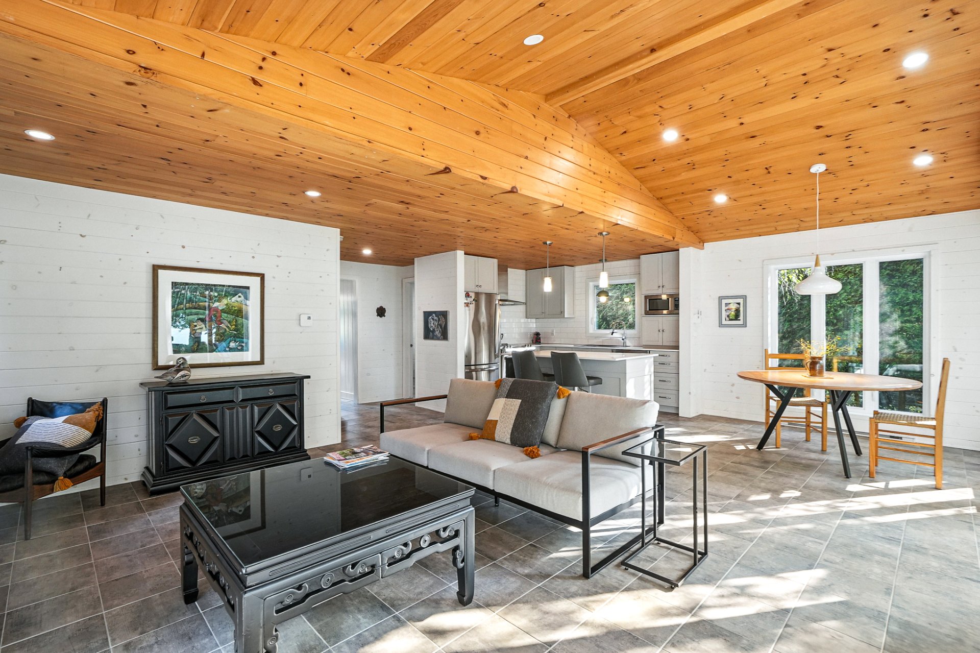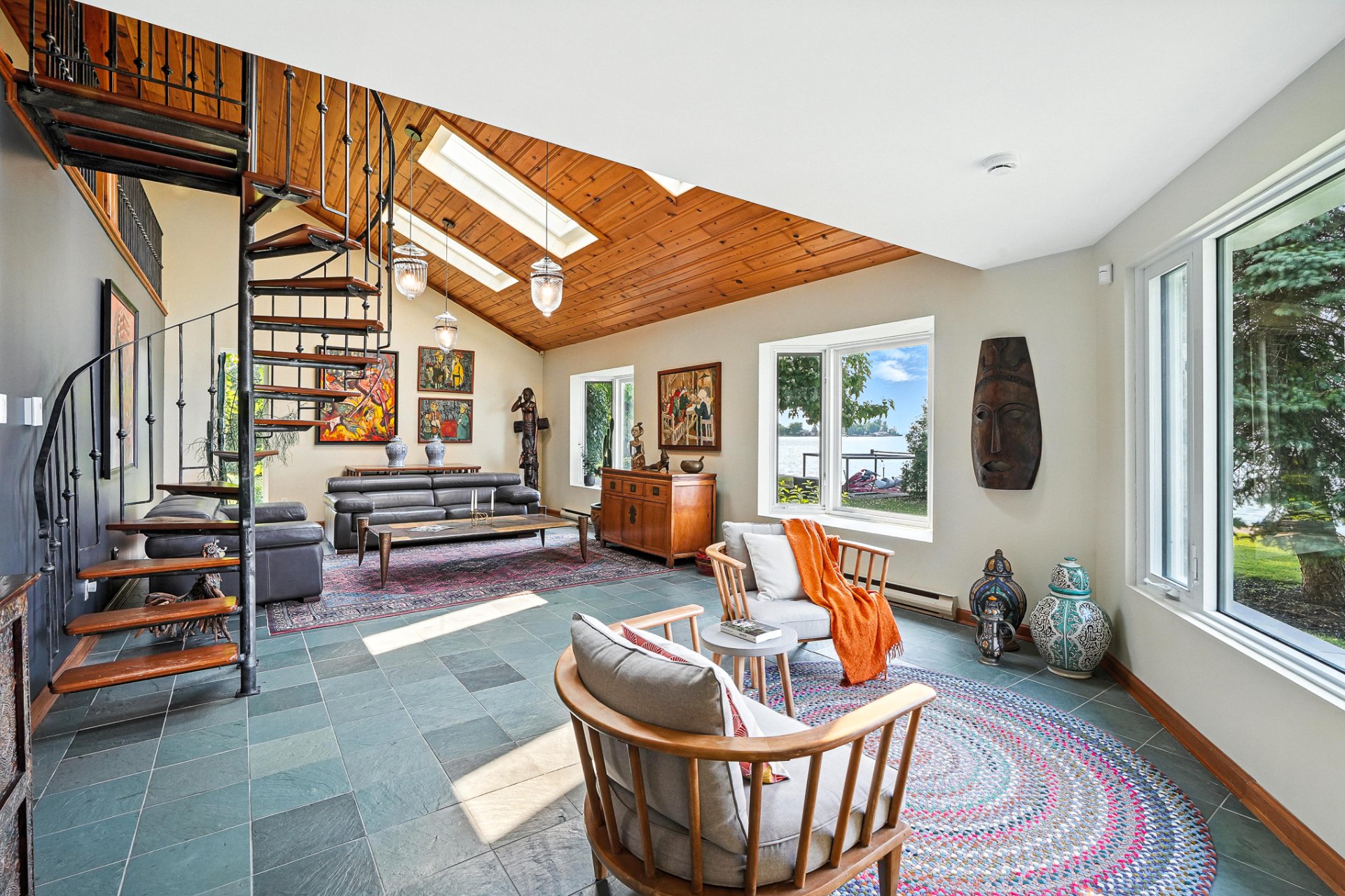 - La résidence principale, baignée de lumière naturelle, séduit par ses espaces ouverts, son foyer au bois et sa vue panoramique à couper le souffle sur le lac.